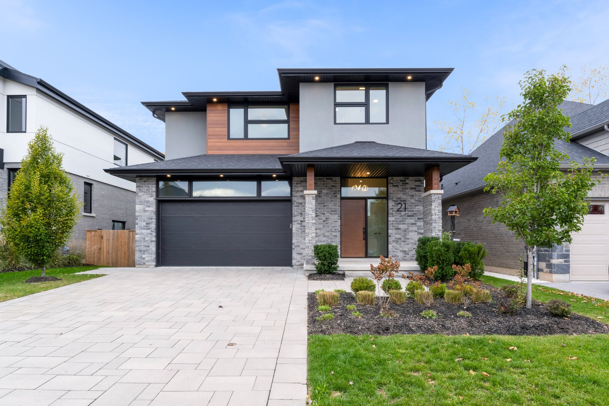 Welcome to 21 singer street! Built by the incredible team at rinaldi homes, this 2 storey home offers 4 bedrooms, 4 bathrooms, and a finished walk out basement - all set on a premium lot. The main floor features gleaming wood look tile flooring, a spacious great room with large wall to wall windows and a linear gas fireplace, a large dining area overlooking the home's private covered deck adorned with aluminum/glass railings and a stunning kitchen outfitted with modern two tone cabinets, upgraded quartz counters, frigidaire professional appliances and a modern tile backsplash. Also on the main floor are a powder room and separate laundry room complete with gorgeous built-in cabinets. Travel upstairs to find gleaming hardwood floors, the serene primary bedroom suite complete with a custom walk-in closet and a private spa-like 4 piece ensuite bathroom, a 5 piece main bathroom and 2 large additional bedrooms (one with another walk-in closet). The walkout basement provides luxury vinyl flooring, a bright and spacious rec room with access to the covered patio, the huge fourth bedroom (or home gym!) and a full 3 piece bathroom. Two large storage areas make it easy to keep the house neat and tidy. The fully fenced rear yard offers plenty of emerald green lawn and a spacious covered patio. Parking for 6 vehicles available between the luxurious paver driveway and attached garage. This home is simply stunning and must be seen in person to experience all it has to offer. Easy access to highway 406, shopping, restaurants and so much more. Don't delay! Join the merritt meadows community today!