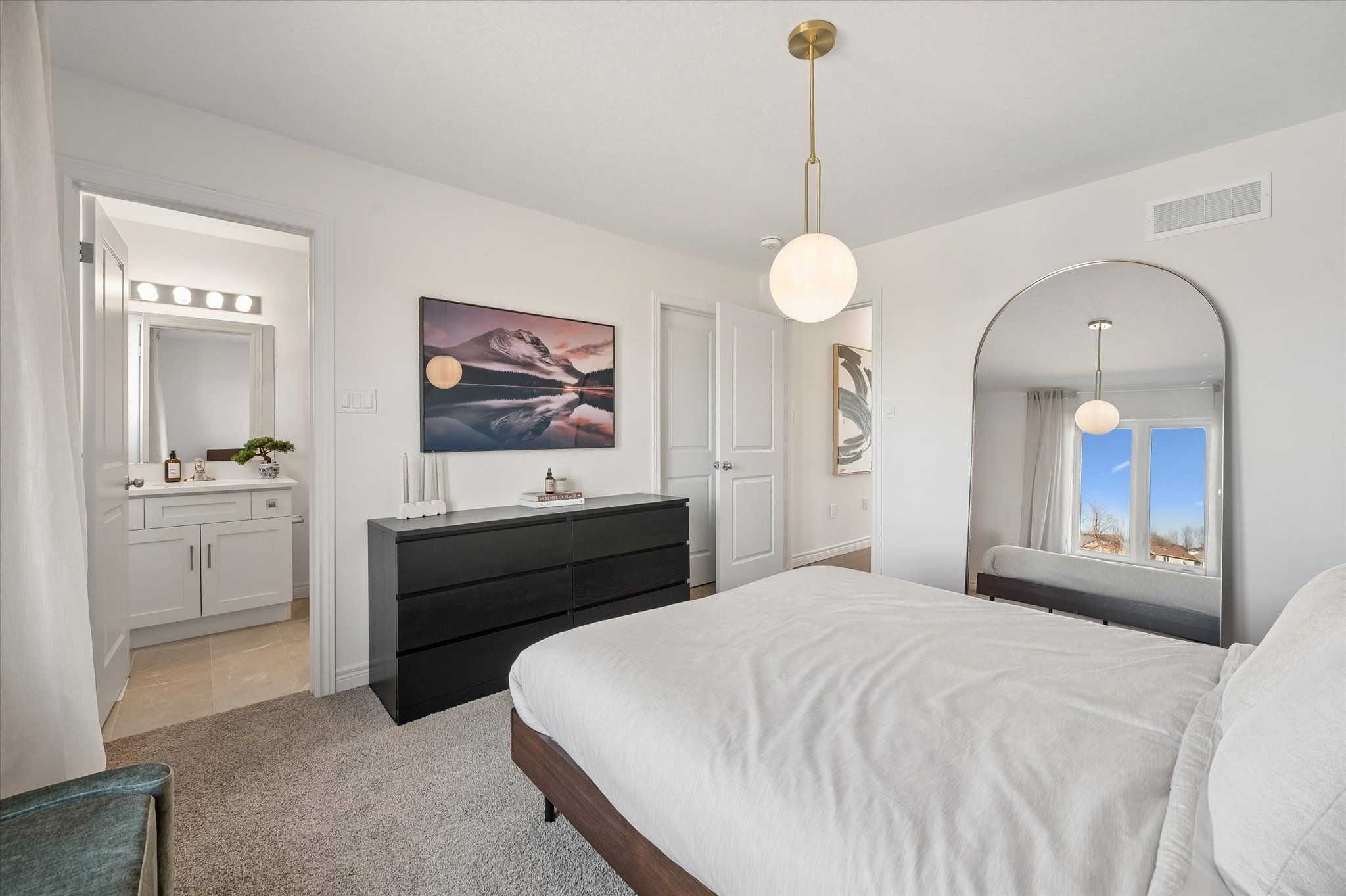 • Primary bedroom features a walk-in closet and spa-like ensuite bathroom.
