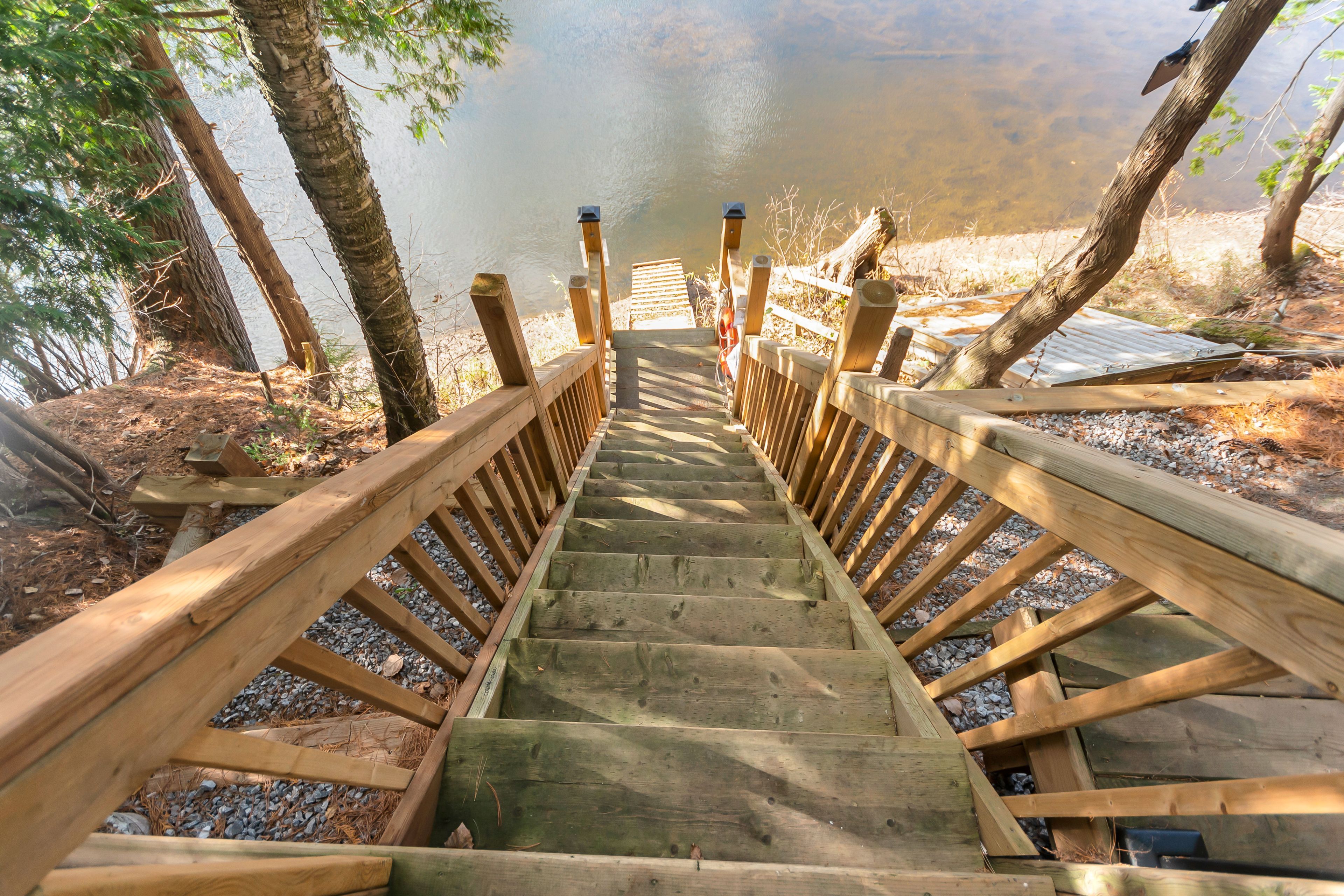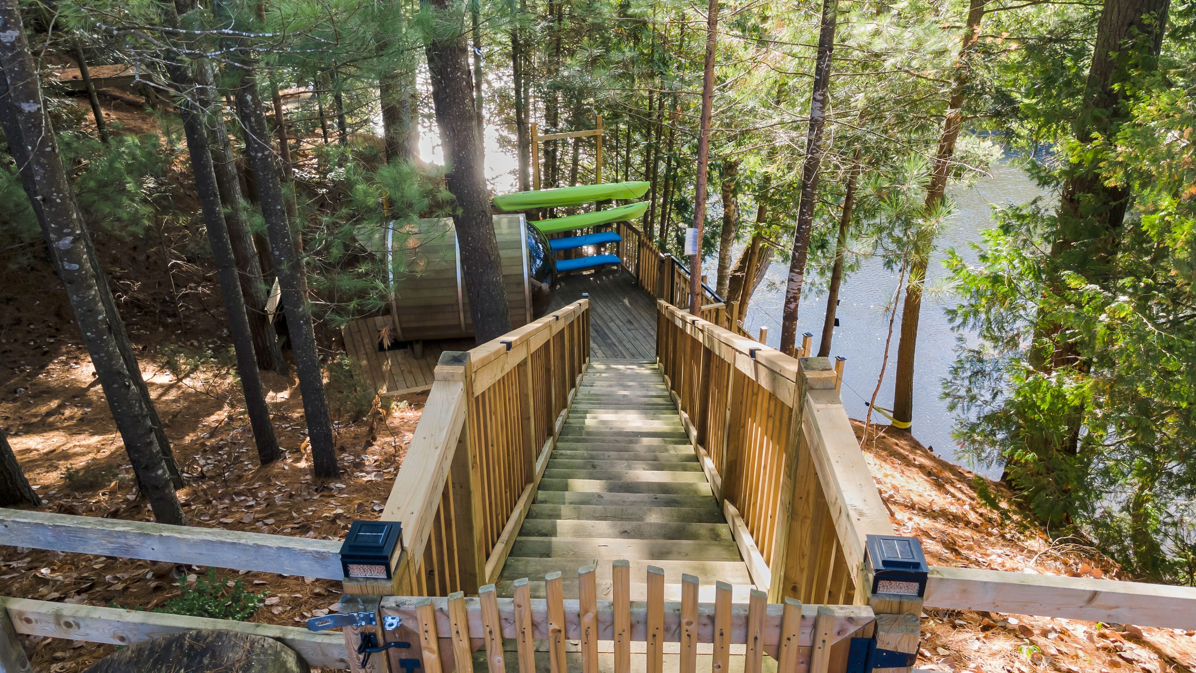 • Easy river access with a floating dock, kayak storage, and nearby adventure trails.