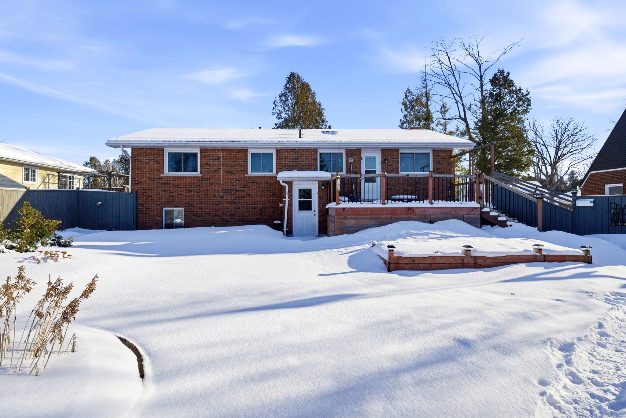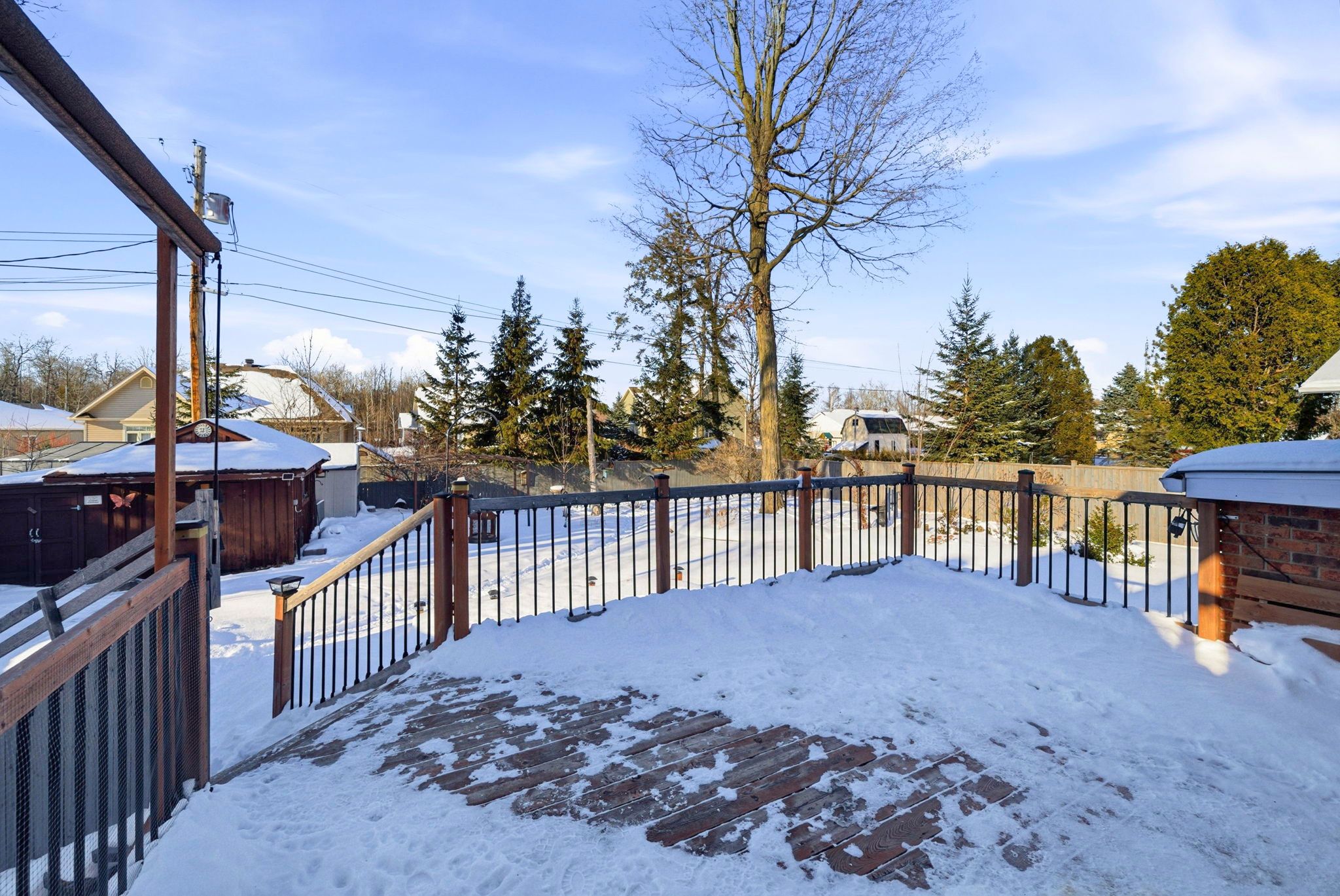 • Fully fenced yard with deck, garden shed, and ample parking.