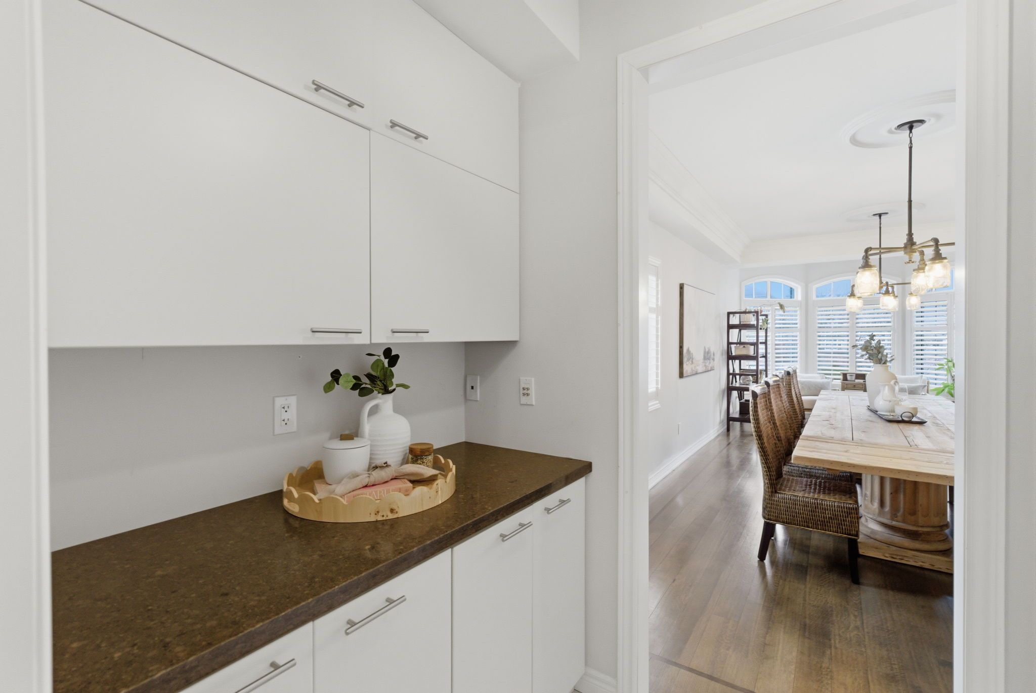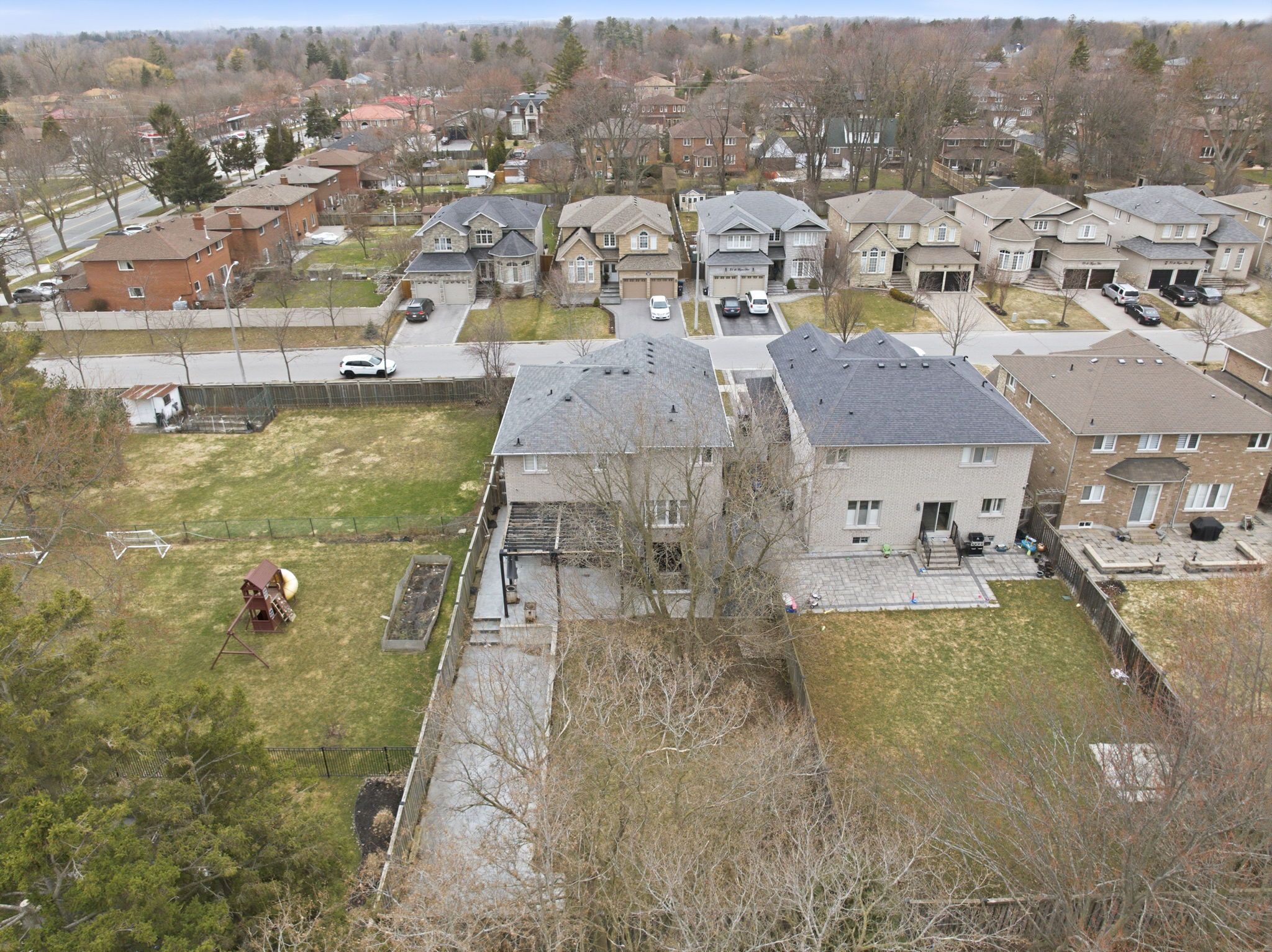 Set within the centennial scarborough lakeside pocket, positioned at the very front of an exclusive, executive street lined with upscale homes on oversized lots, this 3080 sq ft residence delivers a rare sense of space & privacy. Set on an extra-deep 150 ft lot, the home backs & sides onto existing residential yards, creating a quiet, tucked-away feel that's hard to find this close to the city's conveniences. A dramatic dbl-height foyer & sweeping curved hardwood staircase set the tone on entry. The main lvl is finished entirely in hardwood & flows through a striking formal living & dining space framed by a stone turret with wraparound windows, creating a stunning architectural focal point. Beyond, a thoughtfully designed pantry zone offers both built-in cabinetry & a walk-in food pantry, connecting to a modern kitchen with flat-panel cabinetry, quartz counters, s/s appls & a custom island w/ seating. The kitchen opens seamlessly to the family rm w/ gas fireplace & w/o to the patio & private yard. A partially enclosed office nook offers flexibility to create a fully separate workspace. Main flr laundry w/ garage access & custom built-ins. Upstairs, hardwood continues throughout all 4 bdrms. The primary retreat features 2 walk-in closets & a spacious ensuite w/ dbl sinks, sep tub & shower. A 2nd & 3rd bdrm share a well-appointed bath, while the 4th offers its own private ensuite & built-in vanity, ideal for guests or extended family. The partially finished bsmt includes a rough-in bath & sauna, electrical rough-ins & a professionally completed dbl-door w/o, offering excellent potential for a 2nd suite or expansive family space w/ high ceilings. Outside, the landscaped yard is anchored by a large patio, pergola & an impressive concrete pad, ideal for a future adu or versatile outdoor use. Steps to adams park, close to top-rated schools, shopping, dining, port union community centre &library, w/ quick access to rouge go, the waterfront, trails&hwy 401.