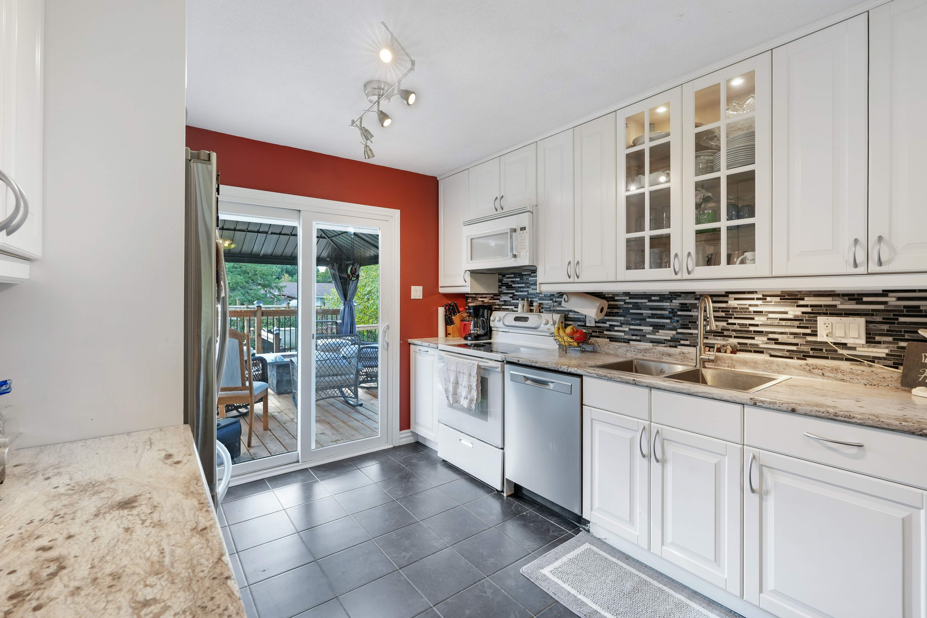 • Generous yard featuring a large deck, pool, gazebo, and fire pit.
