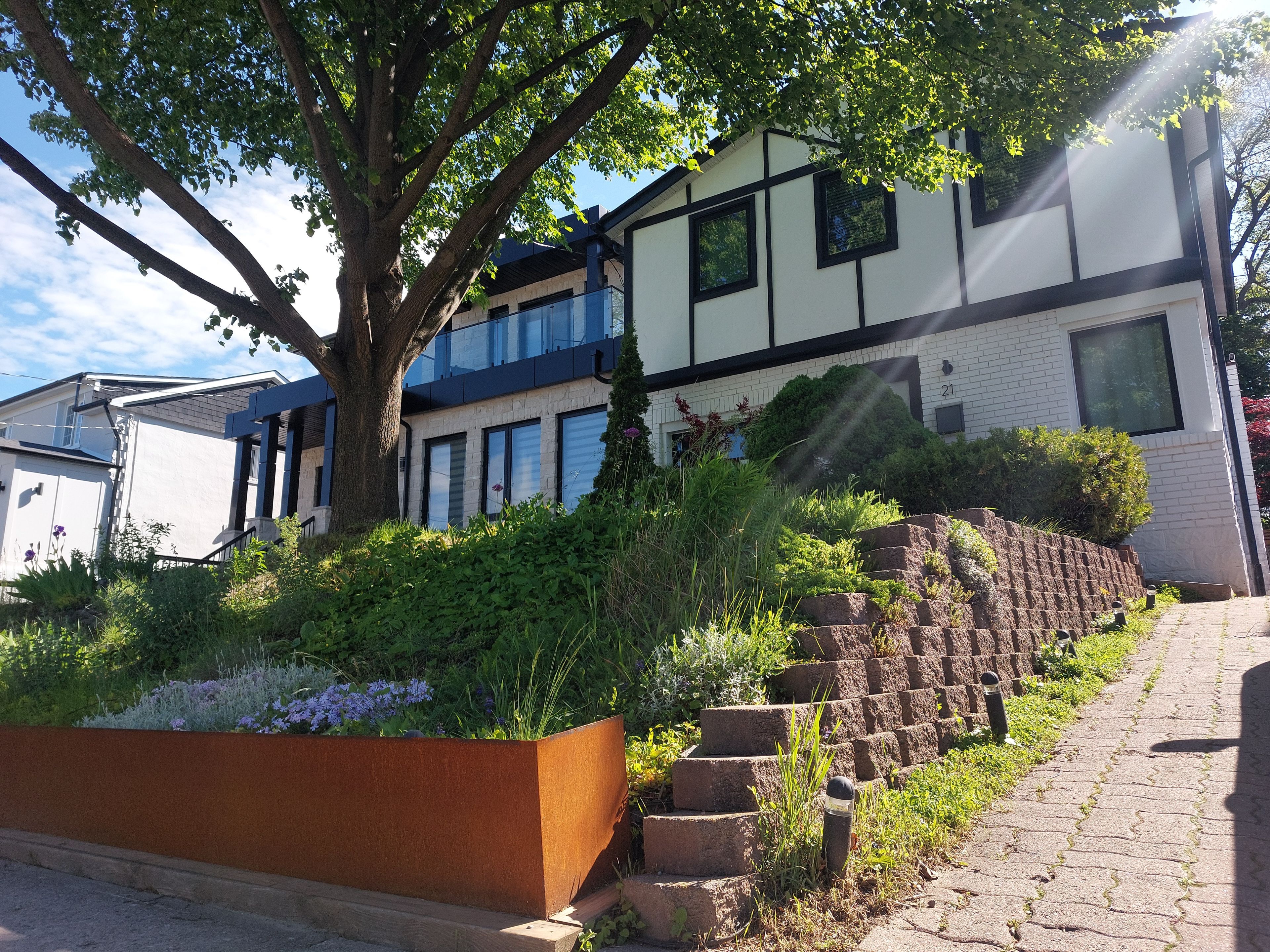 Located in a high demand neighbourhood just a short 10 min walk to the scarborough bluffs toronto's premiere beach. The city is re-developing the bluffs with new wide sidewalks with which will bring value to the area. Long 135 ft lot with potential to build a secondary house. 21 thatcher is a designer's delight with curb appeal that beach goers stop by to admire the house. Built by the designers who have passionately searched for the finest materials such as italian kitchen and bathroom tiles and quality flooring to create a unique one of a kind home with artistic flair at ever angle. The flooring was carefully planned with three floors meeting at 45 degrees and perfectly levelled. The kitchen counter top has a knife edge cut. Under cabinet lighting sits flushed with the surface. Sleek subtleties which may not be noticed by the untrained observer but that's what makes this house unique, all the little perfections. New windows and front and back doors main floor (2023) excl. The kitchen windows/door (2013) and upstairs windows (2010), freshly painted bricks with the highest quality paint sherwin williams rain refresh to keep away dirt. Heated kitchen floors. High end fisher & paykel counter depth fridge $4000 top of the line panasonic induction cooktop $3000. Glass railing up to the open concept bedroom or office/den/media room. Two big closets in the master bedroom, one a walk-in closet. Upstairs laundry. In addition to the beautiful indoor space, the outdoor space equally shines with 135 feet lot. Two gorgeous large decks provide lots of room for backyard parties and gatherings. Beautiful japanese trees peering over the decks to provide canopy. Pot lights at night. It has a crawl space with storage room. Hot water tank is owned. 21 fairmount and rh king schools in the area. Thatcher is a cozy home with a vibe that fits the right family and shines with it's own personality and features. Mpac square footage 1317.