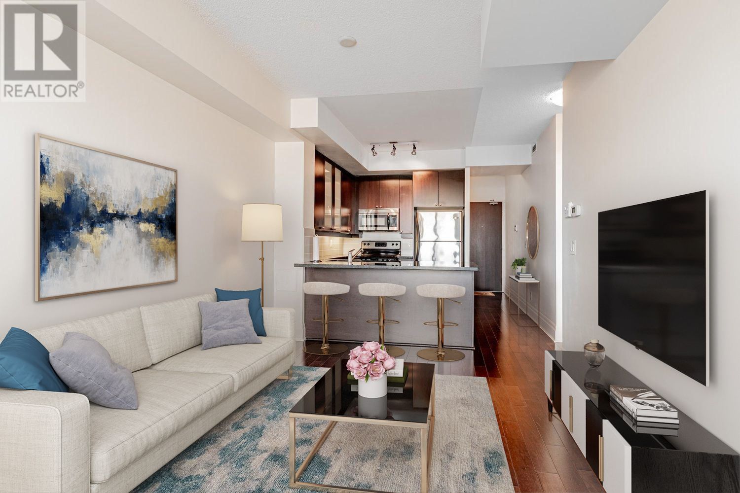 • Open-concept layout with 9ft ceilings, great for entertaining.
