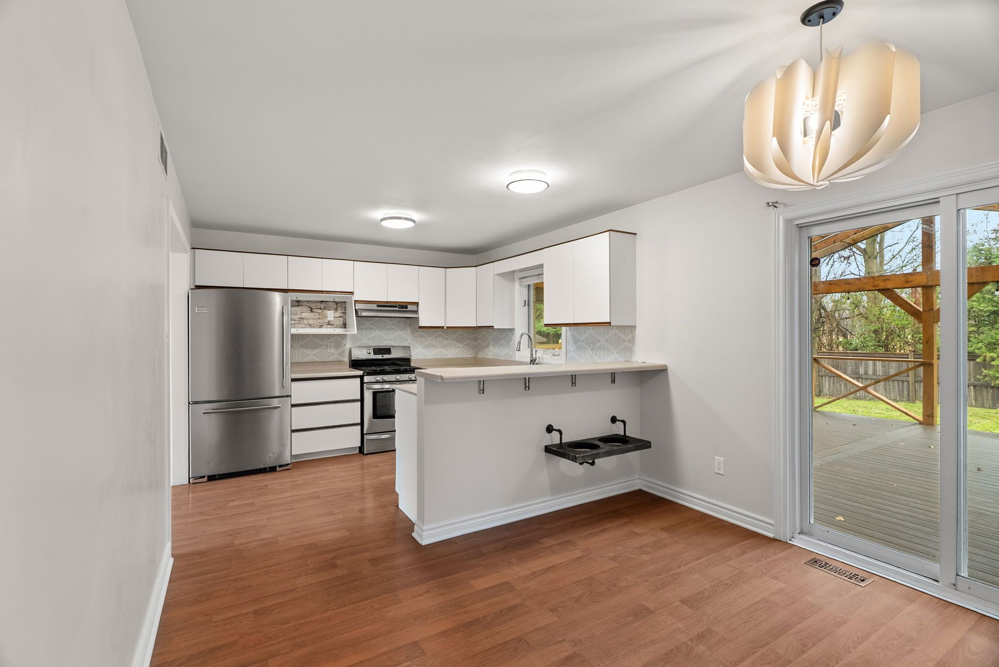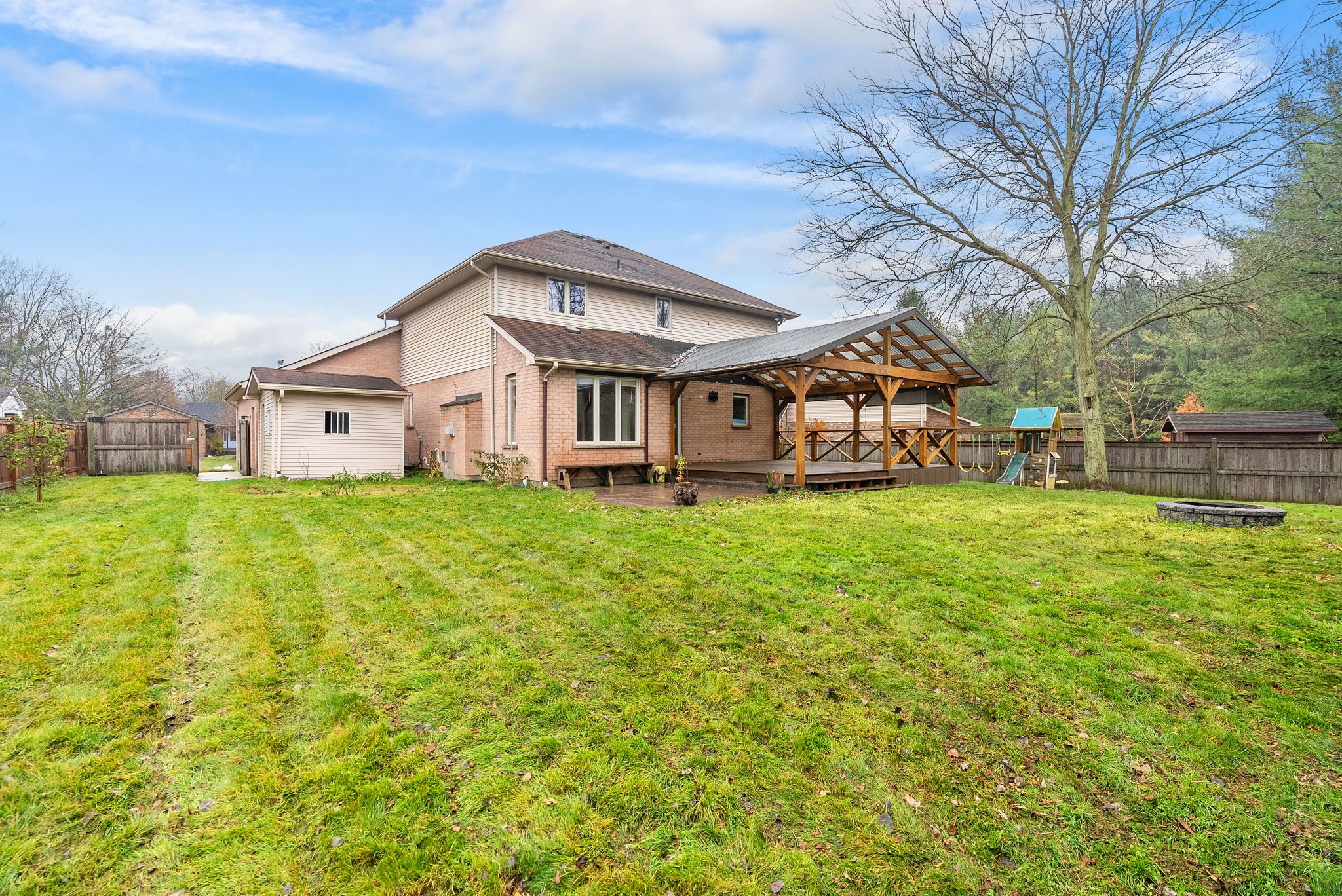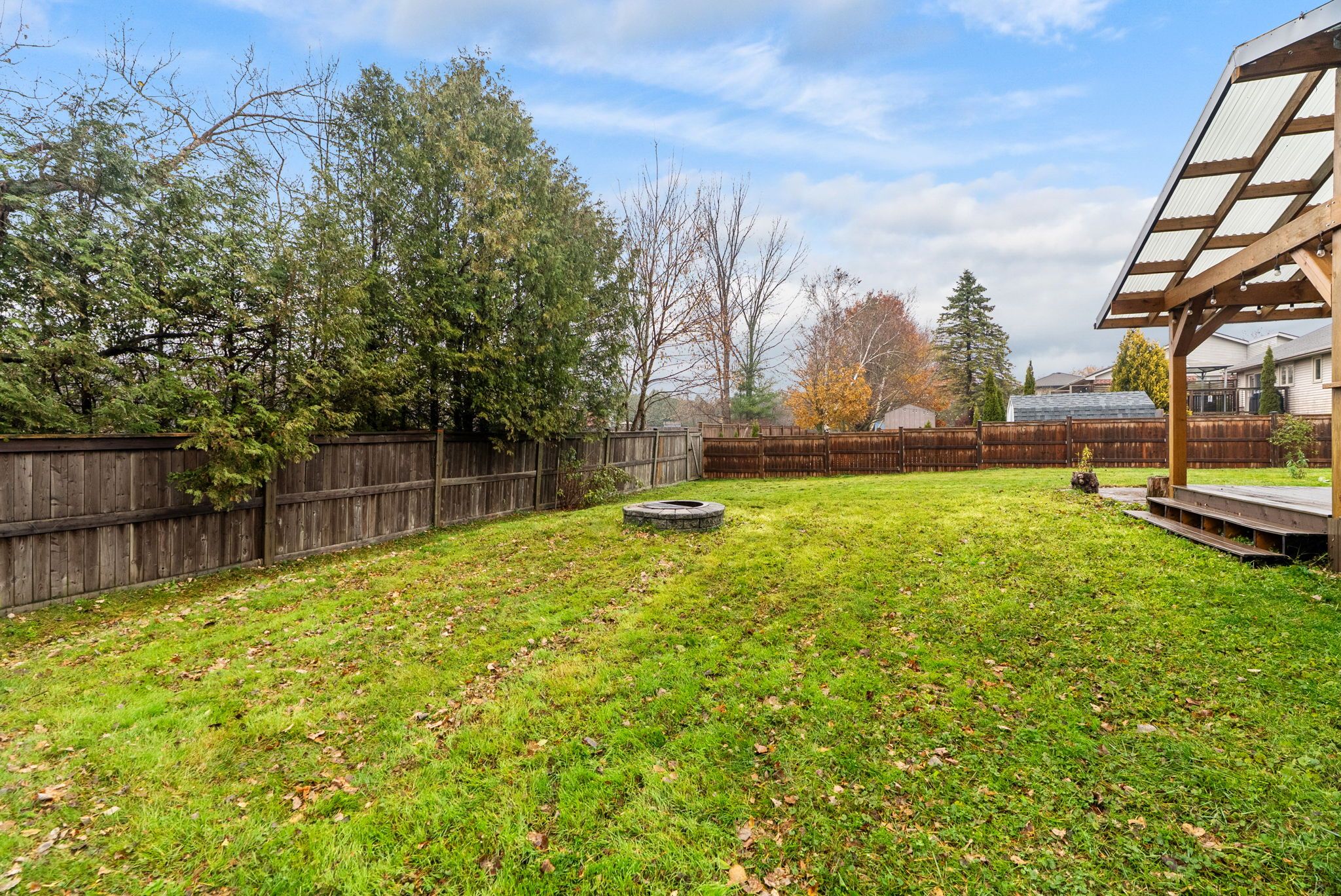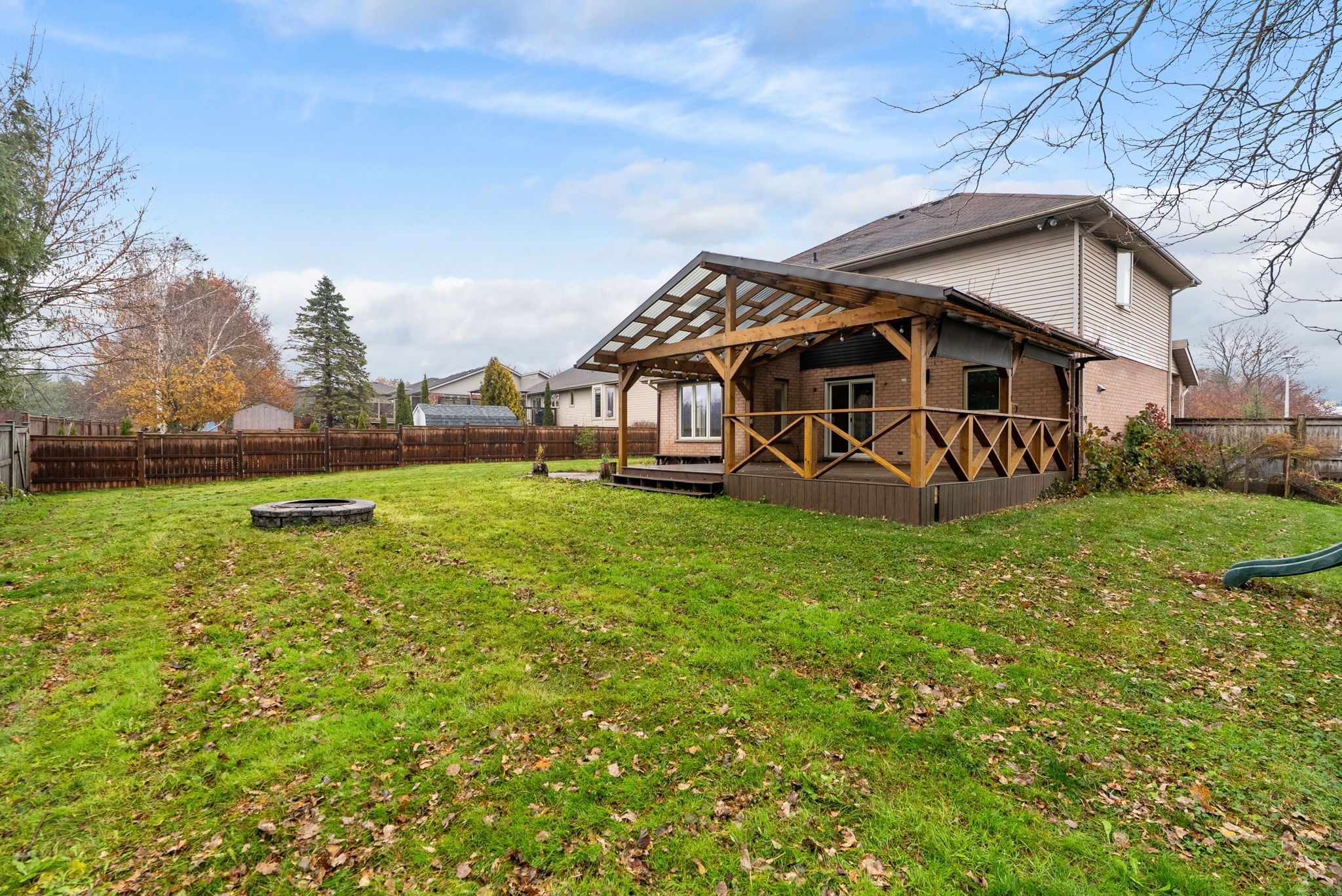 • Massive covered deck overlooking a fully-fenced backyard for hosting.