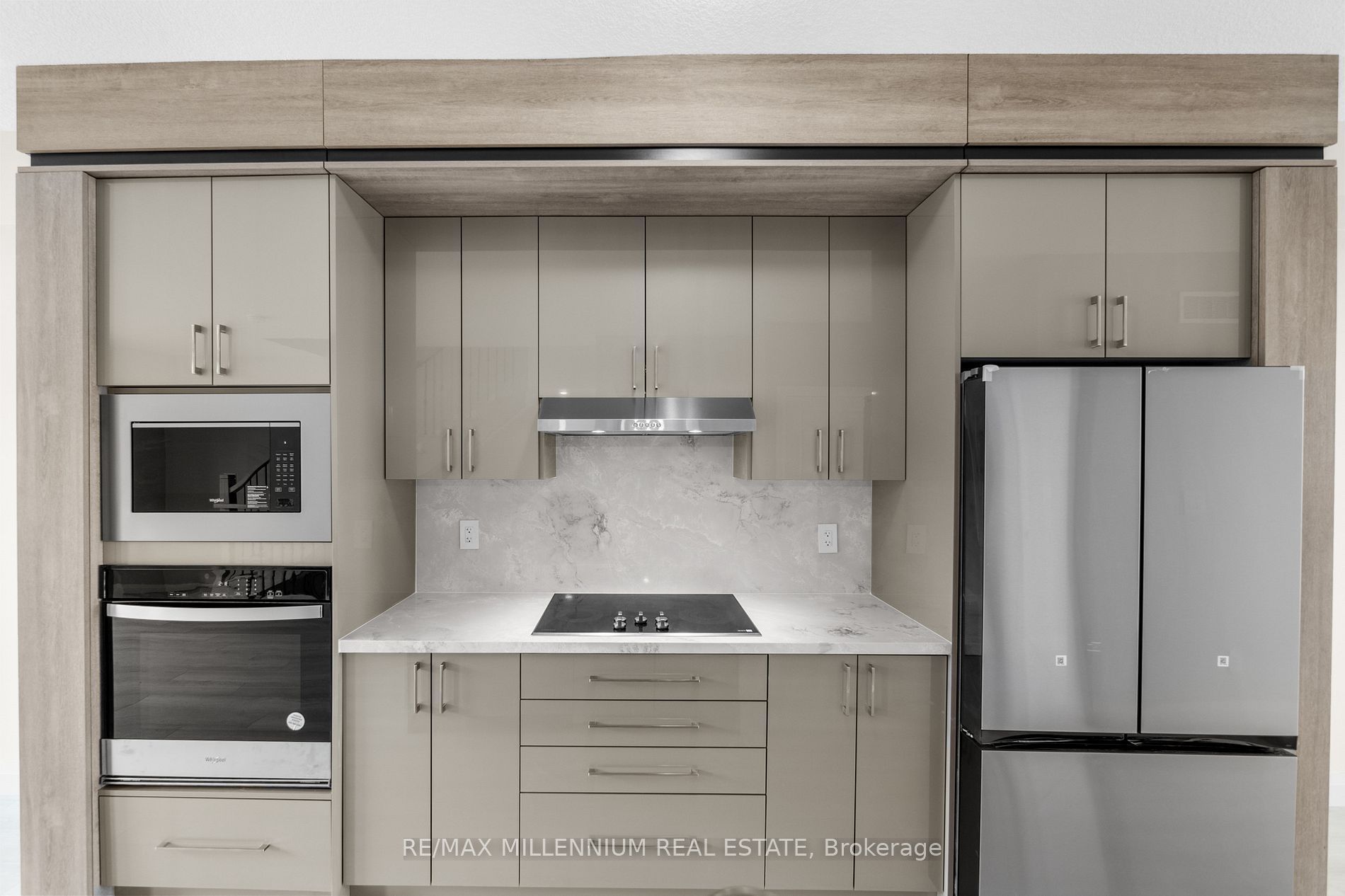 • Large kitchen on the second floor with built-in appliances.