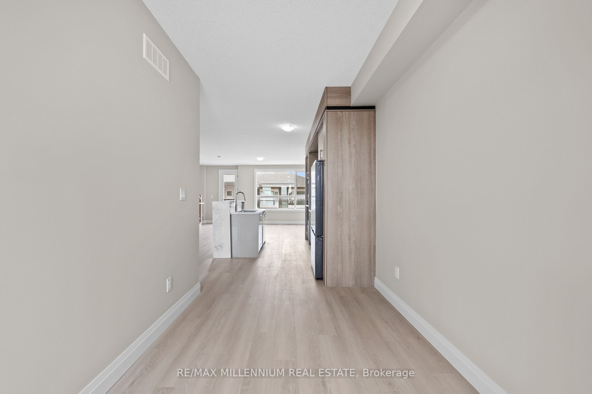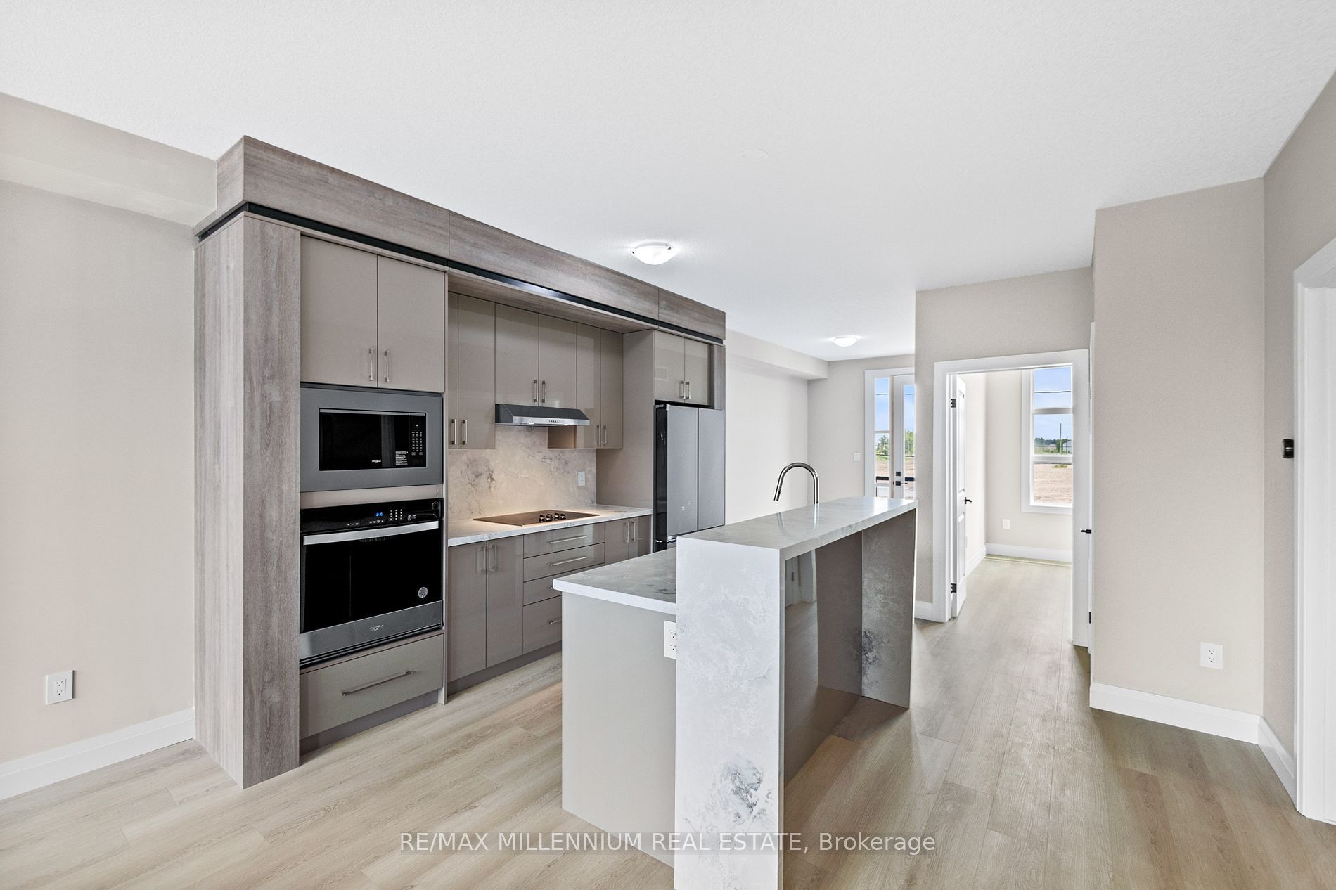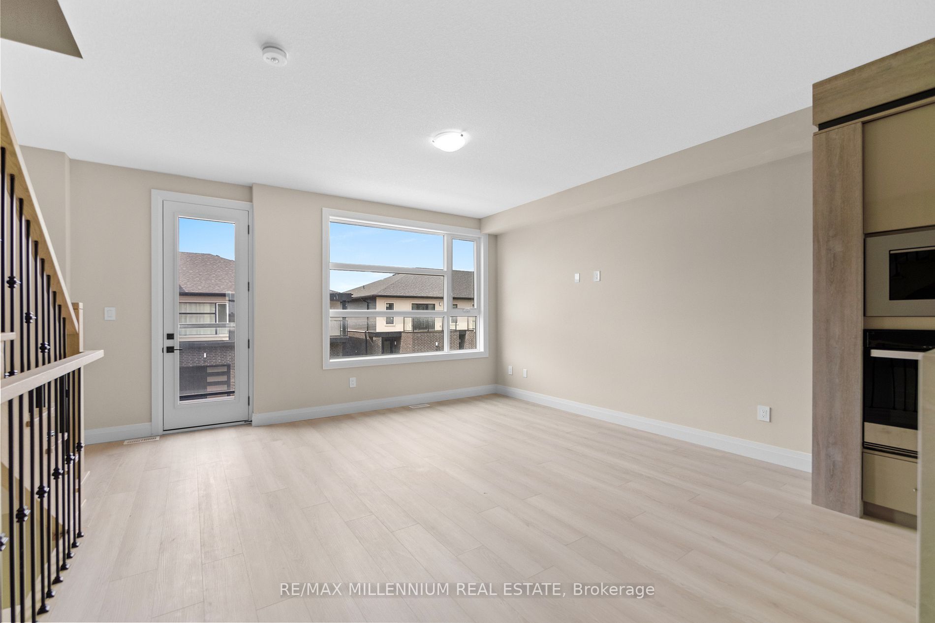 This newly built offers a bright open concept, move in and enjoy, main floor ideal for living and entertainment, double door entry, 3 well appointed bedrooms, two full washroom and one half washroom, office at main floor, living area opens to backyard, kitchen at 2nd floor, large separate living and dining area, built in appliances, vinal floor throughout, maintenance fee approximately is $ 170. 00.