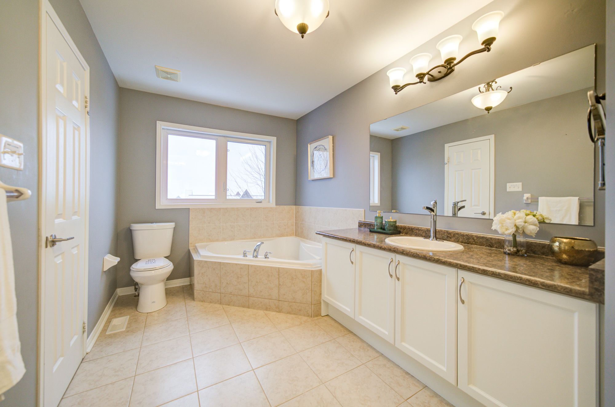 • Large primary bedroom with walk-in closet and ensuite bathroom.