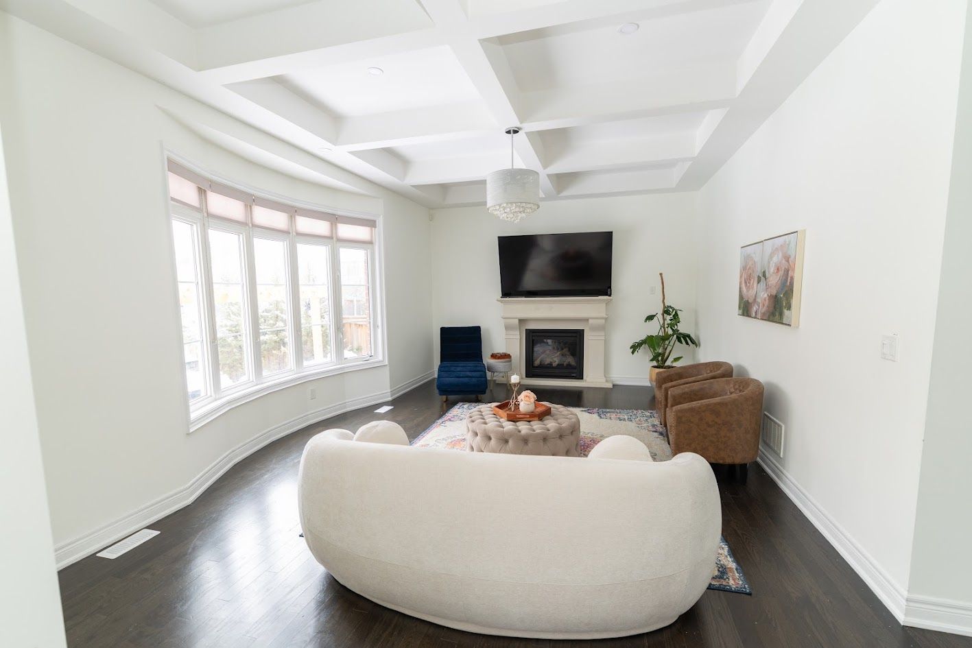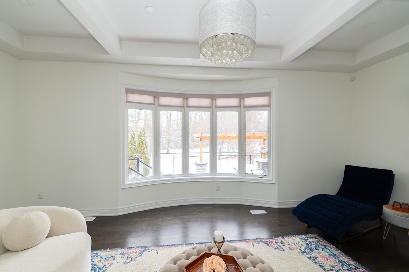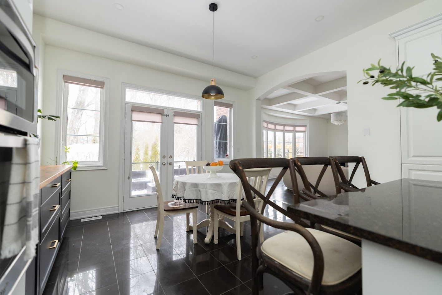 Wake up to the peaceful chirping of birds in this luxury ravine-backing home offering ultimate privacy. Built by mosaik homes, the st. Germain elevation c offers 4,160 sq ft above grade with 10-ft waffle and coffered ceilings on the main floor and 9-ft ceilings on the second and basement levels. The open-concept layout features spacious living areas and four large bedrooms, each with its own walk-in closet. The primary retreat includes a bay window overlooking the ravine, space for a sitting area, a spa-like ensuite with soaker tub, double sinks, glass shower, vanity, and abundant natural light, plus a custom walk-in dressing room. Upgrades include a separate basement entrance, main floor laundry/mudroom, extended kitchen cabinetry, granite countertops throughout, hardwood flooring, custom archways, built-in office and dining cabinetry, stone fireplace mantle, pot lights (interior/exterior), custom drapes and shades, and in-ground sprinklers. The finished basement is designed for entertaining with built-in seating/storage, home theatre with projector and speakers, reading nook, full kitchen, bar, bathroom, and a glass-enclosed gym (easily convertible to an in-law suite). Exterior highlights include an extended interlock driveway and patio fitting 3 cars side-by-side plus a 2-car garage. Interlock continues to the separate entrance and backyard pergola seating area overlooking a rose garden and ravine. A wood deck with glass railing provides unobstructed wildlife views. Additional features include double arched gates, landscaped gardens, fire pit area, and ample green space with room for a future pool. Close to walmart supercentre plaza, grocery stores, cortellucci vaughan hospital, and walking distance to elementary, high school, and catholic schools.