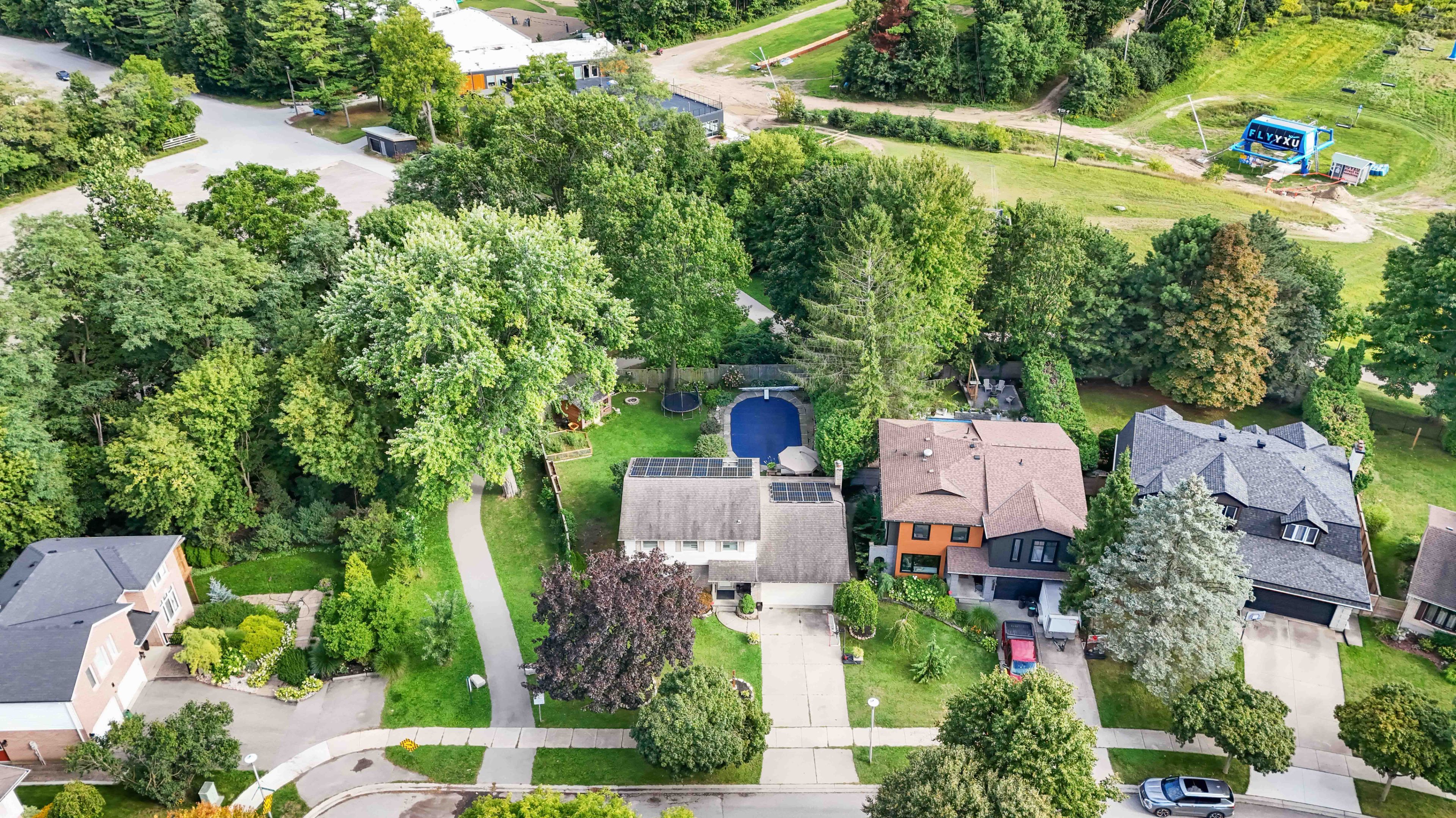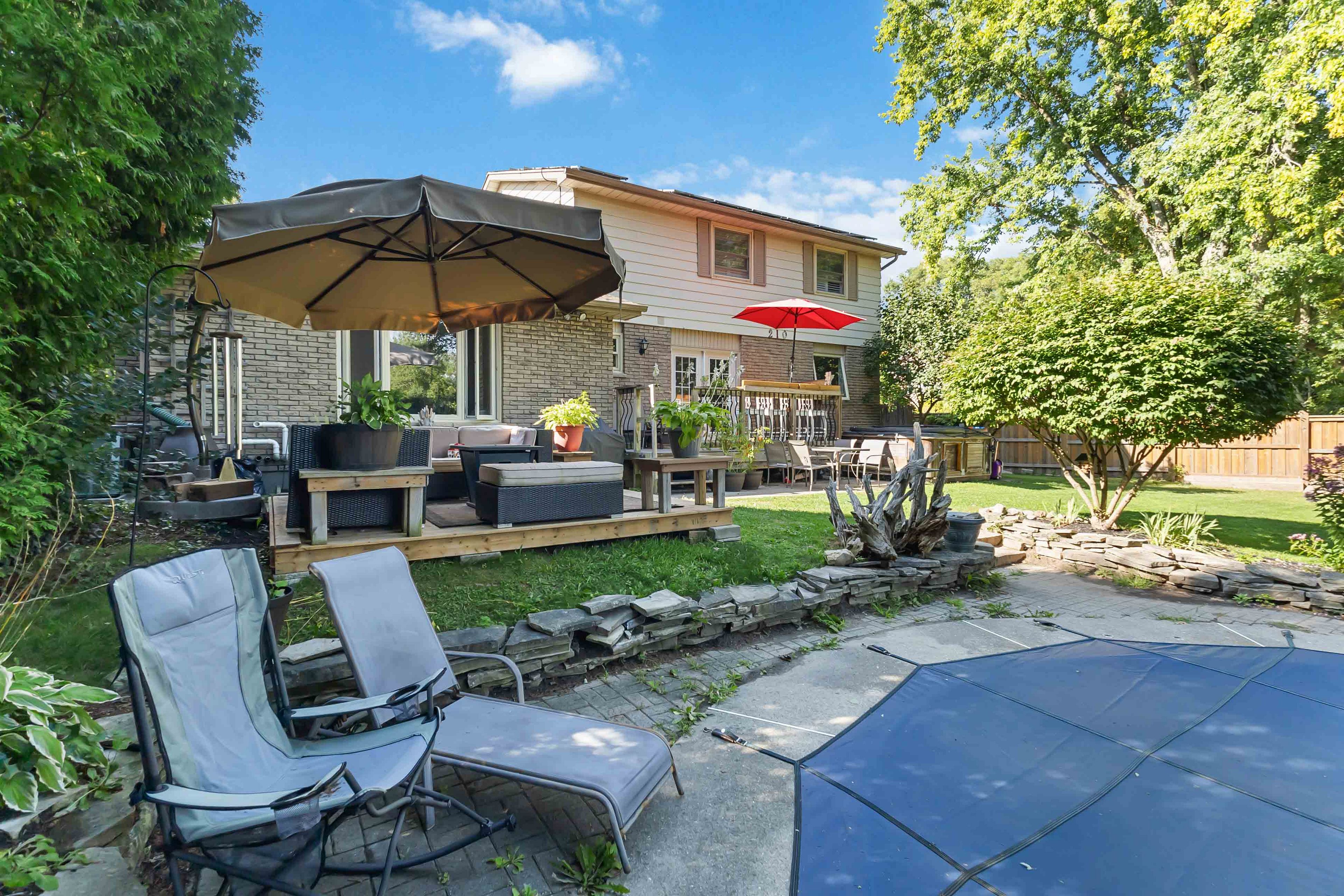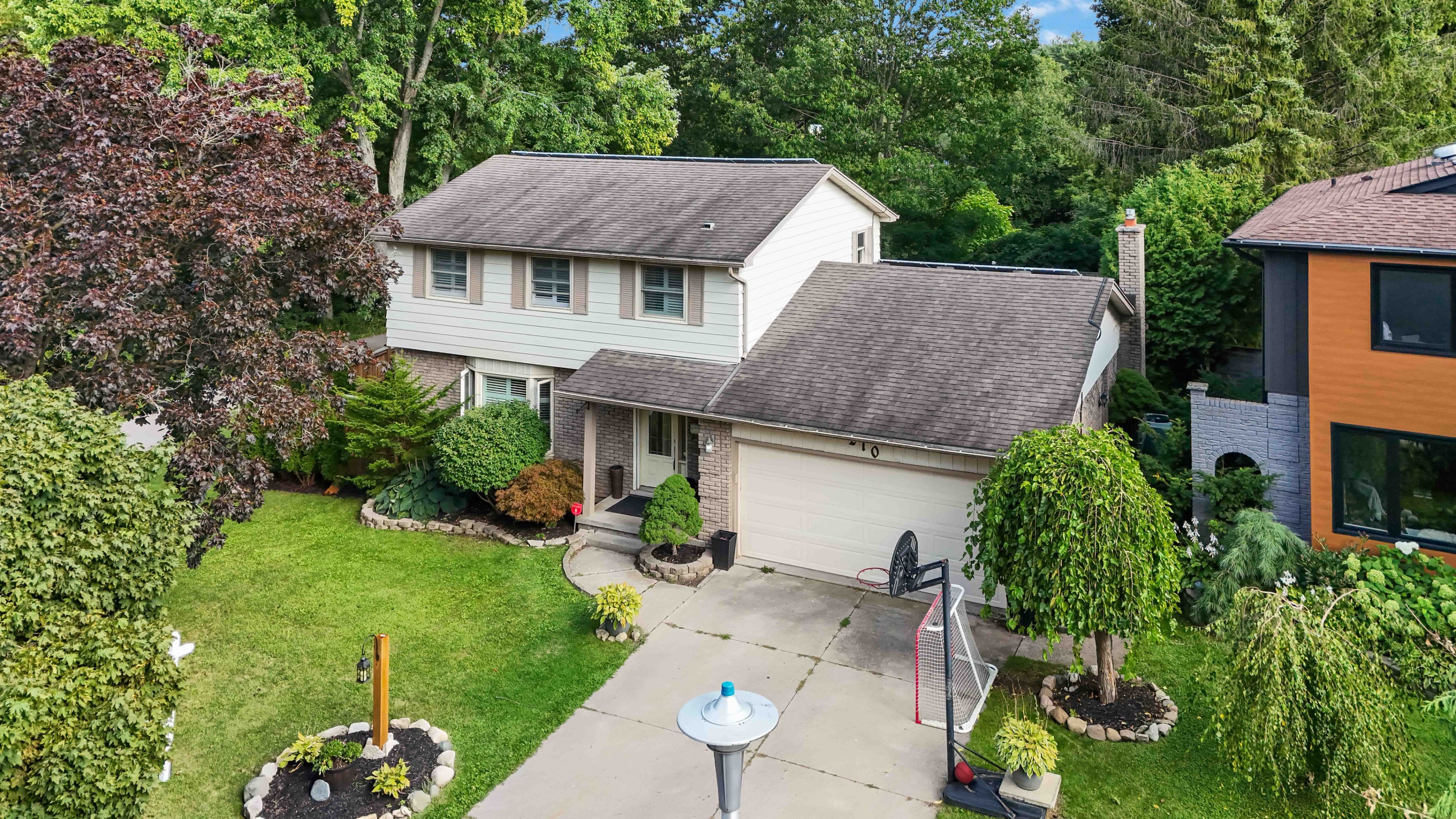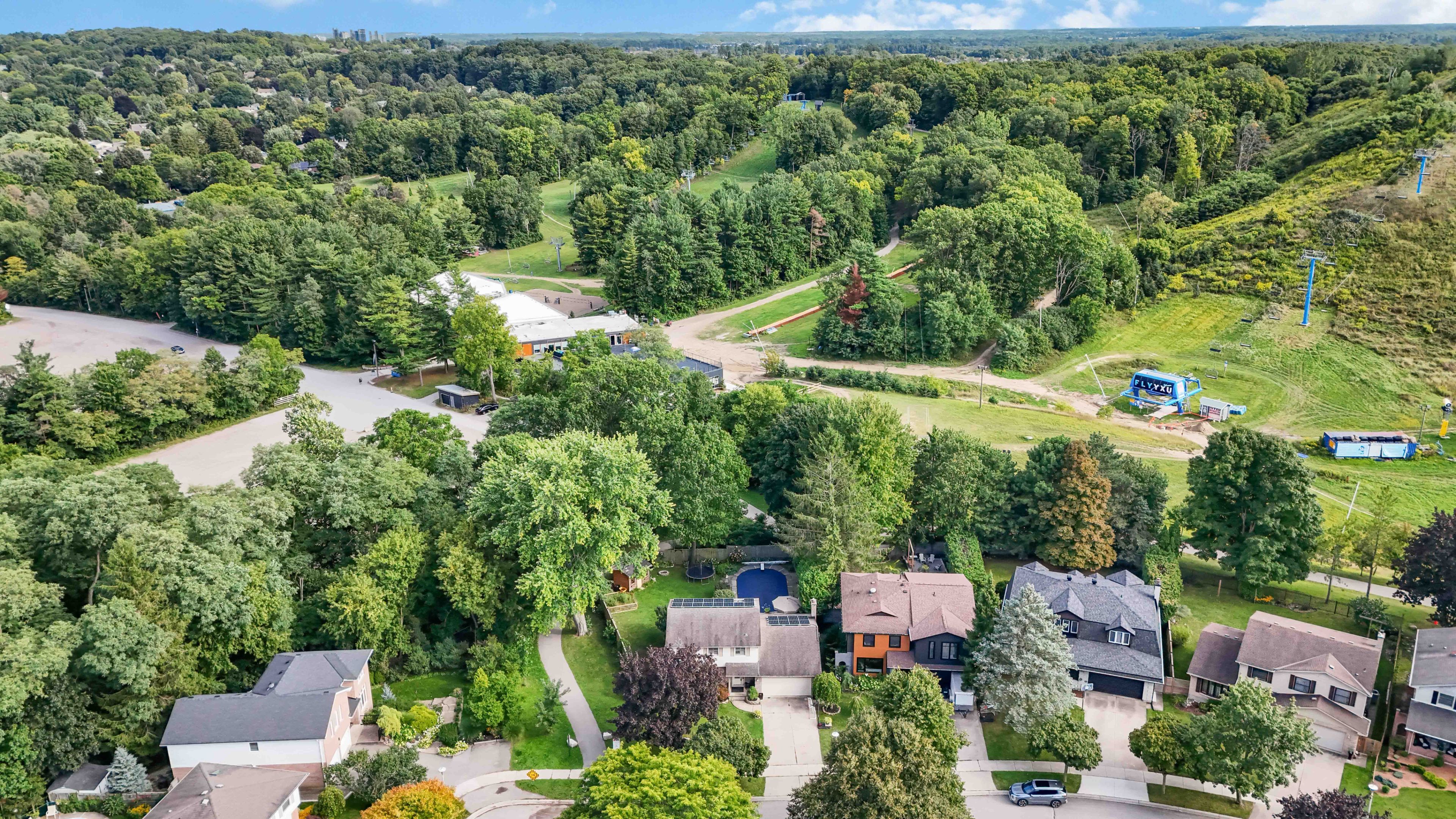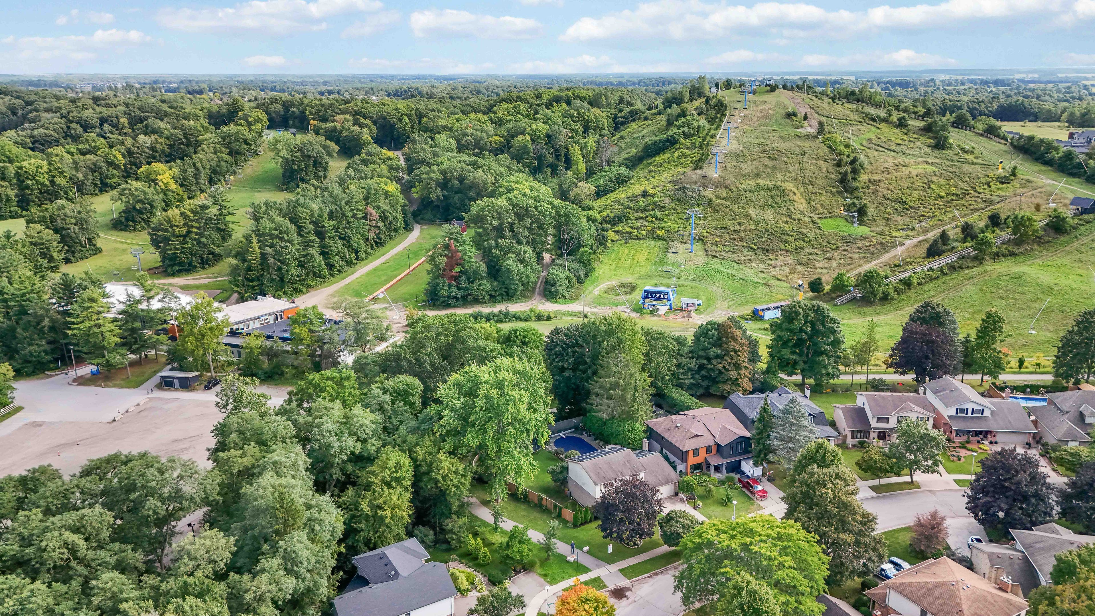 Welcome to this exceptional two-storey home in the heart of byron, backing directly onto the boler ski hill, one of london's most coveted locations. There isn't a home in byron that is closer to the chalet at boler mountain! Offering four spacious bedrooms, two full bathrooms, and two half bathrooms, this property combines comfort, style, and functionality in a truly unbeatable setting. The stunning custom kitchen is a showpiece, featuring rich maple cabinetry, granite countertops, a large central island, and built-in stainless steel appliances. Natural light flows throughout the home, enhanced by california shutters on nearly every window. Step outside to a private backyard oasis, complete with a new privacy fence, rear patio, a storage shed, and a fully fenced in-ground pool, perfect for both relaxation and entertaining. In the winter, enjoy ski lift access right from your backyard, and in the summer, explore scenic walking trails just steps from your door. The fully finished basement offers additional living space with a built-in wet bar and generous storage. Notable updates include a 200-amp electrical panel, ev charger and 220v plug in the garage, spray foam attic insulation (2021), tankless water heater (owned), energy audit (2021), and a natural gas line for bbq. Located just minutes from top-rated schools, parks, shopping, and major highways, this home delivers a rare blend of lifestyle, convenience, and location.