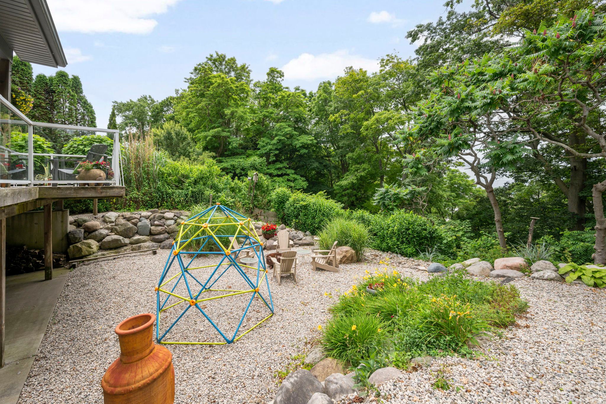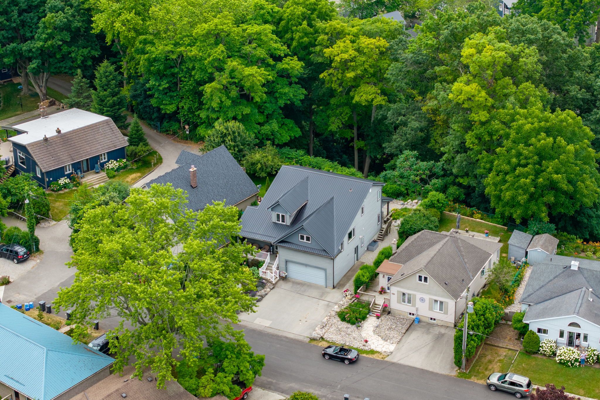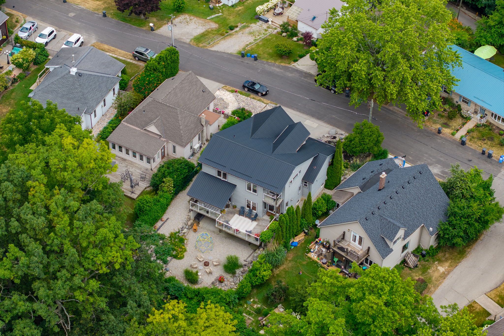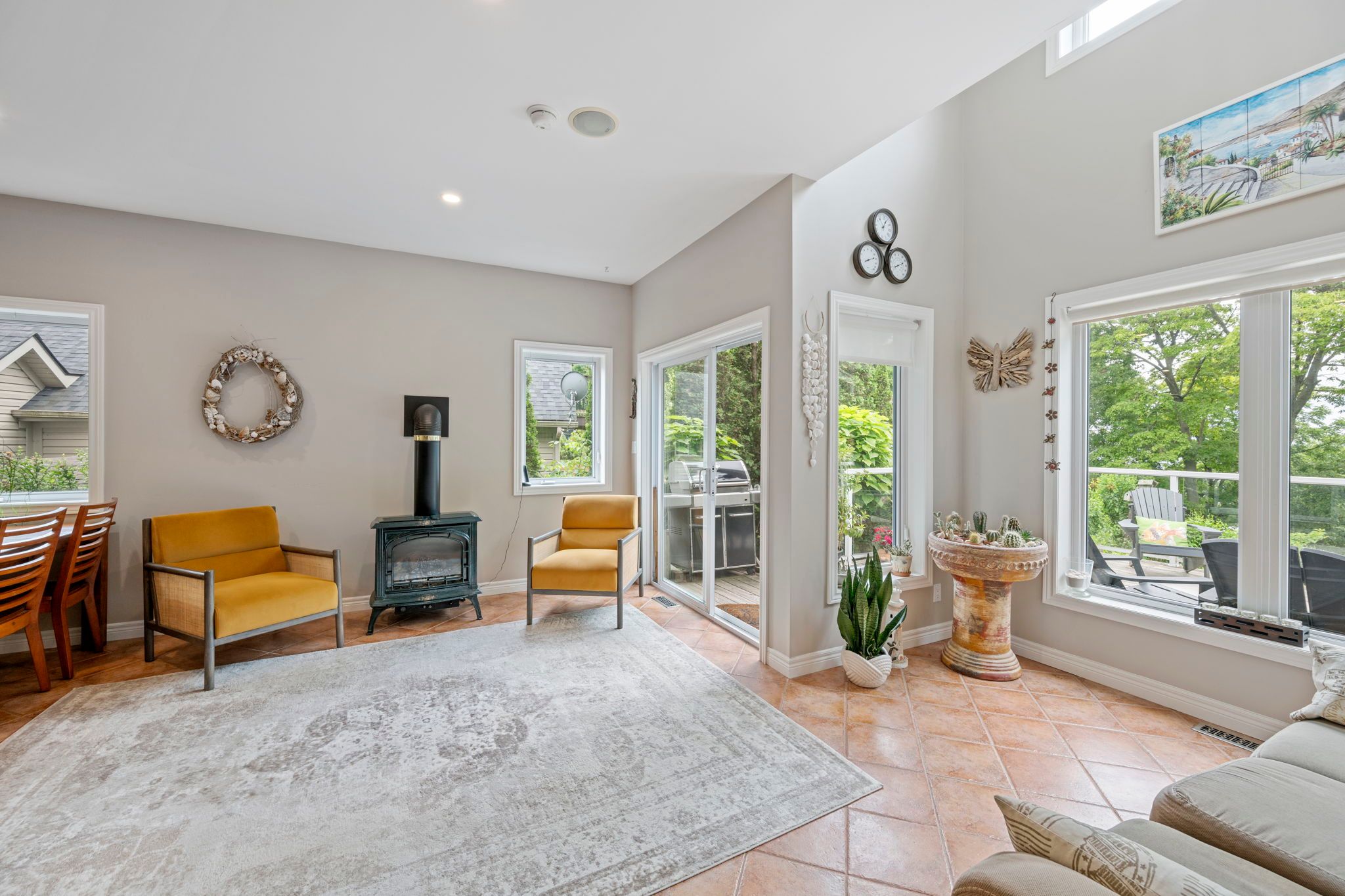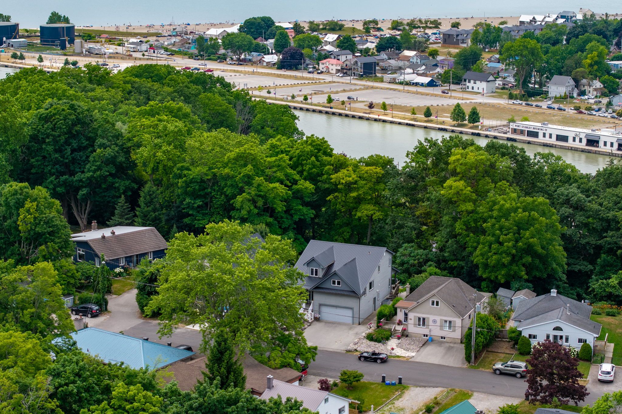 Located in the highly desirable orchard beach neighbourhood of port stanley, this custom-built home offers a rare blend of elegance, comfort, and panoramic views. Perched above the village, the property overlooks the village and lake erie, providing a peaceful and scenic backdrop from multiple vantage points. Ideally situated, it's just a short 5-minute walk to little beach and only 7 minutes to the vibrant village core filled with shops, restaurants, and local charm. The beautifully landscaped exterior features a covered front porch, double garage, and concrete driveway, creating an impressive welcome. Inside, the foyer opens into a bright, open-concept main level with soaring ceilings and large windows that fill the space with natural light. The kitchen, dining, and living areas flow seamlessly and include a gas fireplace-perfect for entertaining or everyday living. A cozy family room nearby offers a quiet space to relax and opens to a partially covered deck with spectacular lake views, ideal for outdoor dining or summer evenings. The second floor offers two generous bedrooms and a full bath, while the third floor is dedicated to a private primary suite featuring a walk-in closet, 3-piece ensuite, and sitting area with access to a balcony-your own private retreat. The lower main level includeds a laundry room & 2-piece bath. The basement has an additional bedroom, 3-piece bathroom, workshop with garage walk-up, and a family room that opens to a backyard oasis with river rock landscaping, fire pit, and lake views. With potential for multigenerational living or airbnb income, this exceptional home offers luxury, function, and an unbeatable location.
