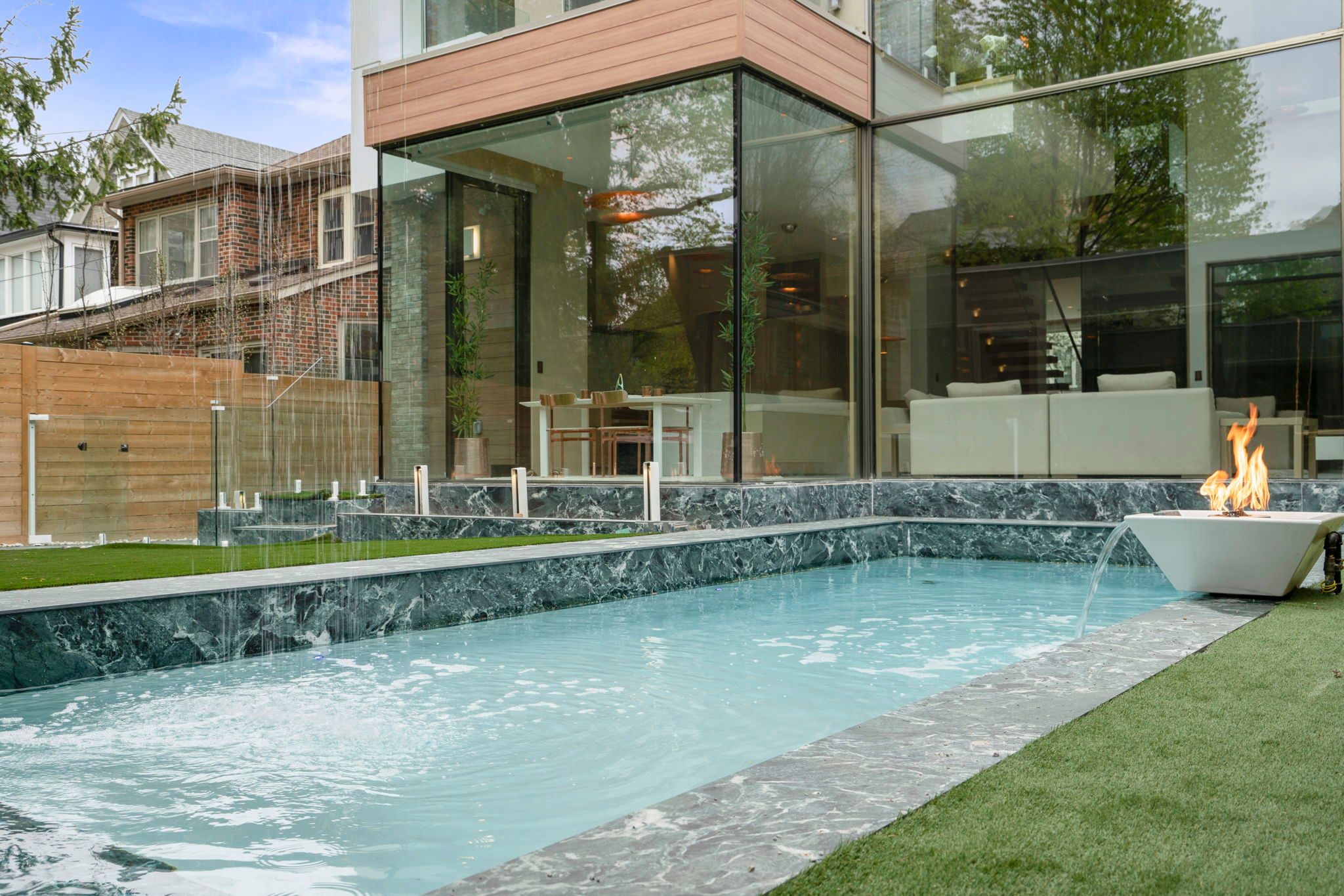 For sale at value dramatically less than replacement cost. Builders own! Extraordinary custom built residence - architecturally significant. Architects own home completed only last year. Finishes almost never seen before all in one home! Magnificent textures w/designer palette. In the prestigious forest hill neighborhood, a true gem that exudes sophistication & elegance. W/7,760 sf of living area inc. Garden home. City of torontos first approved sleek garden house. This residence offers an unparalleled living experience, designed w/a zen-inspired aesthetic that seamlessly integrates natural elements, promoting tranquility & harmony throughout the space. The striking concrete & metal frame construction not only guarantees durability but also creates a stunning architectural statement. Captivating expansive open-concept layout, featuring soaring ceilings open to above, oversized foor to ceiling windows that frame breathtaking views of amenity rich rear yard w/pool martini ledge, cool cascading waterfall, outdoor kitchen & garden house. All invite an abundance of natural light, illuminating every corner of this exquisite home. Imagine entertaining in your beautifully designed living spaces that flow effortlessly into the outdoor oasis, complete w/a heated swimming pool w/illuminated waterfall feature, built-in wolf bbq & a luxurious self-contained legal garden house that serves as an ideal retreat for guests, next level entertainment or a serene workspace. The home is equipped w/modern conveniences, including snow melt system for the driveway & walkways to the rear, elevator for easy access to all levels, home theatre, heated floors, car lift w/ access to 4 indoor parking spaces & much more. This is not just a house; it's a lifestyle defined by elegance & serenity. W/its breathtaking views, exquisite design, & unparalleled amenities, this forest hill masterpiece is the epitome of luxury living in toronto. Don't miss the opportunity to make this dream home your reality!