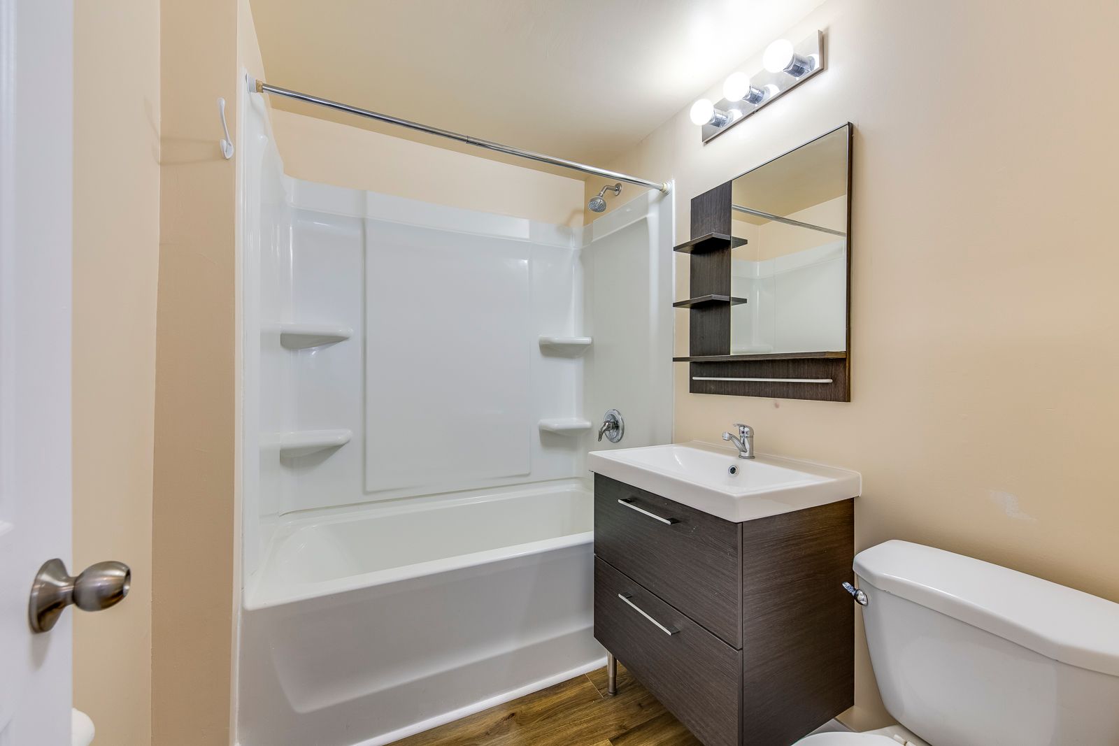 • Renovated unit with a modern kitchen and upgraded laminate flooring.