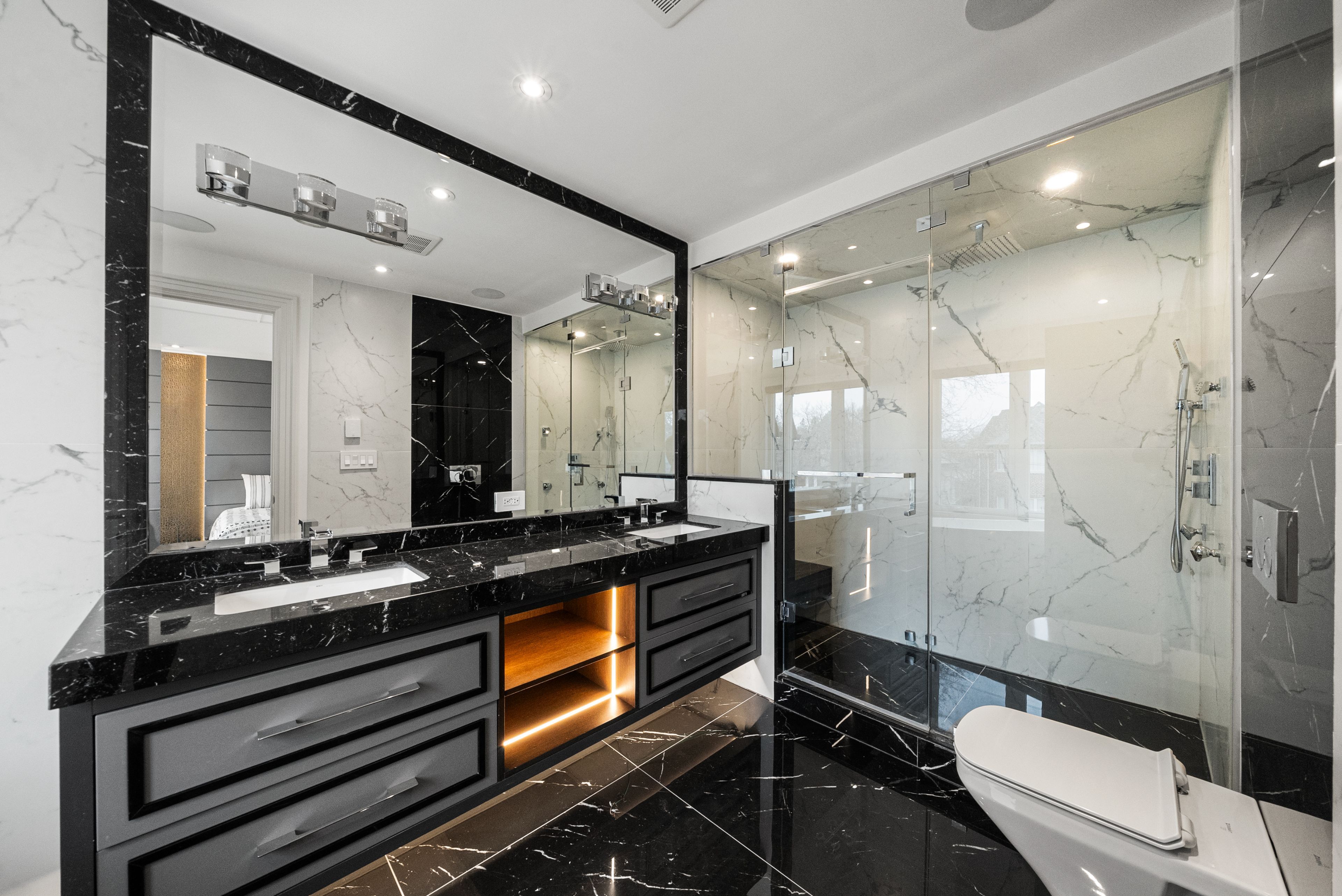 • Luxurious primary bedroom with spa-inspired ensuite and heated floors.