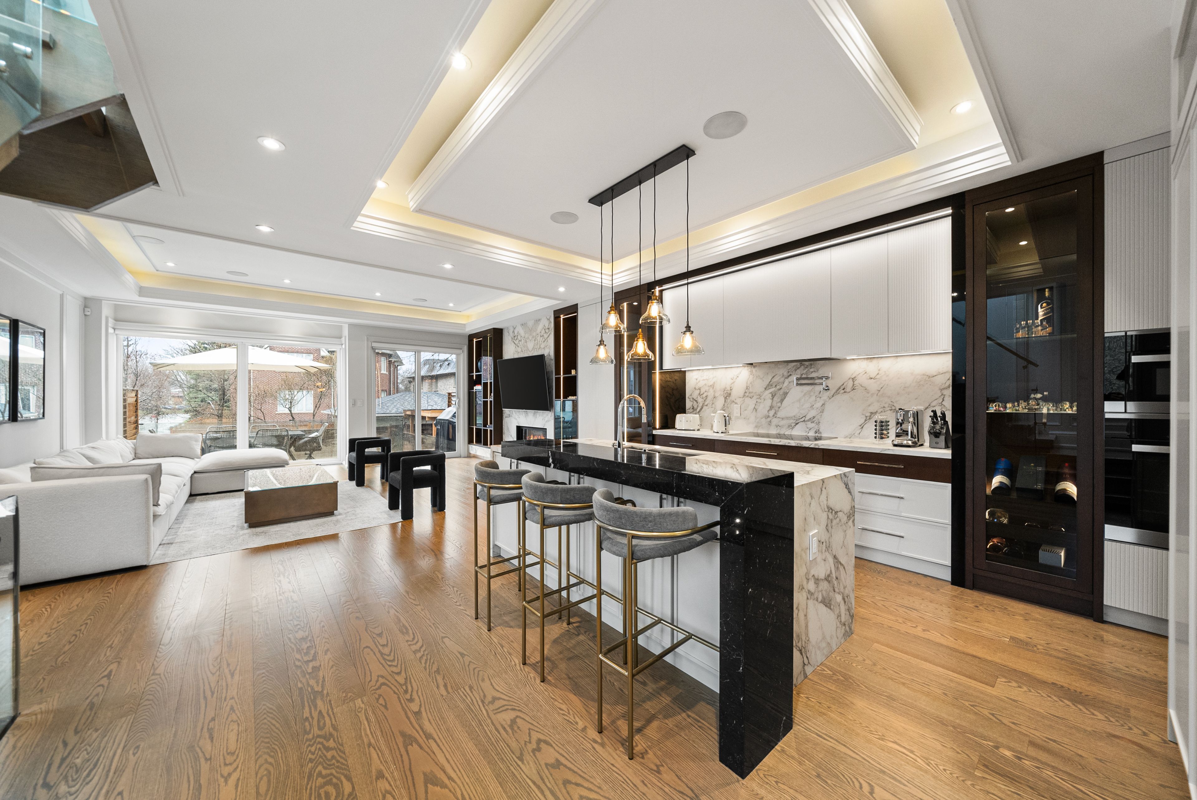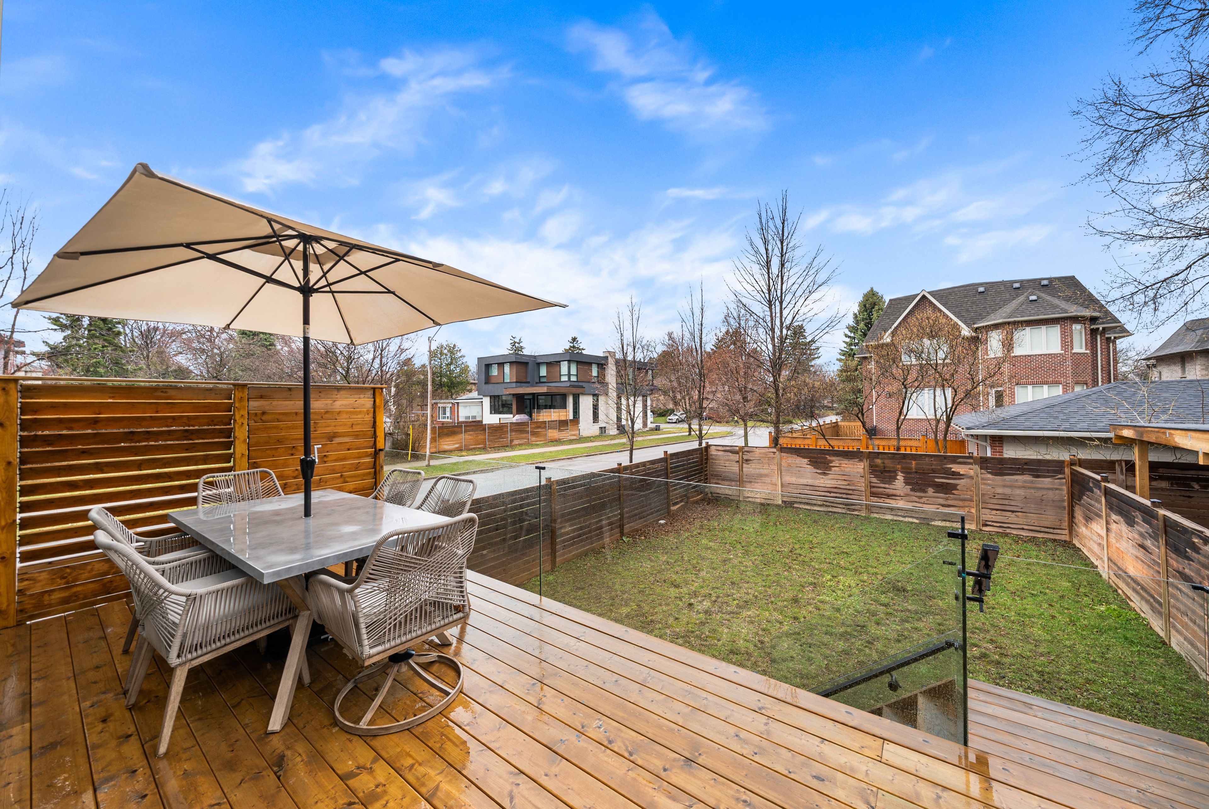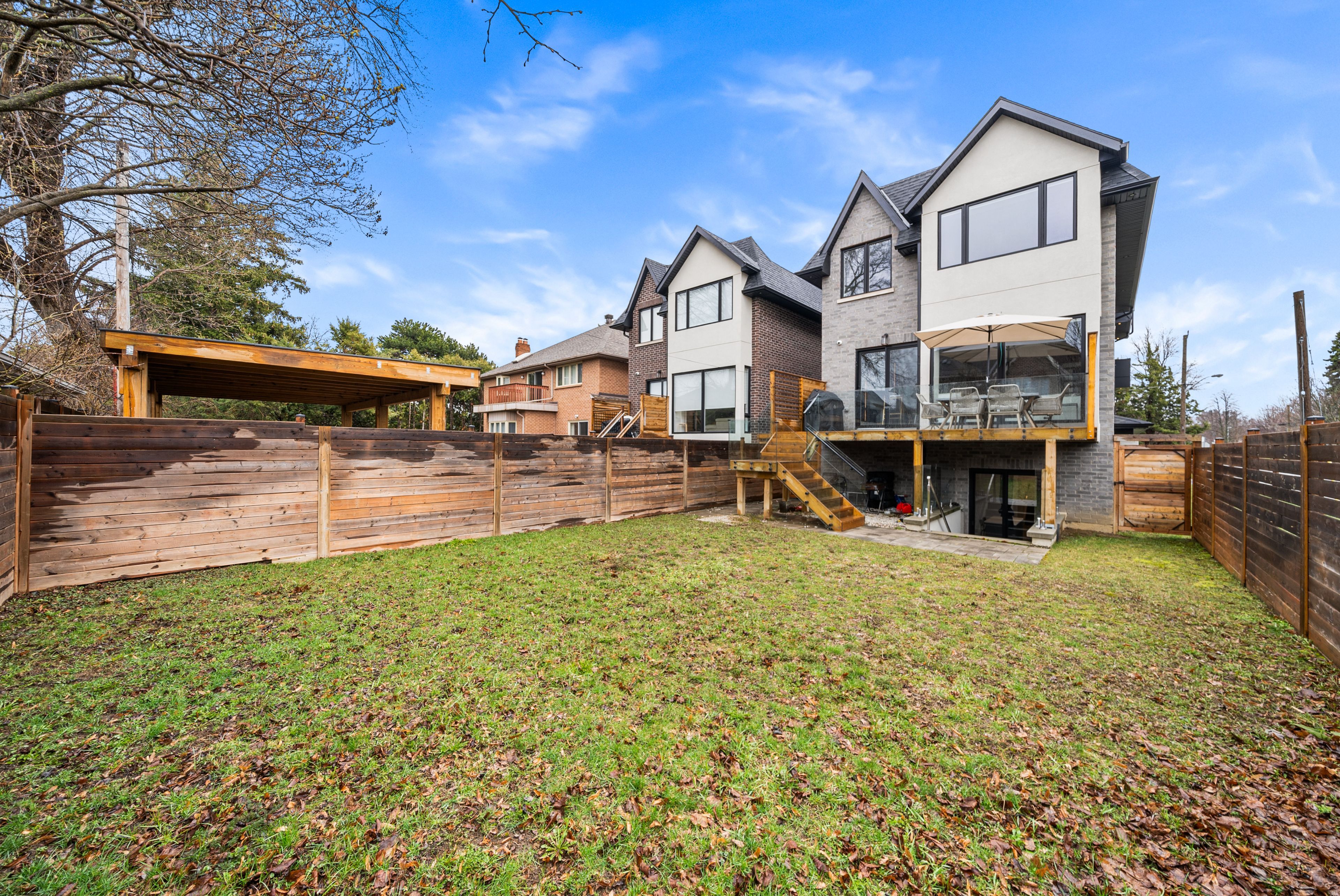 Welcome to 210 horsham - a stunning luxury residence offering exceptional design and craftsmanship throughout. This open-concept home features elegant oak flooring and matching oak stairs with sleek glass railings, complemented by sophisticated wood paneling across the main and second floors. The gourmet kitchen is equipped with high-end built-in appliances, perfect for modern living. The main floor is enhanced by a stylish gas fireplace, creating a warm and inviting atmosphere, while skylights throughout the home fill the space with natural light. The family room offers a seamless walkout to a custom-built deck, complete with a beautiful seating area and gas bbq line - ideal for entertaining. Enjoy enhanced comfort with heated flooring in all bathrooms, along with built-in speakers throughout the home for a truly elevated living experience. Retreat to the luxurious primary bedroom featuring a spa-inspired 7-piece ensuite. Additional highlights include electric blinds throughout, a full home sprinkler system, and the convenience of laundry on two levels. The fully finished walkout basement is completely self-contained, featuring a full kitchen, heated floors, a separate entrance, and its own private door - ideal for extended family or potential income opportunities. A truly exceptional home with premium finishes, thoughtful layout, and upscale living at its finest.