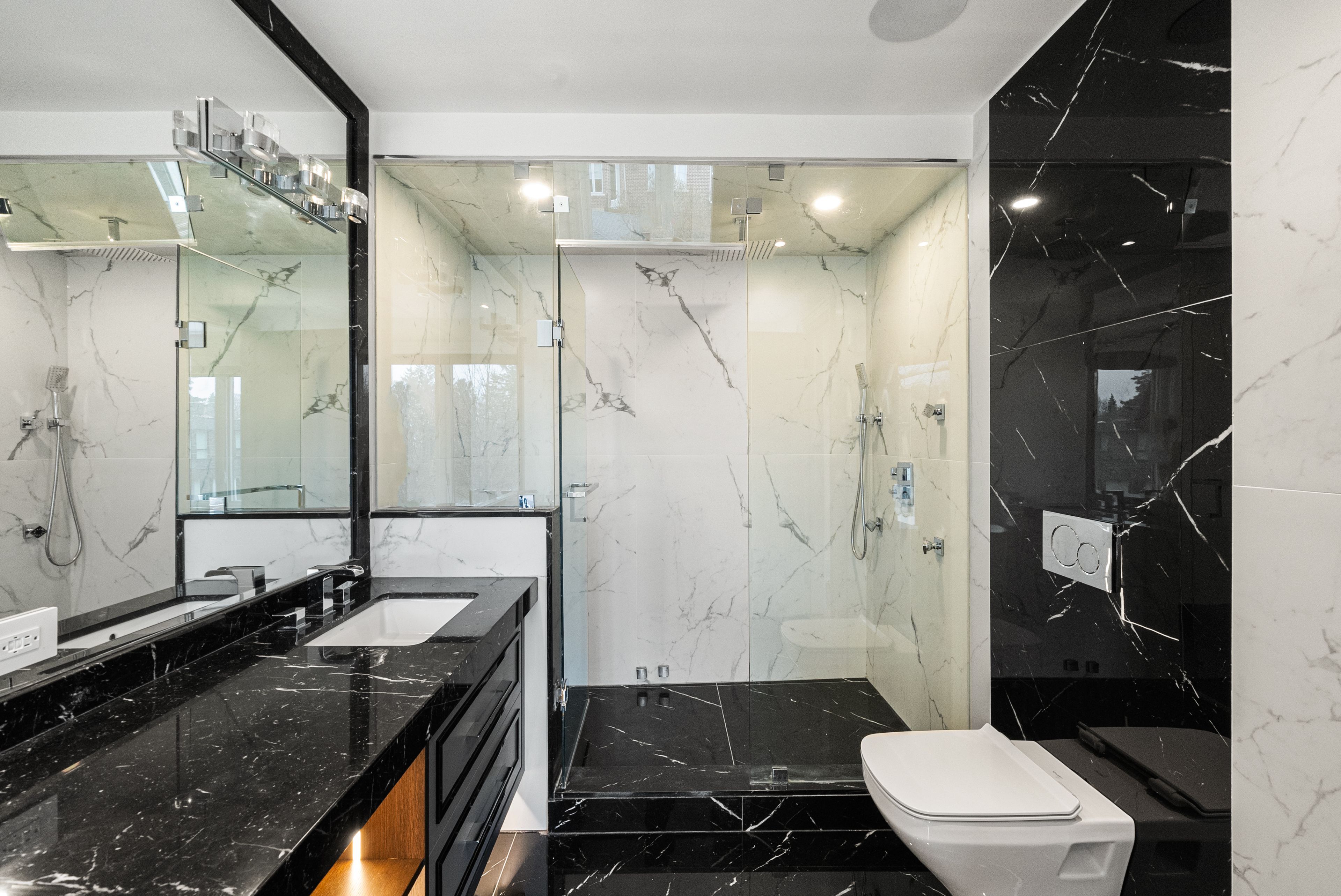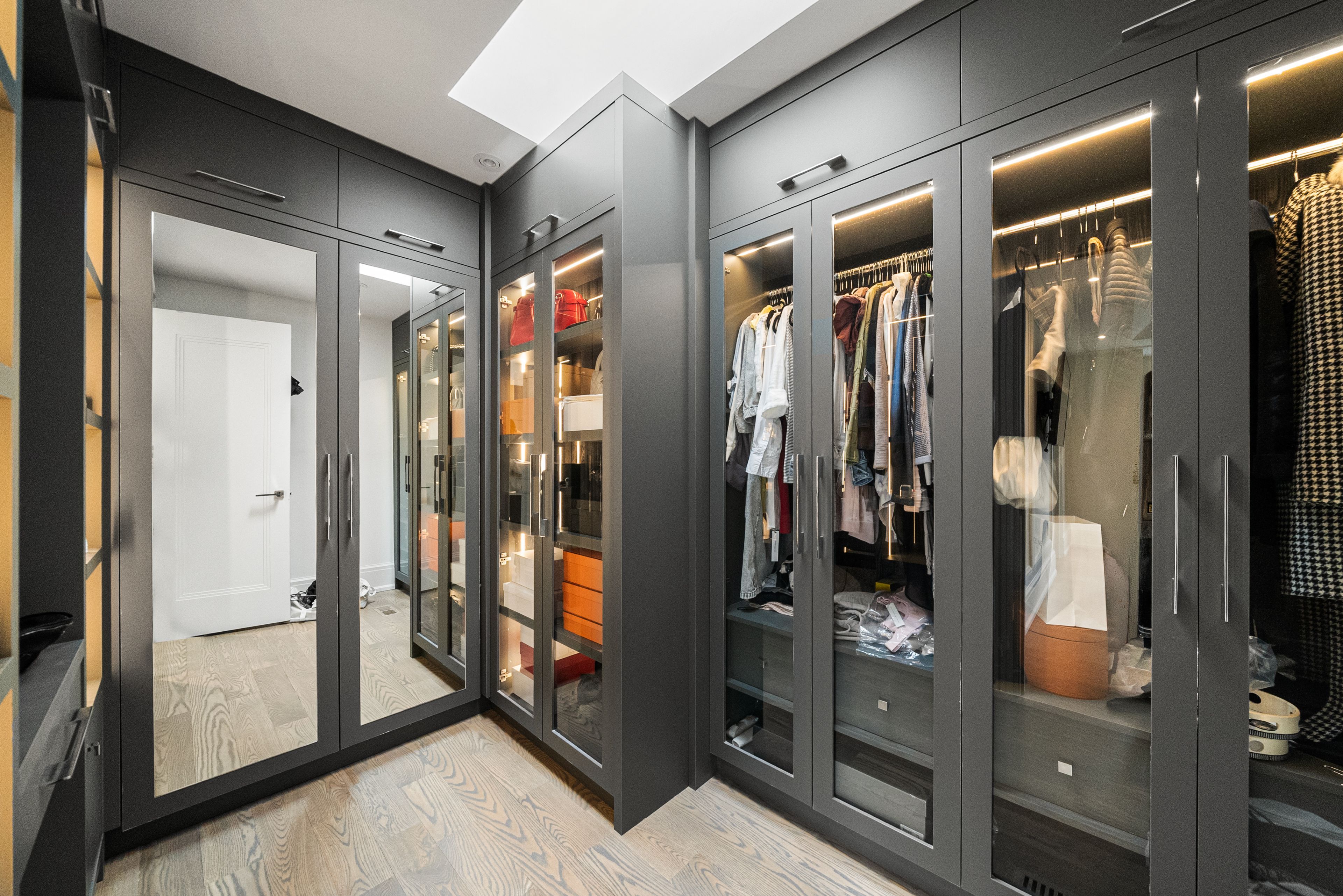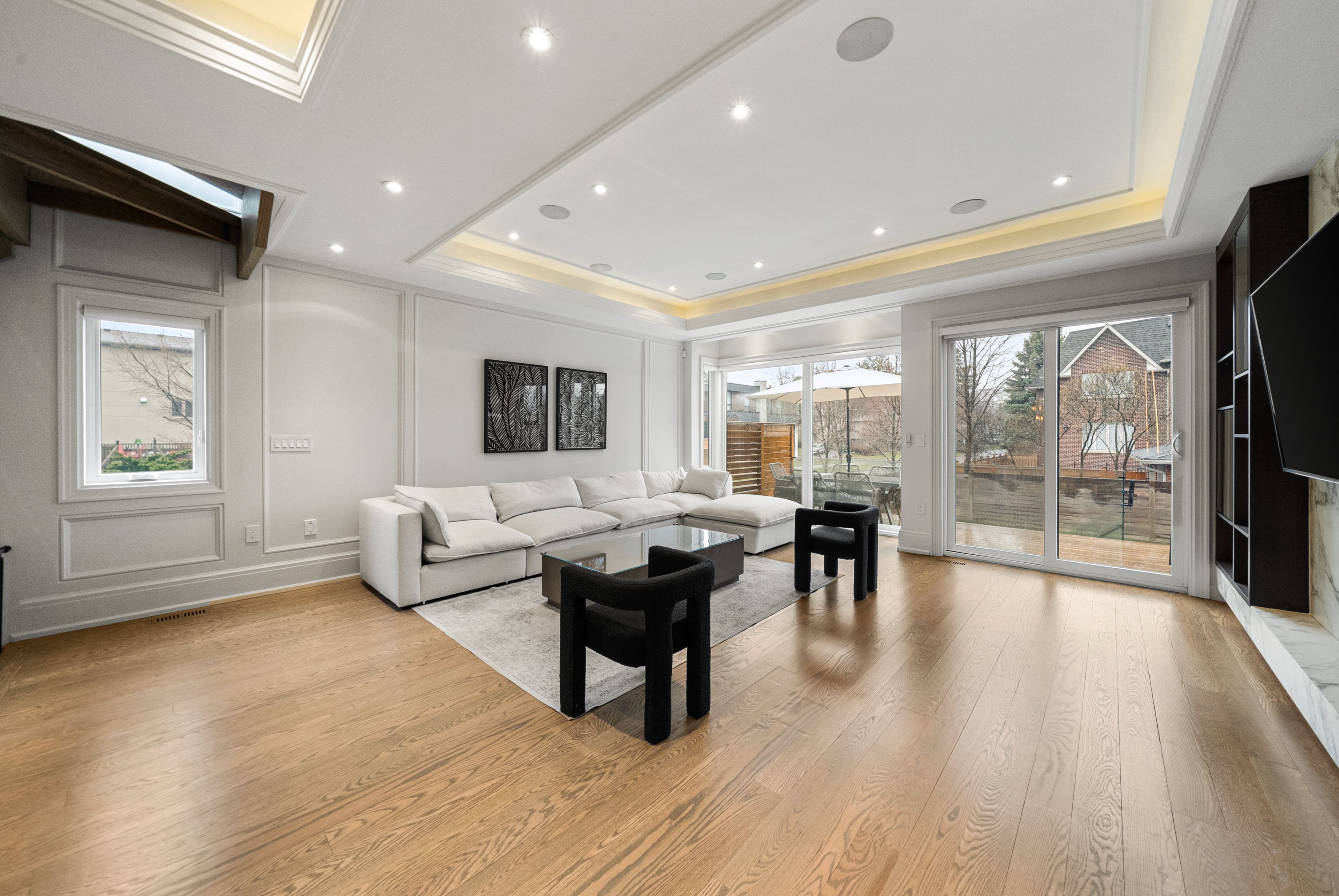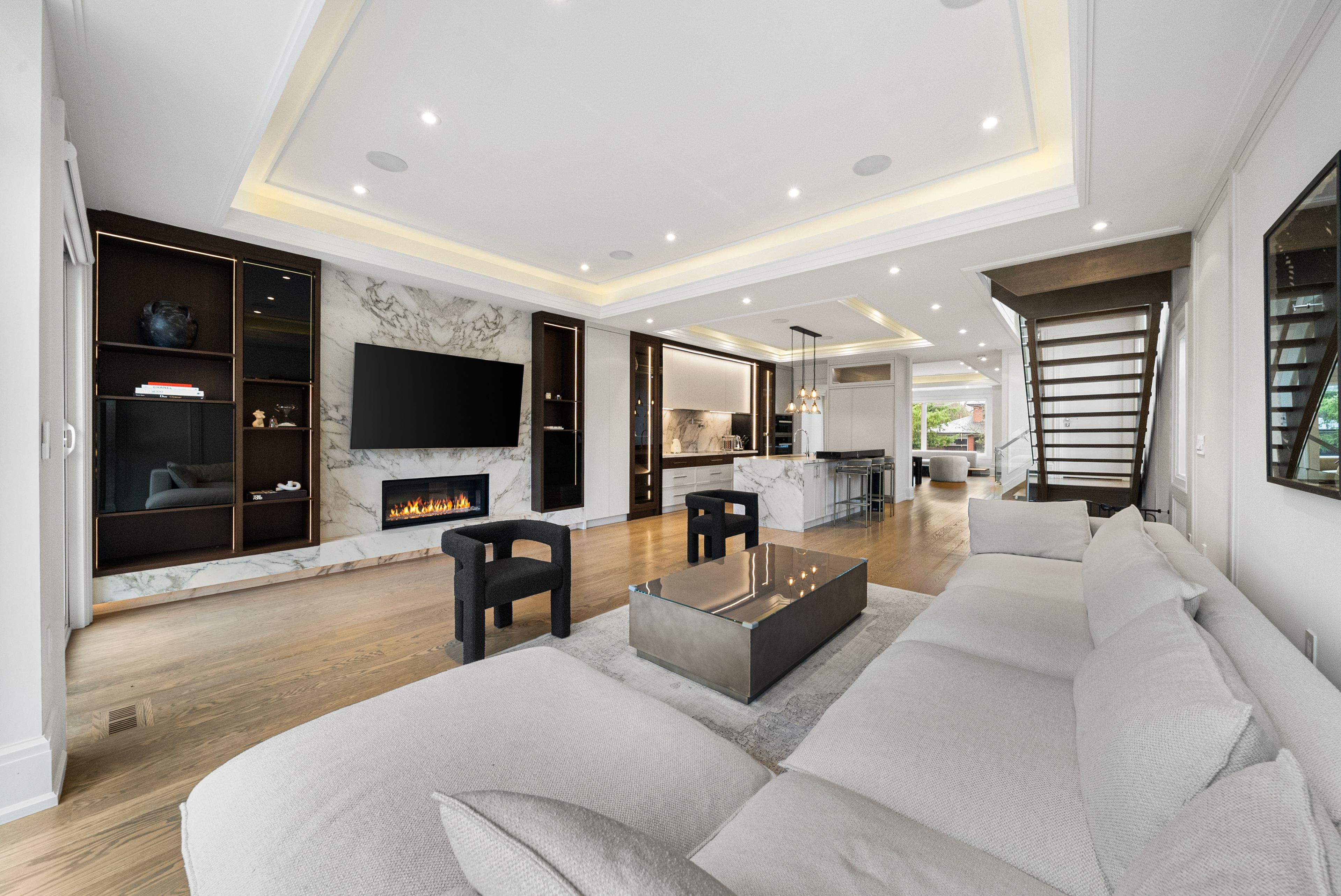 Welcome to 210 horsham - a stunning luxury residence offering exceptional design and craftsmanship throughout. This open-concept home features elegant oak flooring and matching oak stairs with sleek glass railings, complemented by sophisticated wood paneling across the main and second floors. The gourmet kitchen is equipped with high-end built-in appliances, perfect for modern living. The main floor is enhanced by a stylish gas fireplace, creating a warm and inviting atmosphere, while skylights throughout the home fill the space with natural light. The family room offers a seamless walkout to a custom-built deck, complete with a beautiful seating area and gas bbq line - ideal for entertaining. Enjoy enhanced comfort with heated flooring in all bathrooms, along with built-in speakers throughout the home for a truly elevated living experience. Retreat to the luxurious primary bedroom featuring a spa-inspired 7-piece ensuite. Additional highlights include electric blinds throughout, a full home sprinkler system, and the convenience of laundry on two levels. The fully finished walkout basement is completely self-contained, featuring a full kitchen, heated floors, a separate entrance, and its own private door - ideal for extended family or potential income opportunities. A truly exceptional home with premium finishes, thoughtful layout, and upscale living at its finest.