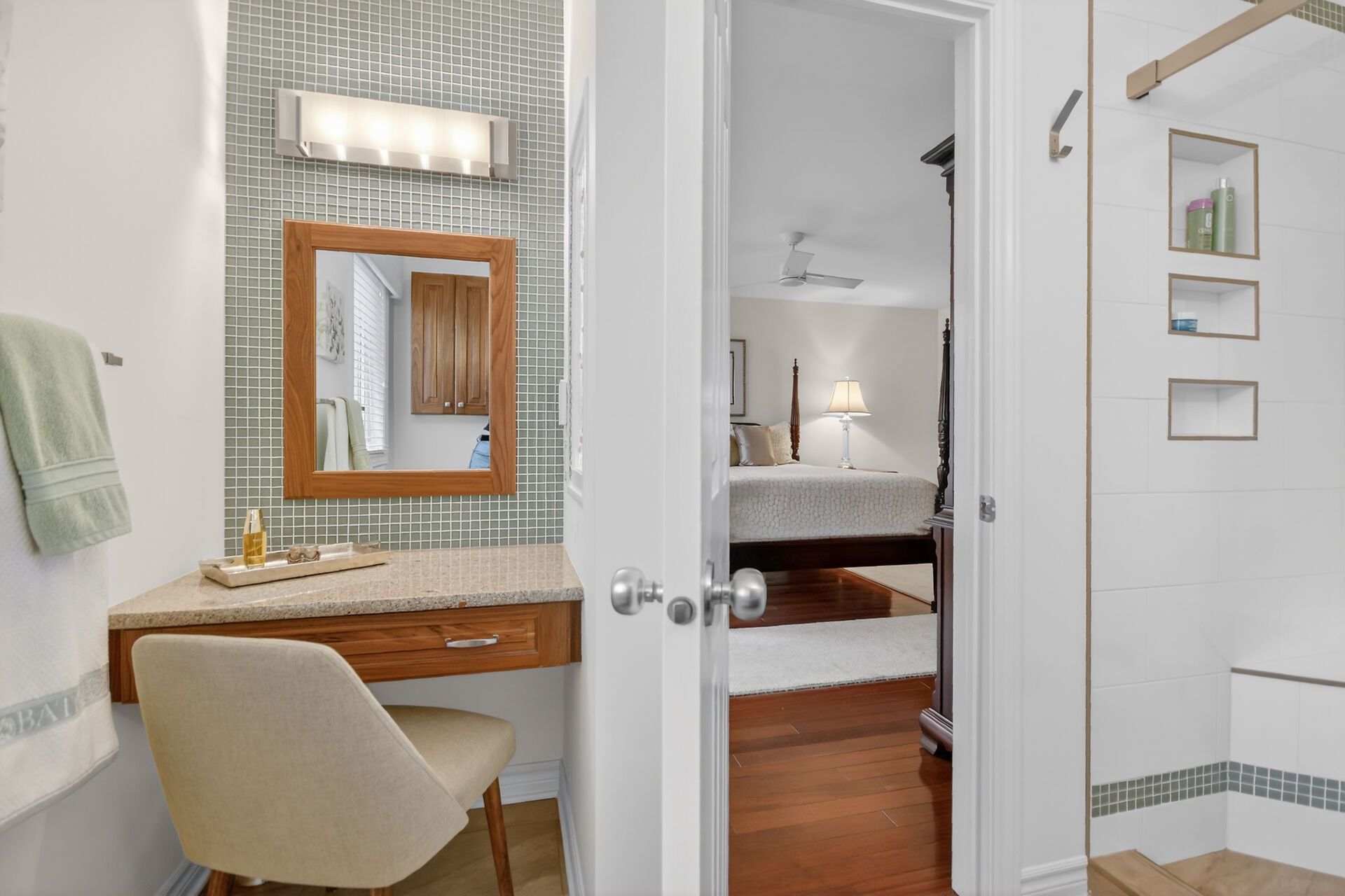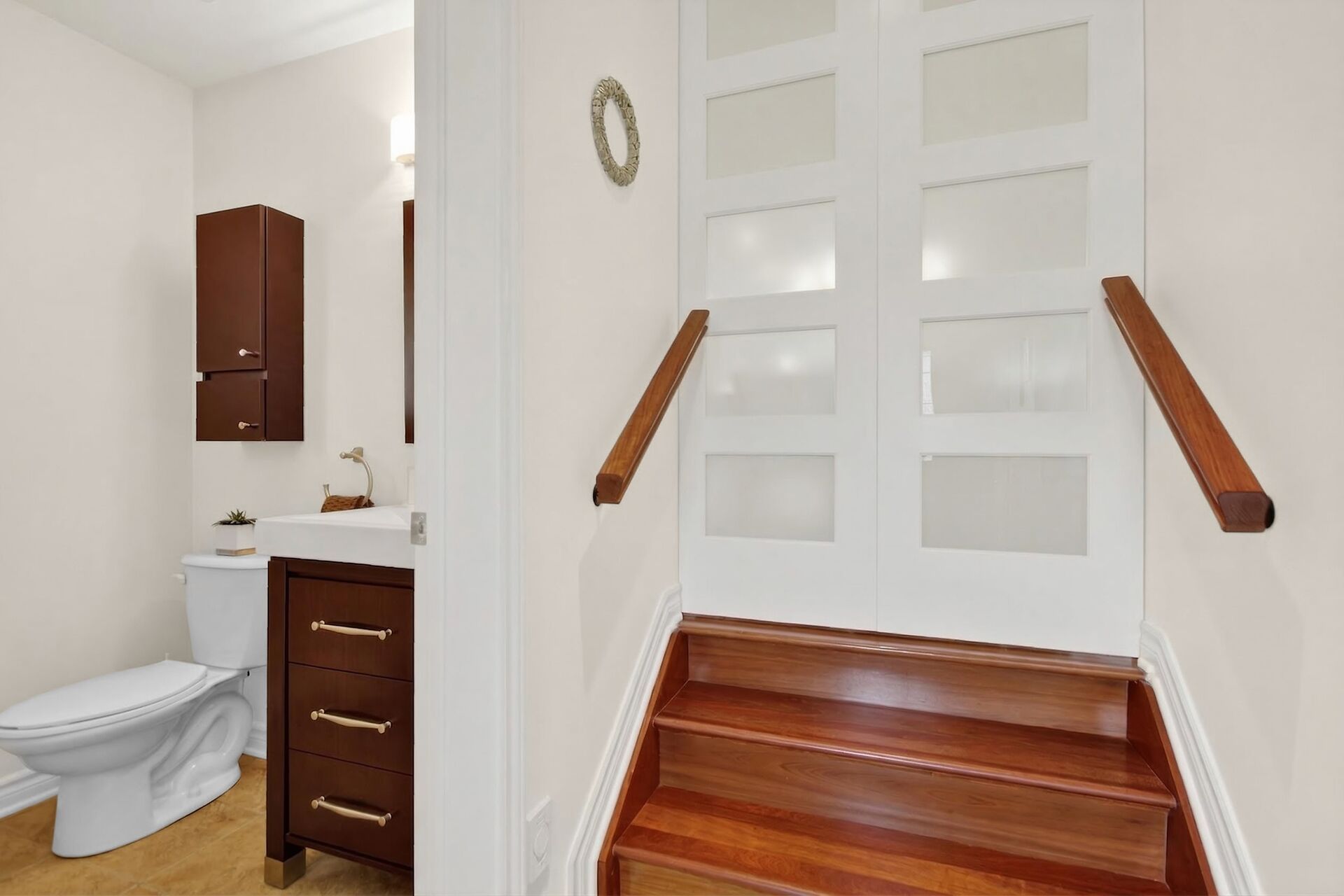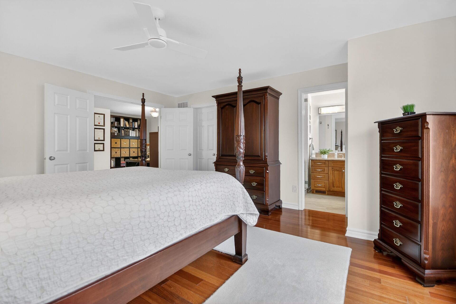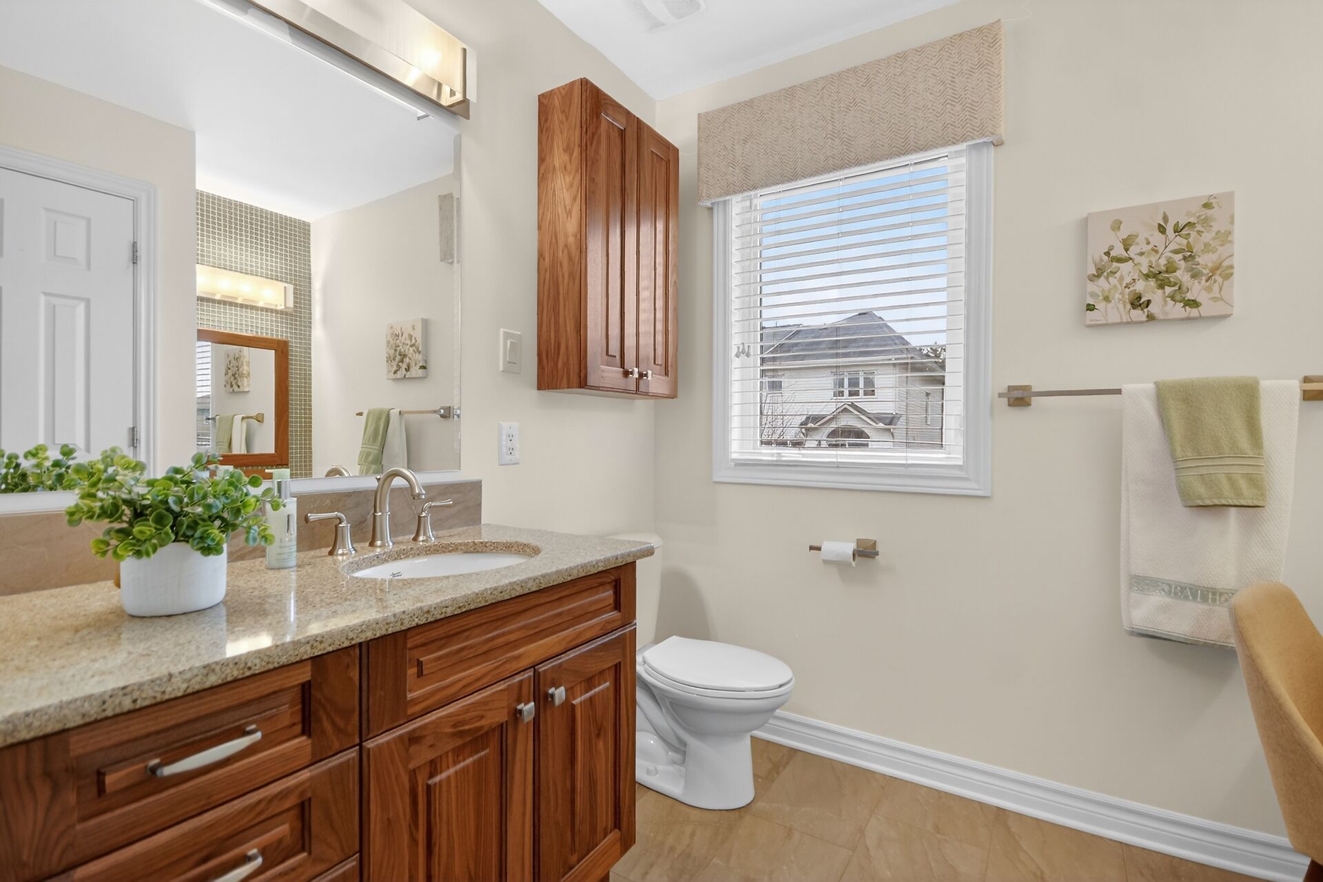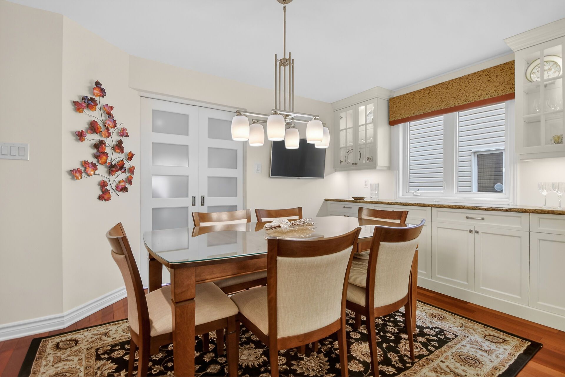 • Custom kitchen with quartz counters and soft close cabinets for functionality.