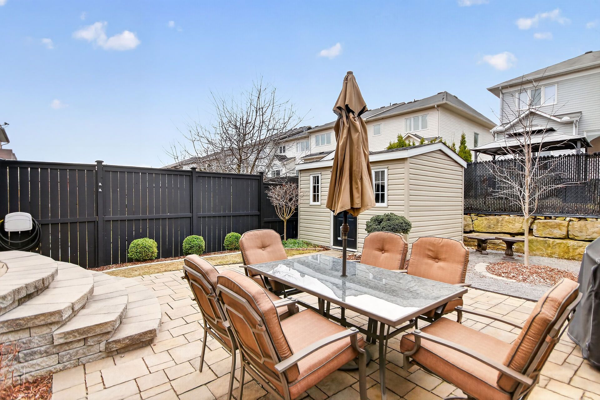 • Lovely fenced backyard with patio, great for barbecues and relaxing outdoors.