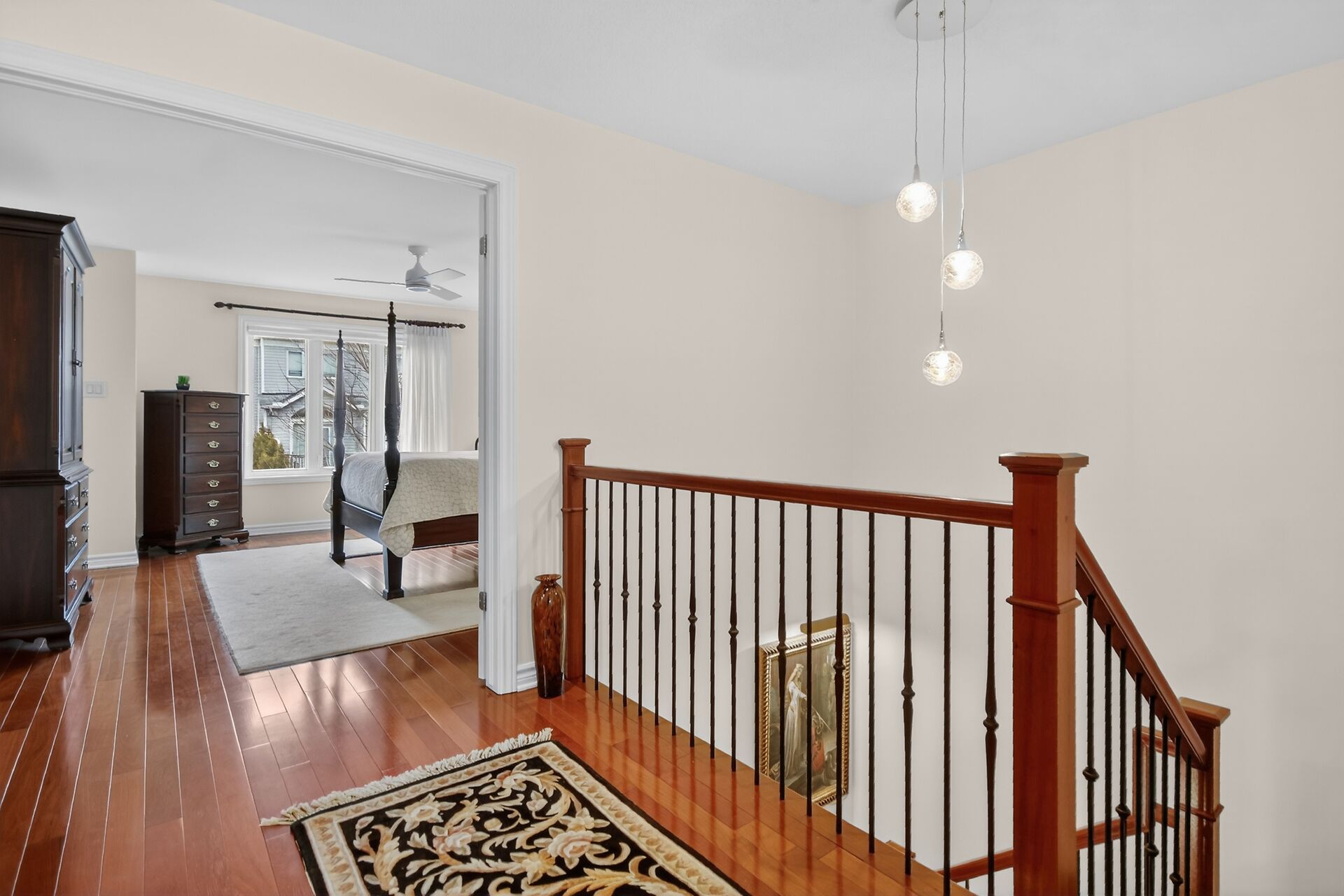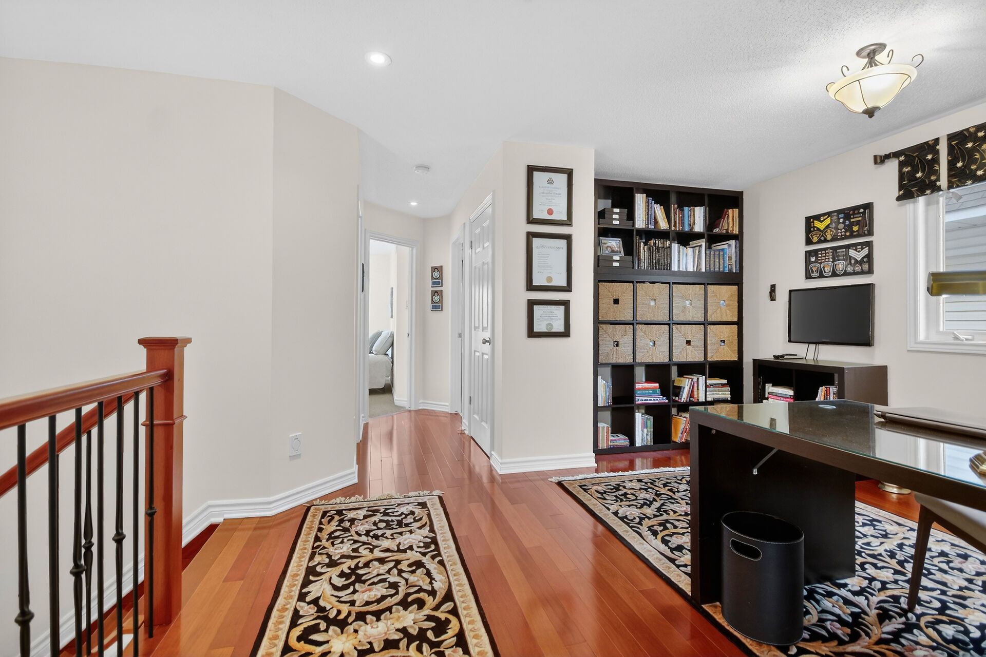 Outstanding end unit townhome (minto park place) with brick façade, 3 bedrooms plus loft & 3 baths, nestled on a private street in morgan's grant. Short walk to south march highlands, parks, schools & rec center. Lovely gardens, interlock walkway, fenced backyard w/patio & garden shed. Private driveway & no easement in the backyard. Highlights include: porcelain tile & brazilian cherry hardwood floors & stairs, custom kitchen & dining room w/soft close cabinets w/quartz counters, renovated baths, upgraded lighting & custom closets. A sliding french door opens to the dining & living room from the foyer. Kitchen has a wider opening to the dining room, perfect for entertaining. Kitchen features: custom cabinets, pot drawers, pullout organizers, quartz counters, tile backsplash, task & recessed lighting, & an added window over the sink. Counter extends to a peninsula w/breakfast bar. Patio door provides access to the backyard, great for barbecues. Living room has a big picture window w/views of the backyard. A custom cabinet can stay with the home, if the purchaser desires. Hardwood stairs & railing with metal spindles to the 2nd level w/hardwood floors in the hall & primary bedroom. Loft makes a perfect office or could be a 4th bedroom. It has a tall window & overhead lighting. Primary bedroom has a big window w/views of the backyard & a custom walk-in closet. Ensuite bath features in-floor heating & tiled double shower w/bench. Custom walnut vanity w/soft close drawers, quartz counters & an extra vanity w/mirror, perfect for make-up. 2 more bedrooms, each a good size w/berber carpet, double closets, overhead lights & tall windows. Main bath has a jet tub w/shower & tile surround, a cherry wood vanity & extra cabinet. Staircase is open to lower level family room which has fantastic space for relaxing & a home office. Gas fireplace has stone facade & there is a deep window for natural light. Separate laundry & utlity room & a workshop. 24 hours irrevocable on offers.
