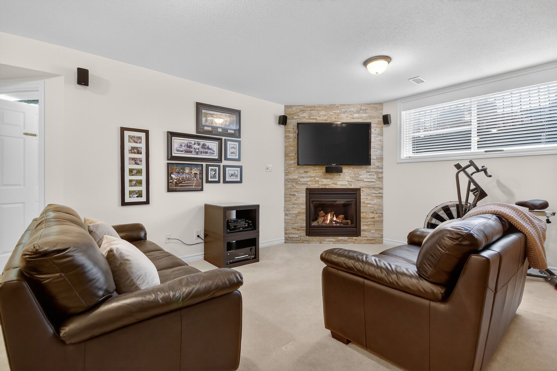 • Lower level family room with gas fireplace, perfect for cozy gatherings.