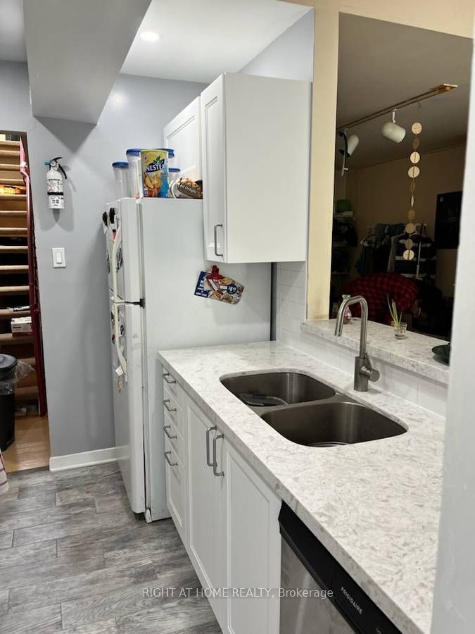 This 4 bedroom, 2 full bathroom unit is ideal for students/friends wanting to live together. 12 ft. Ceilings, bright unit with a large/dining living area, open concept kitchen and engineered flooring. All rooms are a good size with a lot of light and space. Large rap around private deck with great view of cn tower. Ideal for uoft, mtu, ocad, students or a group of young professionals/family. 2 min. Walk to uoft, trendy baldwin st shops and restaurants, queens park subway, loblaws, club district and many downtown attractions. Laundry en-suite in the unit.