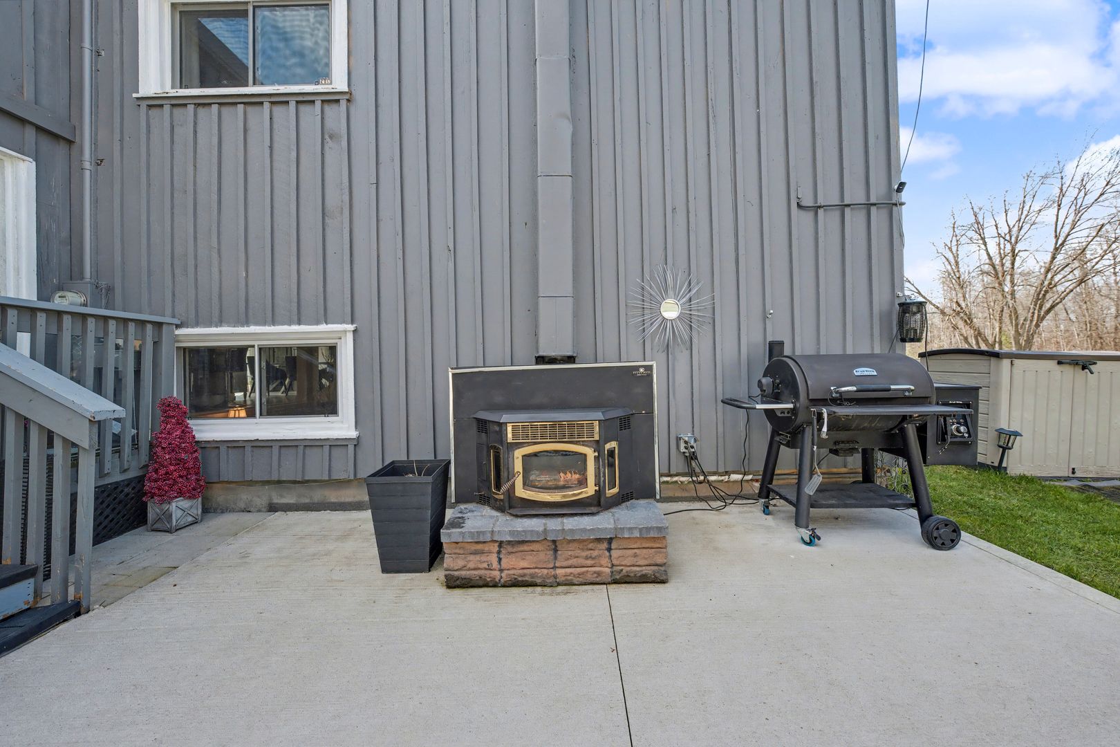 • Outdoor space includes a concrete patio and covered front deck.