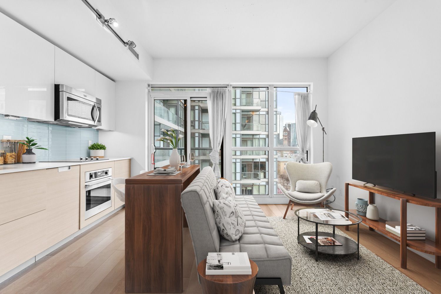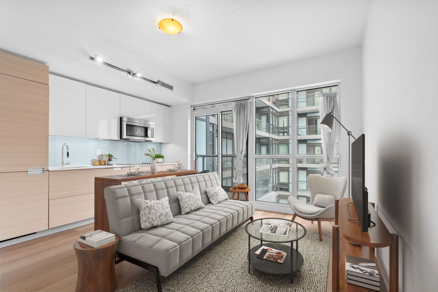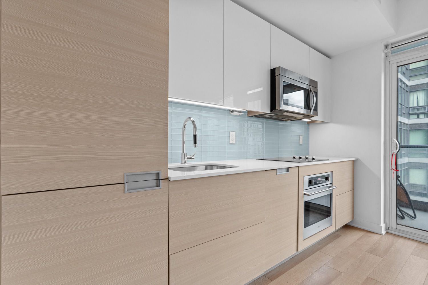 Prime location meets boutique sophistication! This spacious 1-bedroom , 1-bathroom suite , with it's lofty 9-foot ceilings and east-facing windows that the bathe the open-concept living room in morning light. The contemporary kitchen is loaded with luxury details: sleek glass-tile backsplash, quartz counters, pull down gooseneck faucet, undermount sink, handleless push-to-open cabinetry, custom hidden drawer-in-drawer storage, fully integrated stainless steel appliances by the premium italian maker fulgor milano. Building amenities include a 24-hour concierge , a well-equipped gym and yoga studio , an outdoor terrace with water feature, a meeting room, visitor parking and bike storage . At thus unbeatable location, cozied along a quiet side street between the ever-trendy west queen west and dundas west, you're a hop and a skip to baldwin village, chinatown ,and kaleidoscopic kensington market. Just beyond your doorstep is a myrid of boutiques , chic cafes , gourmet dining , premiere entertainment venues , cultural epicentres, and a collection of canadas most eminent institutions -including words-class hospitals , university of toronto , toronto metropolitan university , ontario collage of art and design , art gallery of onatario , national ballet of canada , law society of ontario , superior court , city hall, and the provincial parliaments at queens park - to jut name a few . All that's missing is you