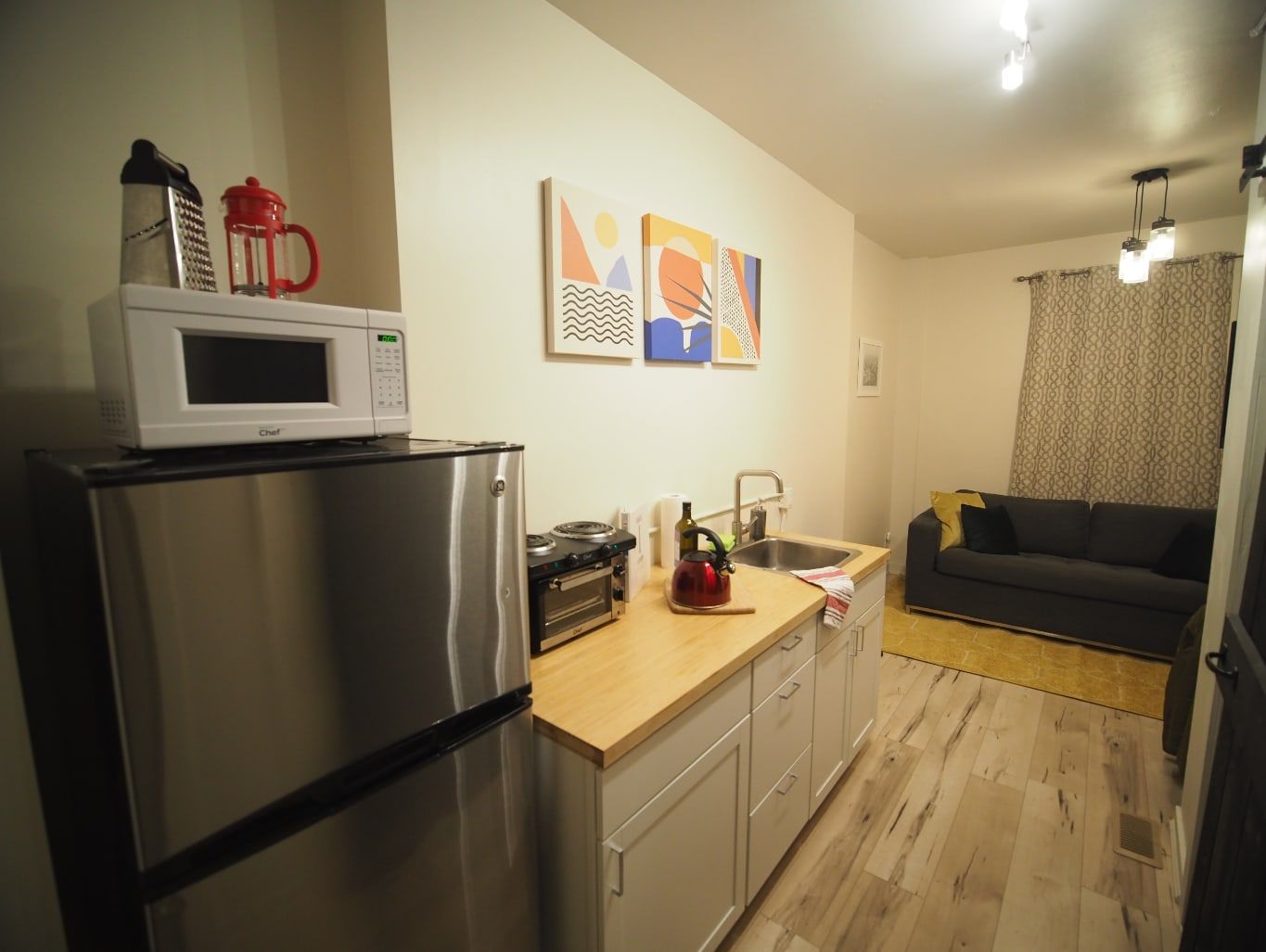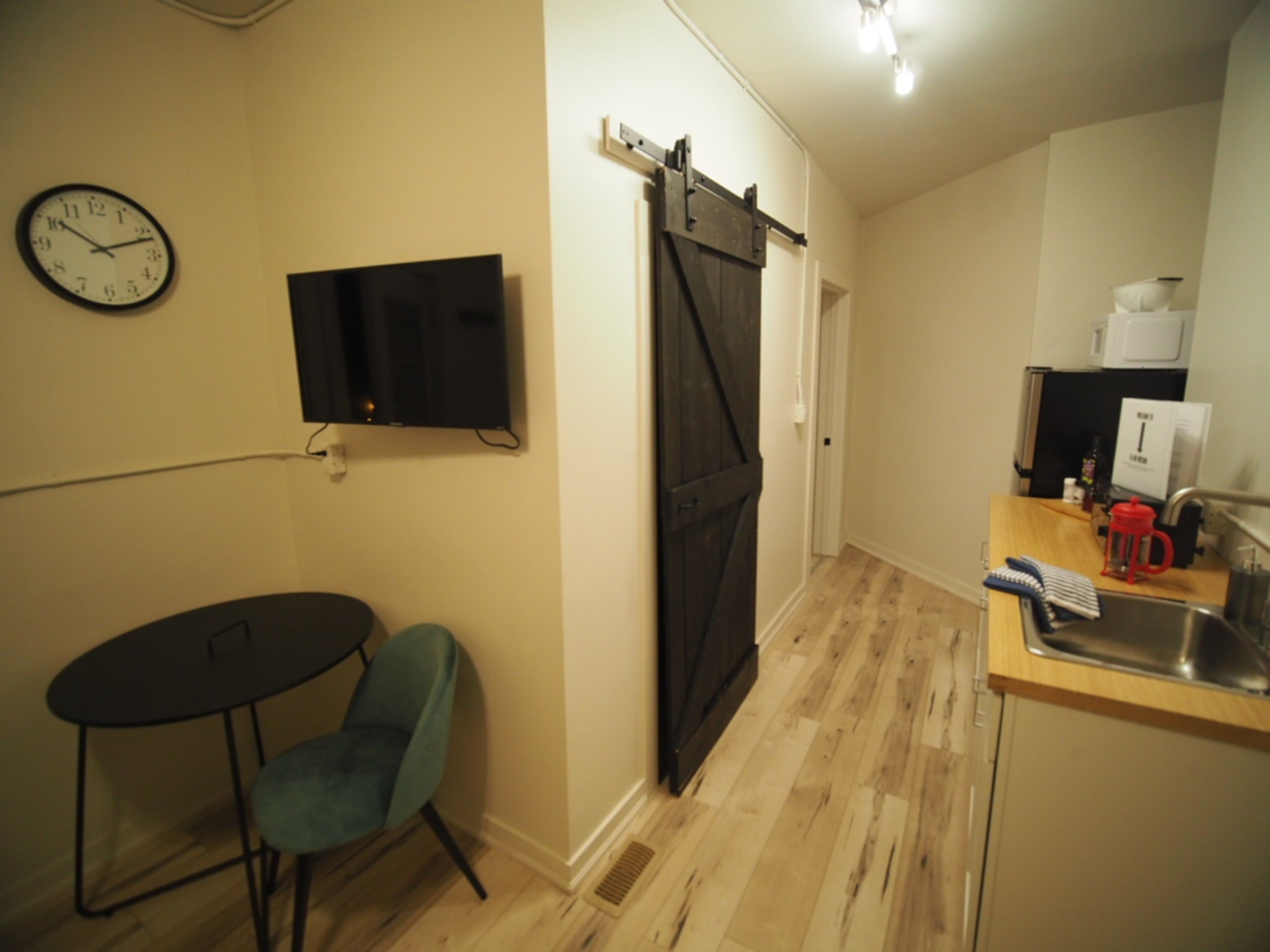 Welcome to unit d-210 wilson street, a newly renovated one-bedroom, one-bathroom unit located in the heart of hamilton's vibrant lansdale neighborhood. This cozy, modern retreat features a private entrance, open-concept living area, and a fully equipped kitchenette with fridge, stove, butcher block countertops, and ample cabinet space. The bedroom offers a peaceful space to unwind, while the updated 3-piece bathroom includes a walk-in glass shower and porcelain vanity. Rent is all-inclusive covering water, gas, and electricity for maximum convenience. Enjoy on-site card-operated laundry with tap-to-pay capability, hi-efficiency central heating and a/c, and easy access to street parking and public transit. Located just five minutes from centre mall, the claremont access, and st. Josephs healthcare, this unit offers both comfort and connectivity. Experience elevated urban living in a thoughtfully designed space.