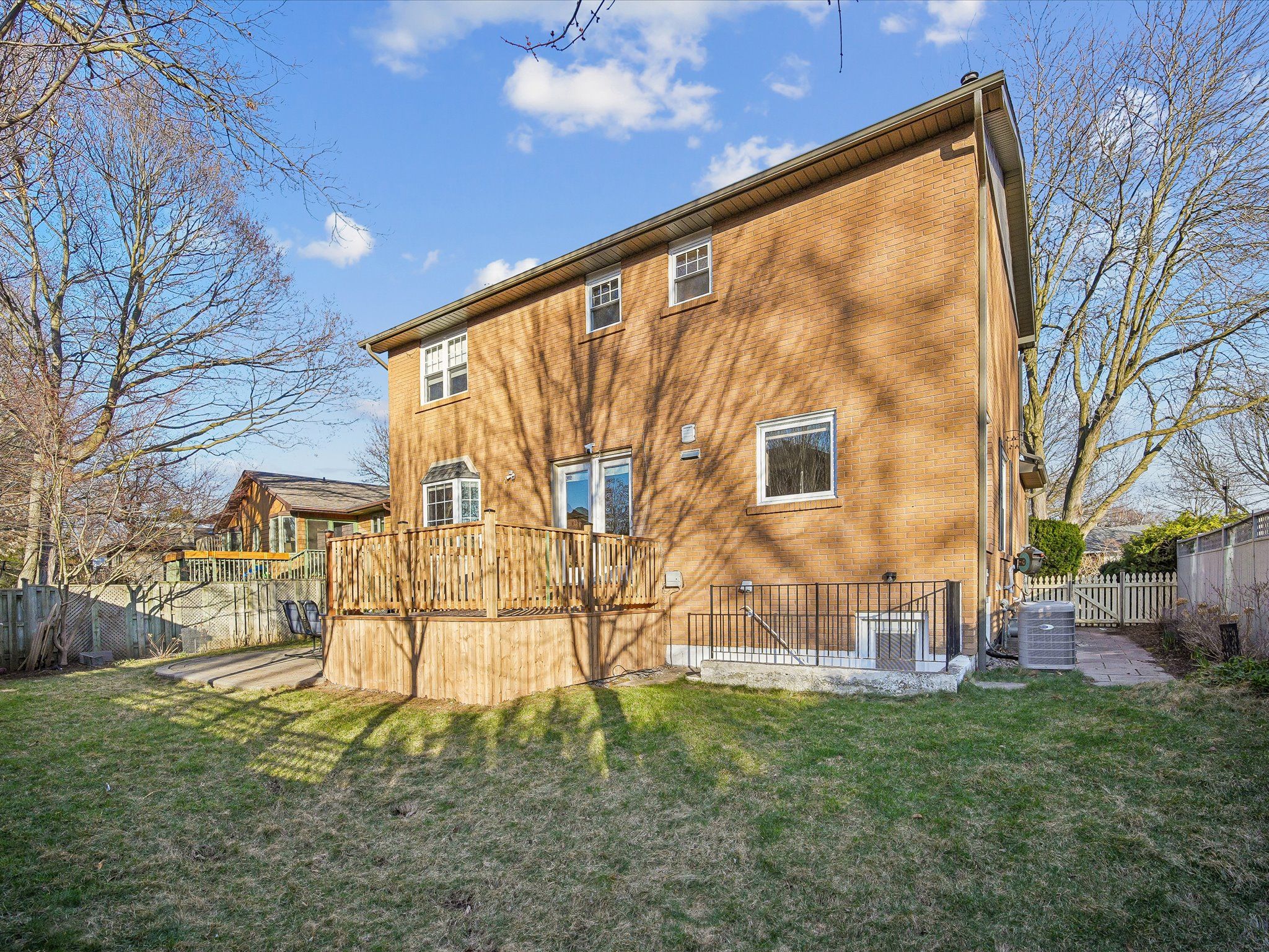 Stylish family living in prestigious south east oakville: welcome to this beautifully updated 4+1 bedroom family home nestled in one of south east oakville's most sought-after neighbourhoods. Ideally located within walking distance to top-ranked oakville trafalgar high school and maple grove public school, this home offers the perfect blend of lifestyle, convenience, and long-term value. Thoughtfully upgraded throughout, the home features a modern renovated kitchen with stainless steel appliances, complemented by hardwood flooring across the main and second levels and tastefully updated bathrooms. The layout is both functional and inviting-ideal for everyday family living and entertaining. The professionally finished lower level with walk-up separate entrance adds exceptional versatility, offering a spacious recreation room, home gym, 5th guest bedroom, and a 3-piece bathroom-perfect for extended family, guests, or potential in-law suite. Step outside to a newly built deck, creating a private outdoor retreat for relaxing or hosting. Conveniently located just minutes to major highways, the go stations, and shopping amenities, this home delivers both comfort and connectivity. A rare opportunity to own a move-in ready family home in one of oakville's most prestigious and family-friendly communities. Recent upgrades: powder room(2026),back yard deck(2026), hvac humidifier (2025), fridge(2023), acorn stairlifts (custom build in uk, 2023), carrier air conditioner(2018), carrier infinity air purifier system(2018), lawn sprinkler system(2018), driveway(2018),washer(2017), dryer(2017), side deck(2015), stove(2017), furnace(2017), microwave(2017), master ensuite bathroom(2012), full 2nd floor bathroom(2012), side cedar deck with glass panels(2015), soffits, eaves, downspouts replaced (2014).