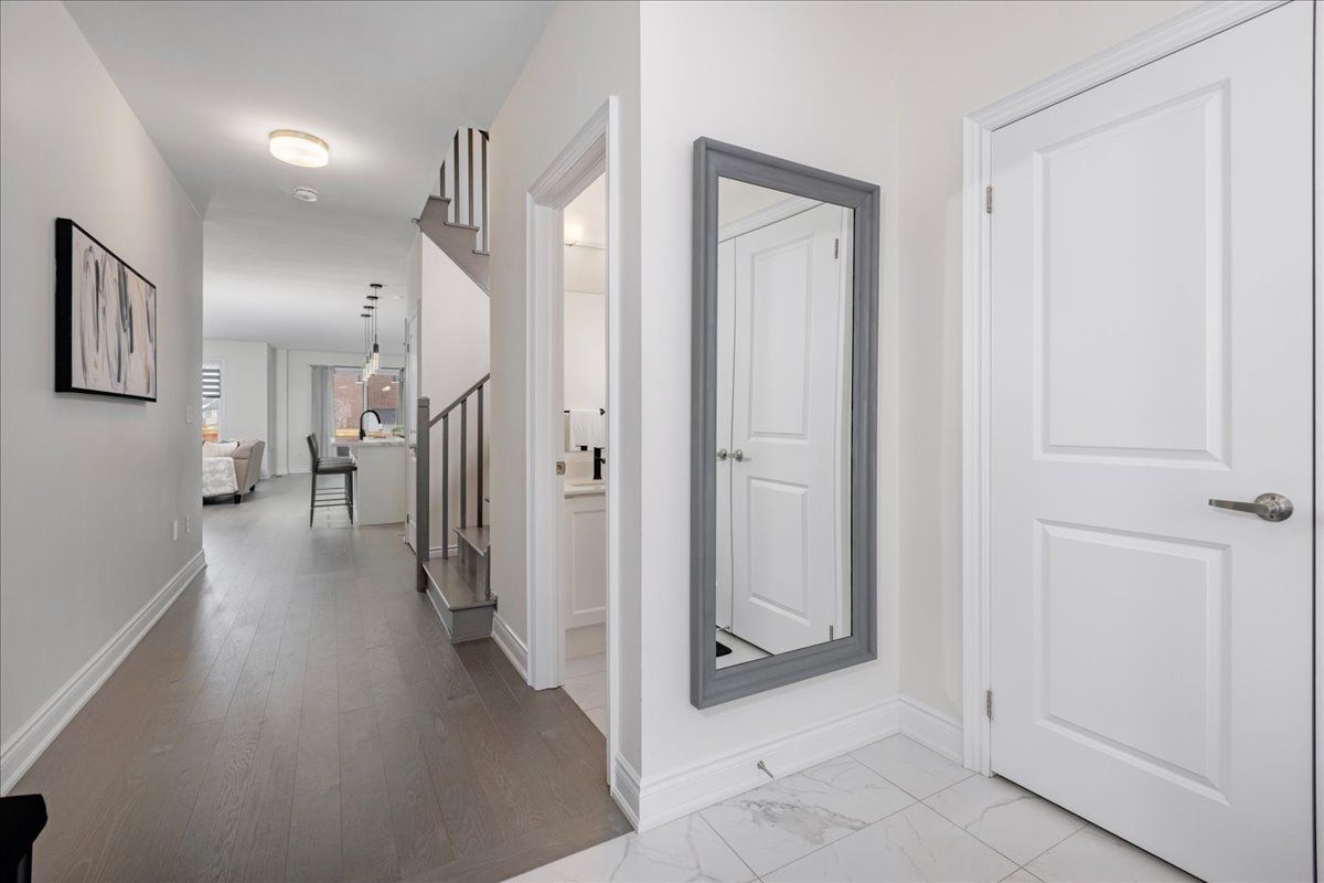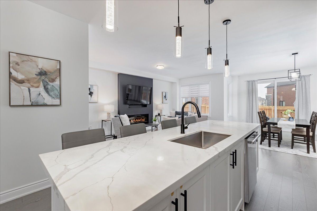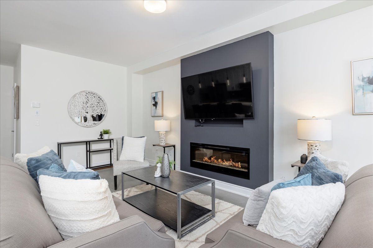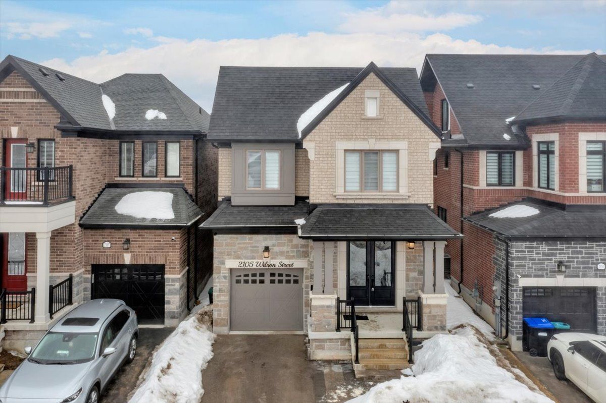 Welcome to this beautifully upgraded valcrest model (2020) in the desirable country homes - alcona by the lake community, just 2 minutes from lake simcoe's main beach with resident beach access and parking. Situated on a 30 x 120 ft west-facing lot, this all-brick home offers 2,201 sq ft of living space plus an unfinished basement with 3-piece bathroom rough-in, perfect for future expansion. Step inside through elegant french doors with upgraded iron inserts to a bright open-concept main floor with 9 ft ceilings and upgraded grey engineered hardwood flooring throughout the main level and second-floor hallway. The modern kitchen features upgraded white cabinetry, quartz countertops, a 10 ft island with oversized single sink, new pantry (2025), and four pendant lights, along with premium stainless steel appliances. The living room showcases a stylish electric fireplace with floor-to-ceiling entertainment centre for built-in tv. Upstairs offers 4 spacious bedrooms with 8 ft ceilings, including a large primary suite with walk-in closet plus additional closet and a luxurious ensuite featuring quartz counters, double sinks, walk-in shower, and stand-alone tub. Additional bathrooms include marble countertops. The home also features a main floor laundry room with direct access to the garage and matching hardwood staircase with chandelier support rough-in. Recent upgrades include fully fenced backyard (2024), widened interlock driveway (2024), automatic retractable zebra blinds (2022), and upgraded tile in the entryway, laundry room, and bathrooms. Additional highlights: tankless water heater, 200a electrical service, sump pump, a/c, smart home optional (not activated) features (leak detection, climate control, smart outdoor lighting), wireless security doorbell, and exterior cameras. Located close to beaches, parks, schools, shopping, and commuter routes, this upgraded home offers modern living in one of innisfil's most sought-after lakeside communities.