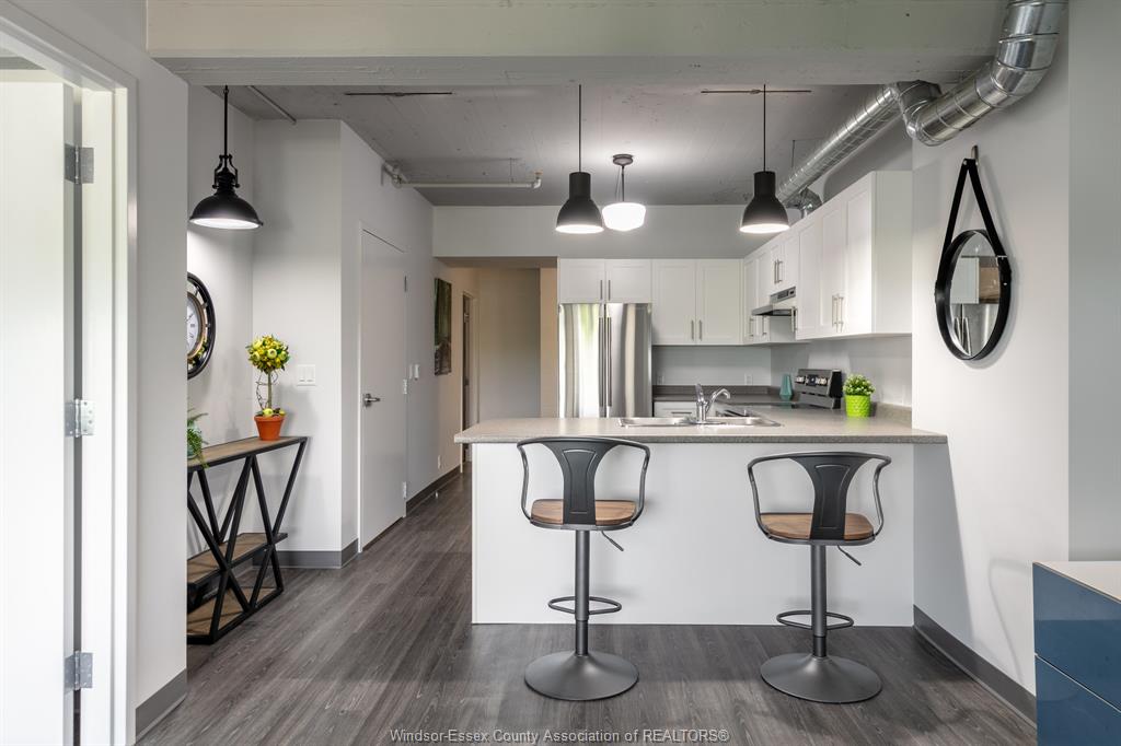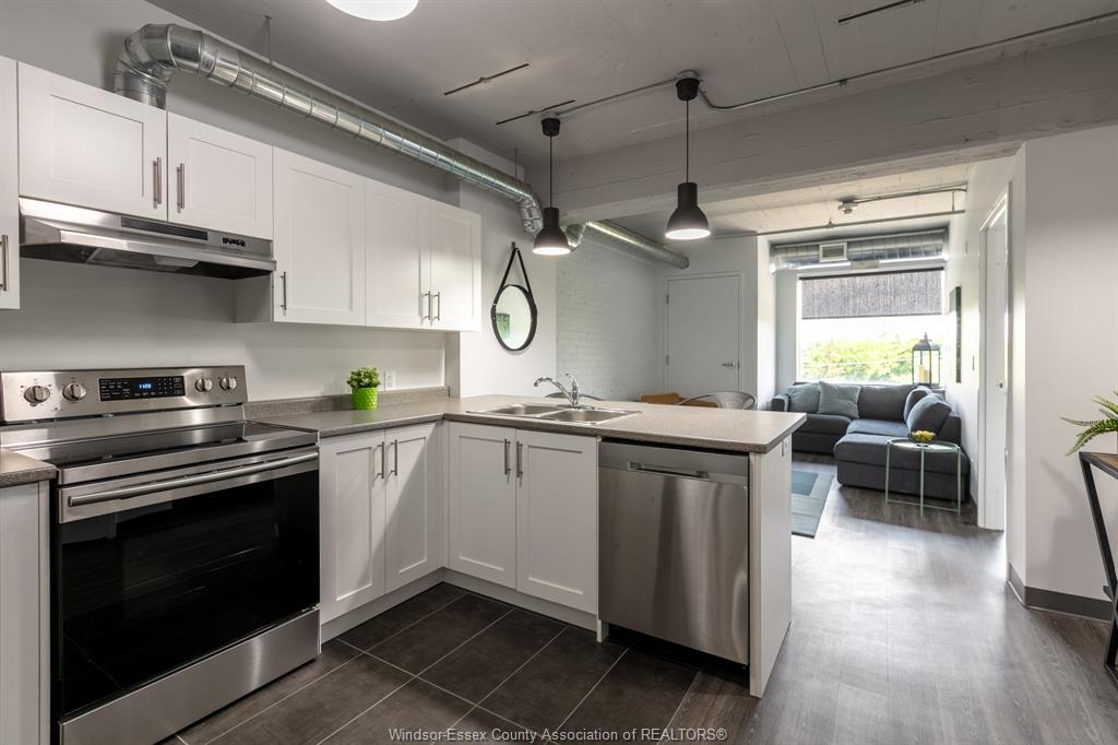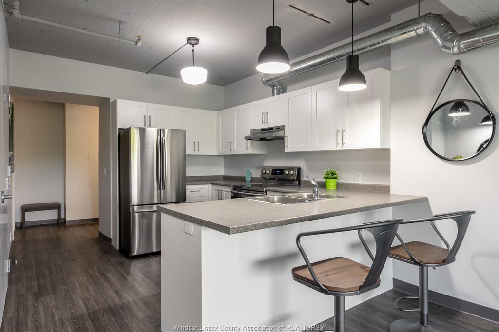 Note: rental amount includes gas heat, water and parking for multiple cars! Sizable nearly 950 sq ft loft on the 4th floor with a great north view above the treetops. Huge in suite laundry room and king-sized primary bedroom with walk-in closet! Welcome to the lofts at the square. Gorgeous & modern 7 yr old loft apartments. Beautiful modern white kitchen with breakfast bar. Every apt has its own forced air gas heating & c/air unit! Comes with 5 appliances including dishwasher. Secure building. Bright and modern hallways. Shopper’s drug mart, bank, bingo and restaurants all on site. Highly walkable walkerville area. City transit steps from door. Willistead park, local farmer vendors and a fantastic trendy restaurant district all within a couple km. Close proximity to 2 hospitals and the u. S. Tunnel crossing. Tenant pays electricity. No smoking. Note: photos are of a staged model unit. Identical finishes/layout.