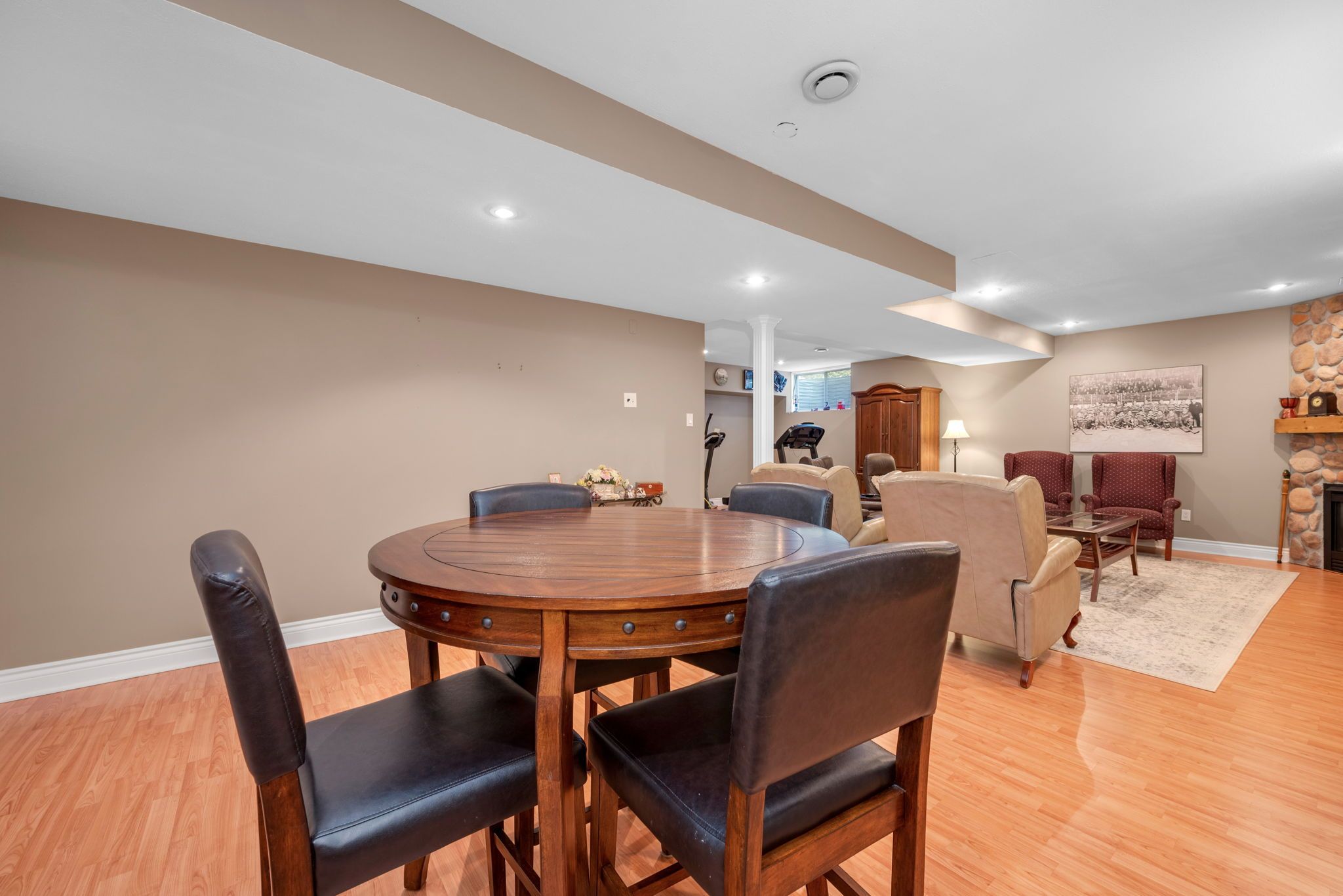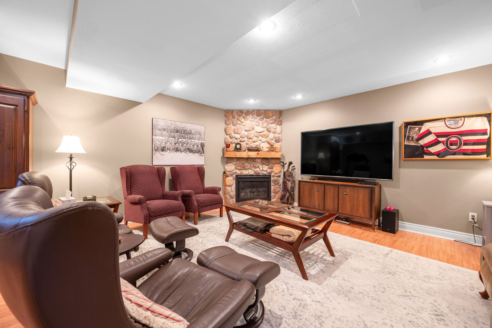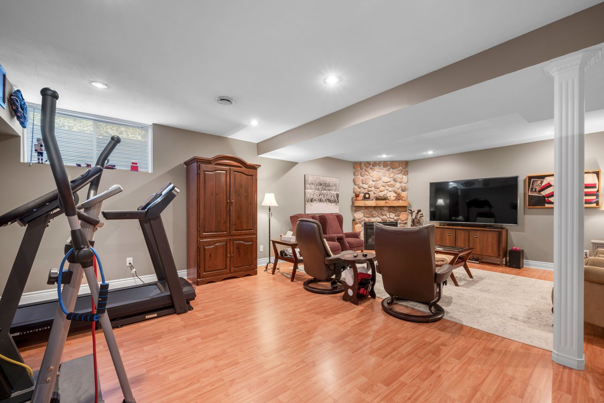 • Finished basement with a cozy gas fireplace and ample storage.