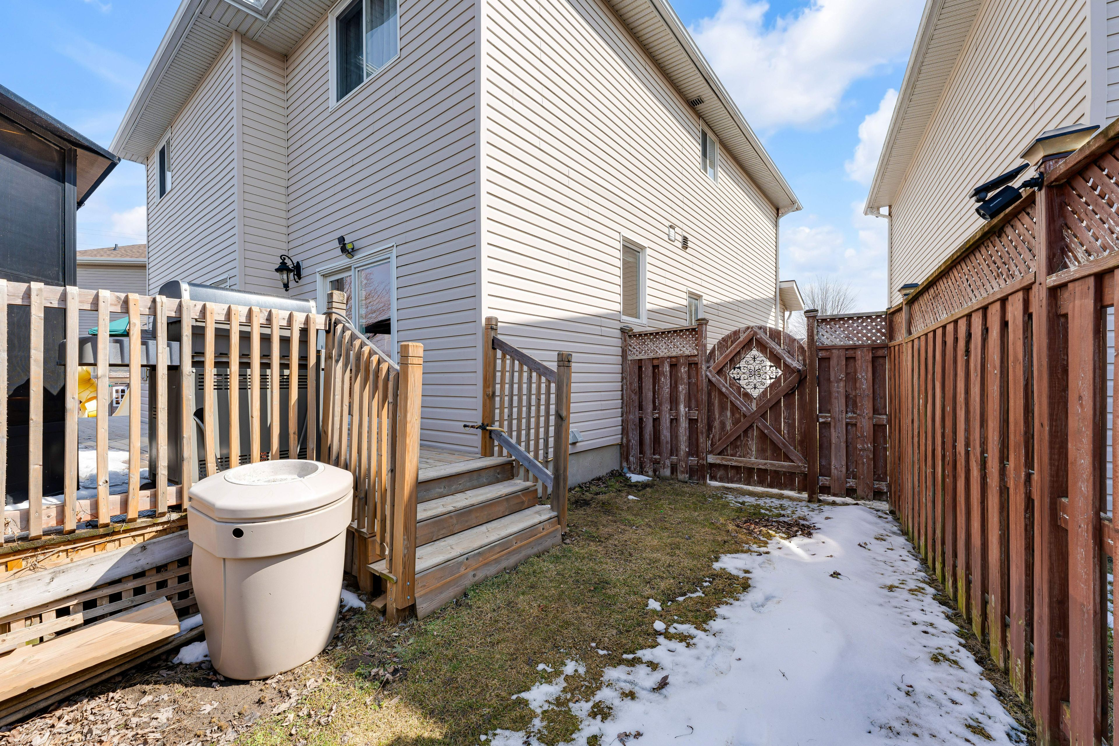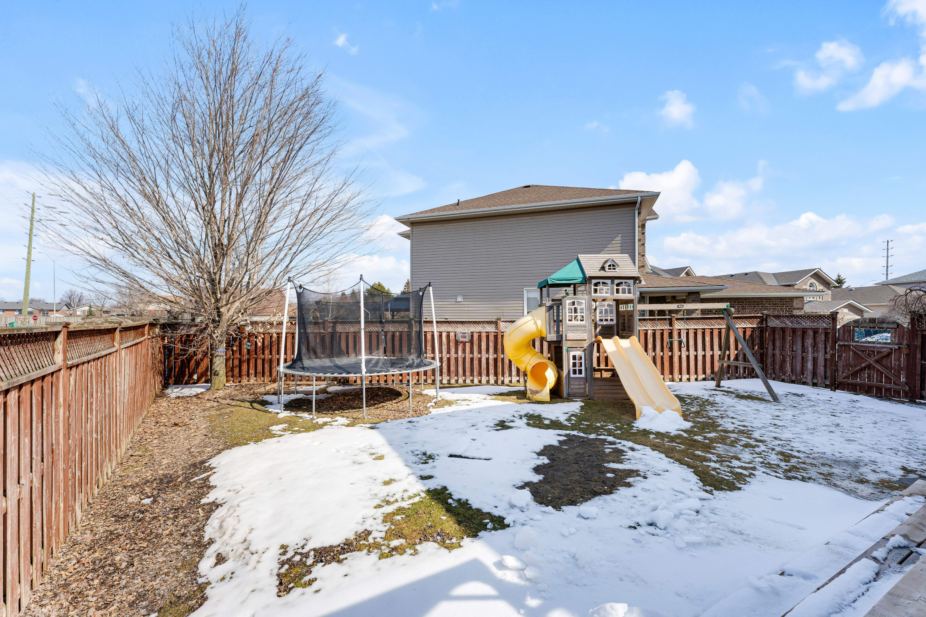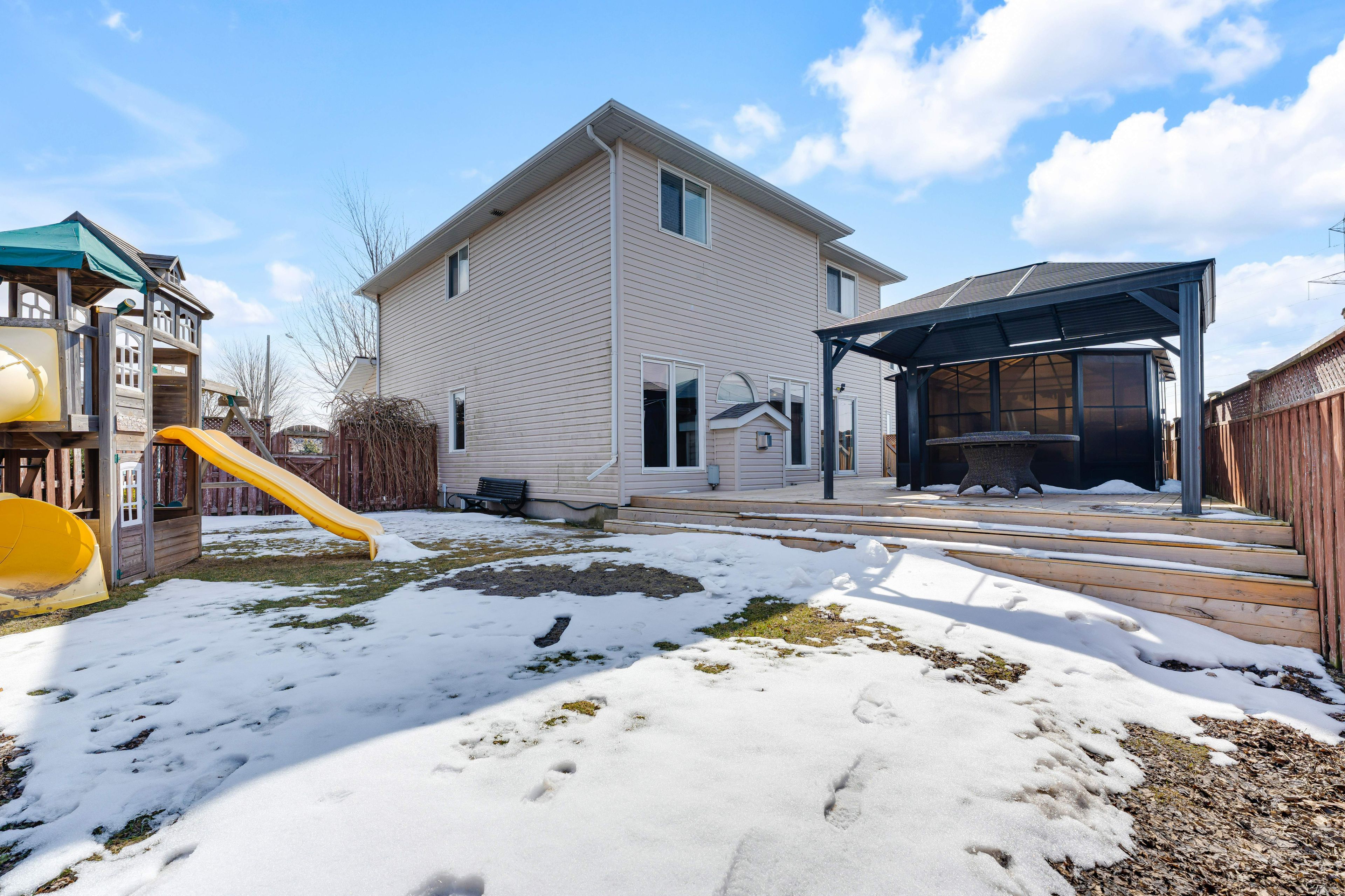 • Large fully fenced backyard with a deck and ample green space for activities.
