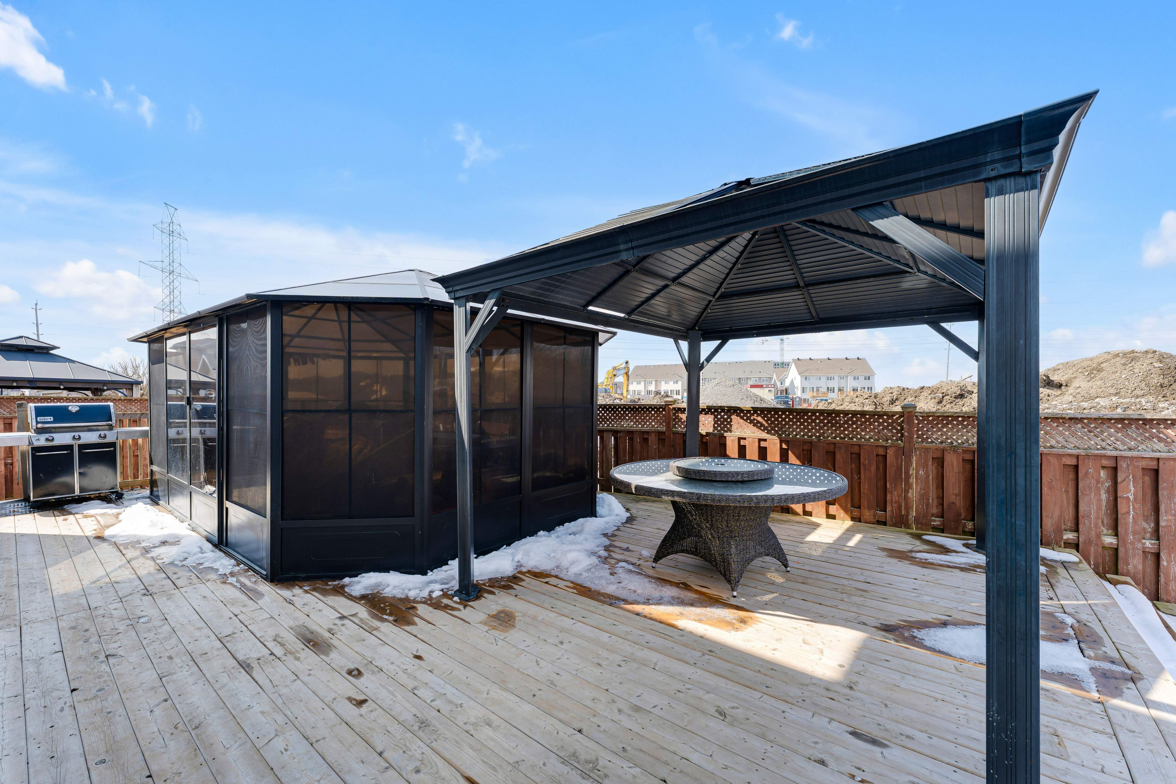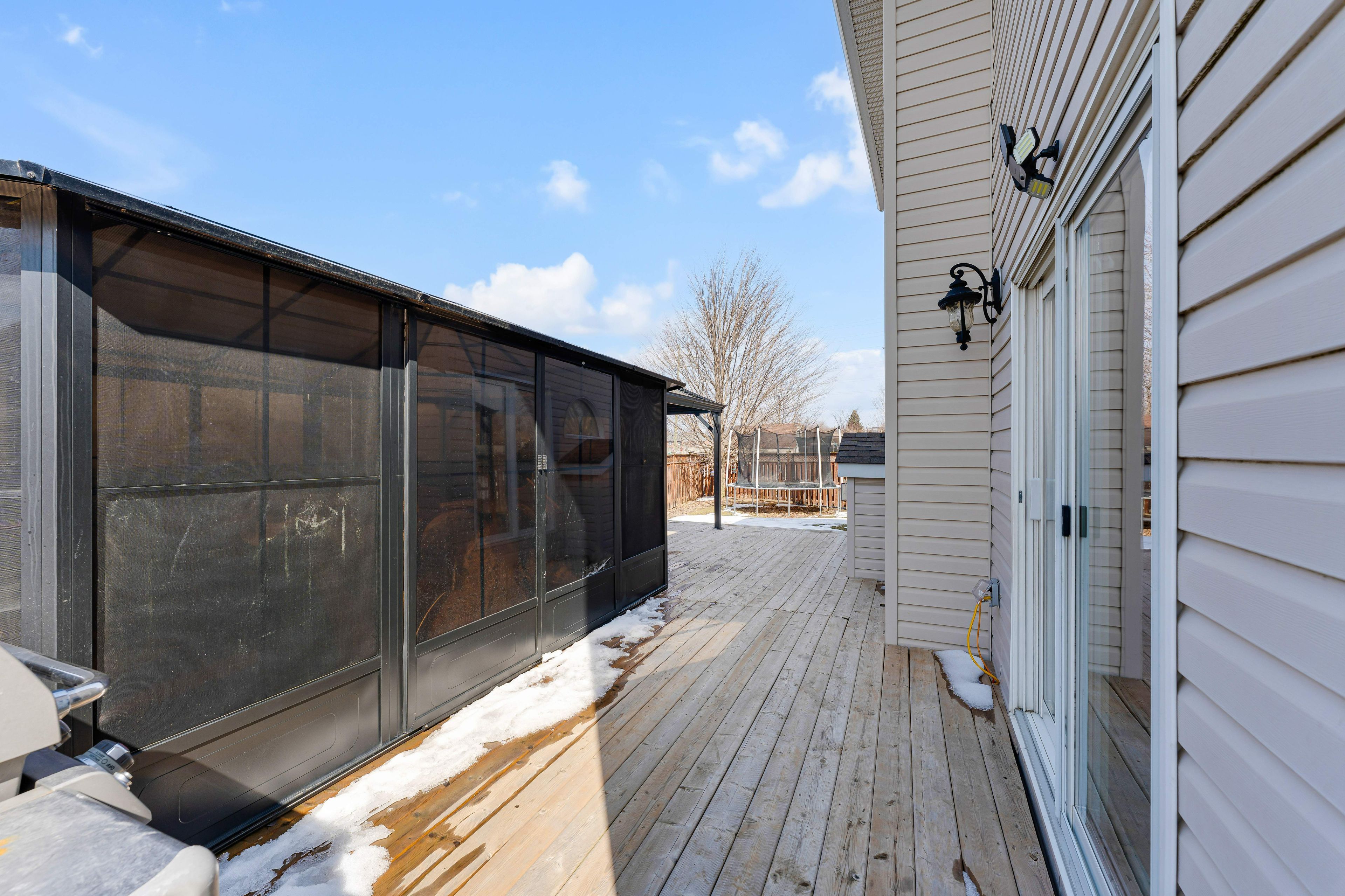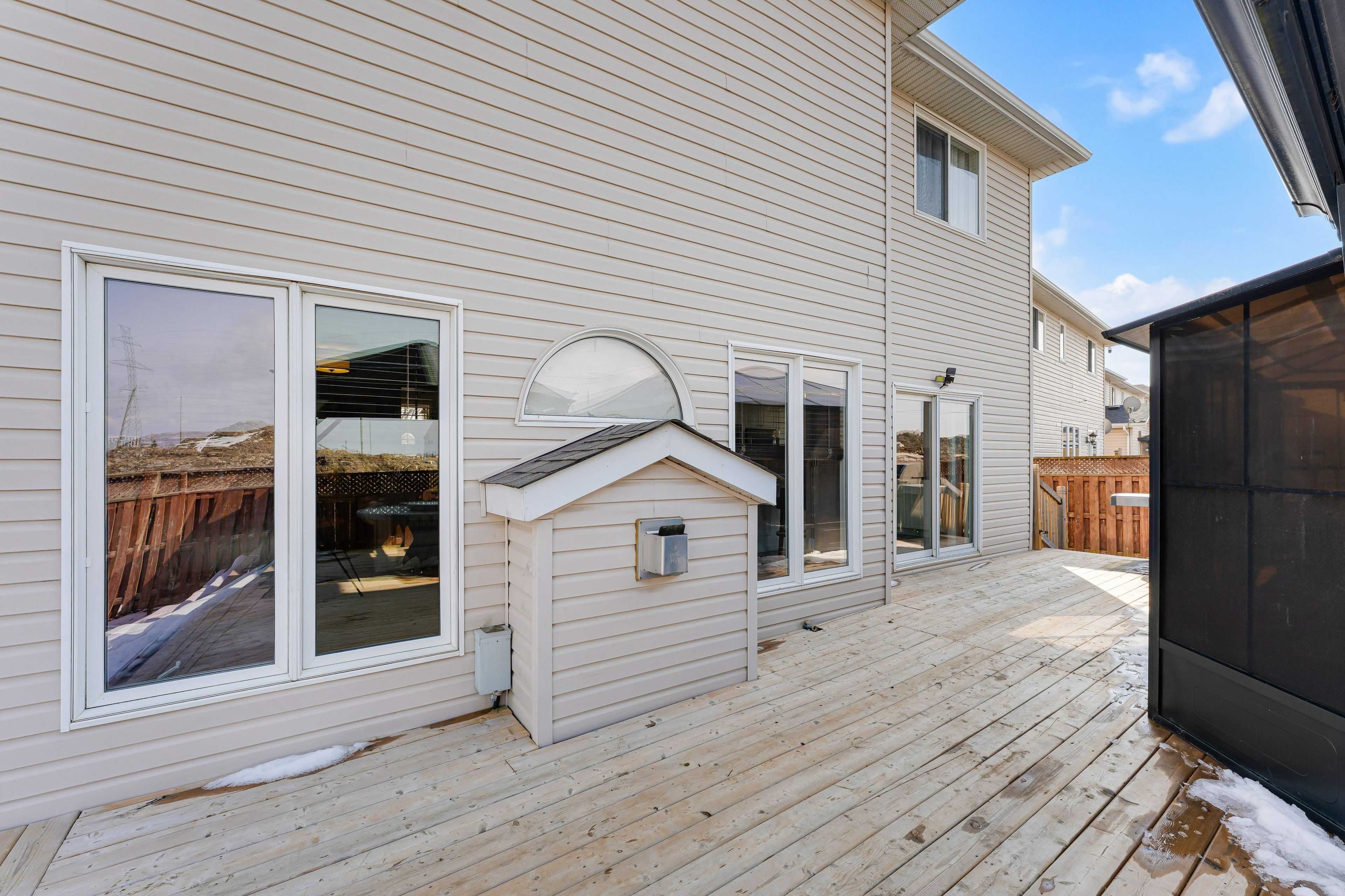 • Large fully fenced backyard with a deck and ample green space for activities.