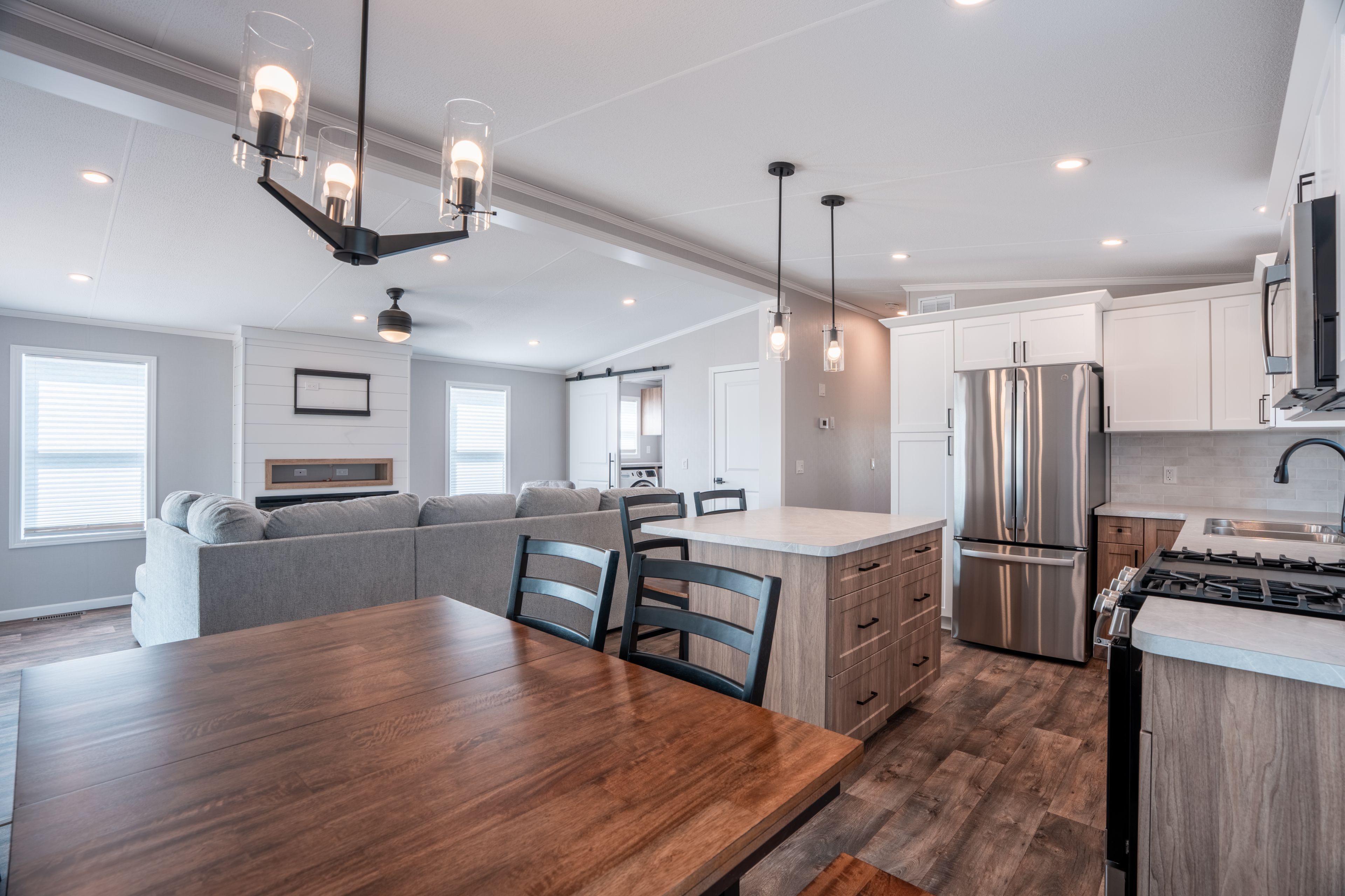 Discover the perfect blend of style, comfort and simplicity in this beautifully crafted canadian-built northlander aspire, nestled in the village - a peaceful, well-maintained community just east of listowel. This 2-bedroom, 1. 5 bathroom newly constructed modular home offers thoughtful features throughout. Enjoy a morning beverage or unwind in the evening in a serene, natural setting on the charming 10' x 10' covered front porch. Inside, a bright and open-concept layout connects the kitchen, dining, and living areas, enhanced by large windows, patio doors, and modern lighting. The kitchen is both functional and stylish, featuring elegant, two-tone white/urban cabinetry, stainless steel ge appliances, a ceramic tile backsplash, and an island with seating ideal for casual meals or entertaining. The spacious living area features a built-in fireplace, creating a warm and inviting space during the winter months. Adjacent to the main living area is the 2 piece bathroom and a laundry room with storage for everyday convenience while a second bedroom ensures there is space for visitors or an alternate work area. The rear 8'x 10' covered porch provides the perfect setting for relaxation and casual enjoyment with neighbours and friends. Paved streets and walking trails along the perimeter of the community promote a healthy lifestyle and residents of the village also benefit from a welcoming clubhouse offering social events and a sense of connection. With shopping, curling, golf, and other amenities just minutes away in listowel, this home offers an easy going lifestyle in a quiet and friendly setting. Note: land is leased ($575/month). Modular home is owned-a mortgage specialist can be available, if desired. Grass to be planted by the owners as construction and set up are completed in this new area.