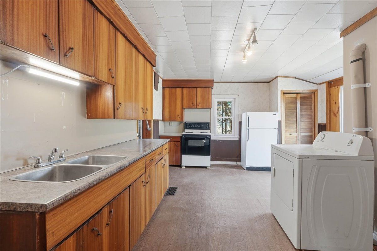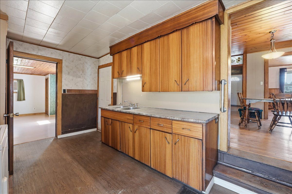 Welcome to this charming 1. 5 storey home offering flexibility for a variety of living arrangements, all within walking distance to town amenities. The upper level features 2 comfortable bedrooms and a full bathroom, while the main floor includes the primary kitchen and dining along with a separate kitchenette, additional bedroom, and bathroom, an ideal setup for in-laws, guests, or extended family. Located within walking distance to the post office, grocery store, and everyday amenities, this home offers both versatility and small-town convenience.