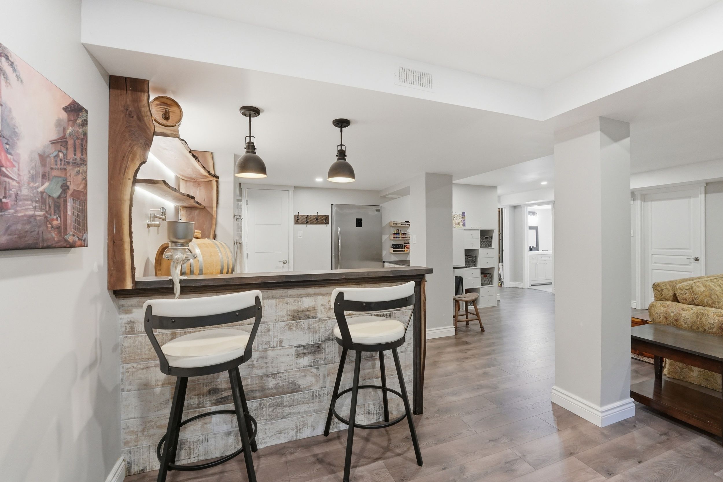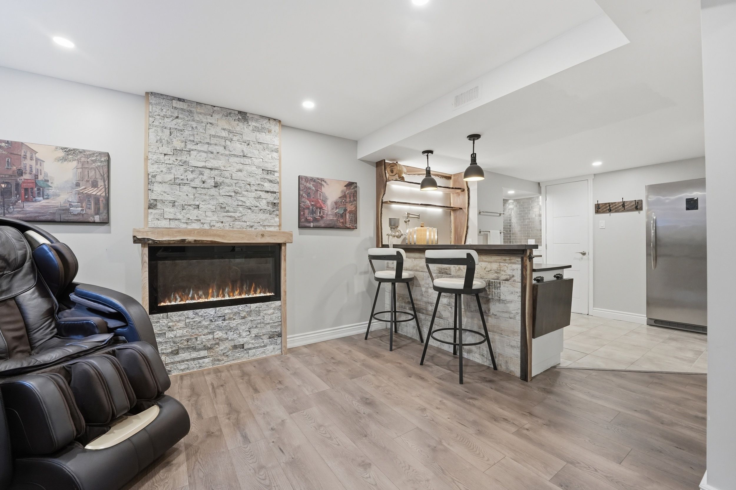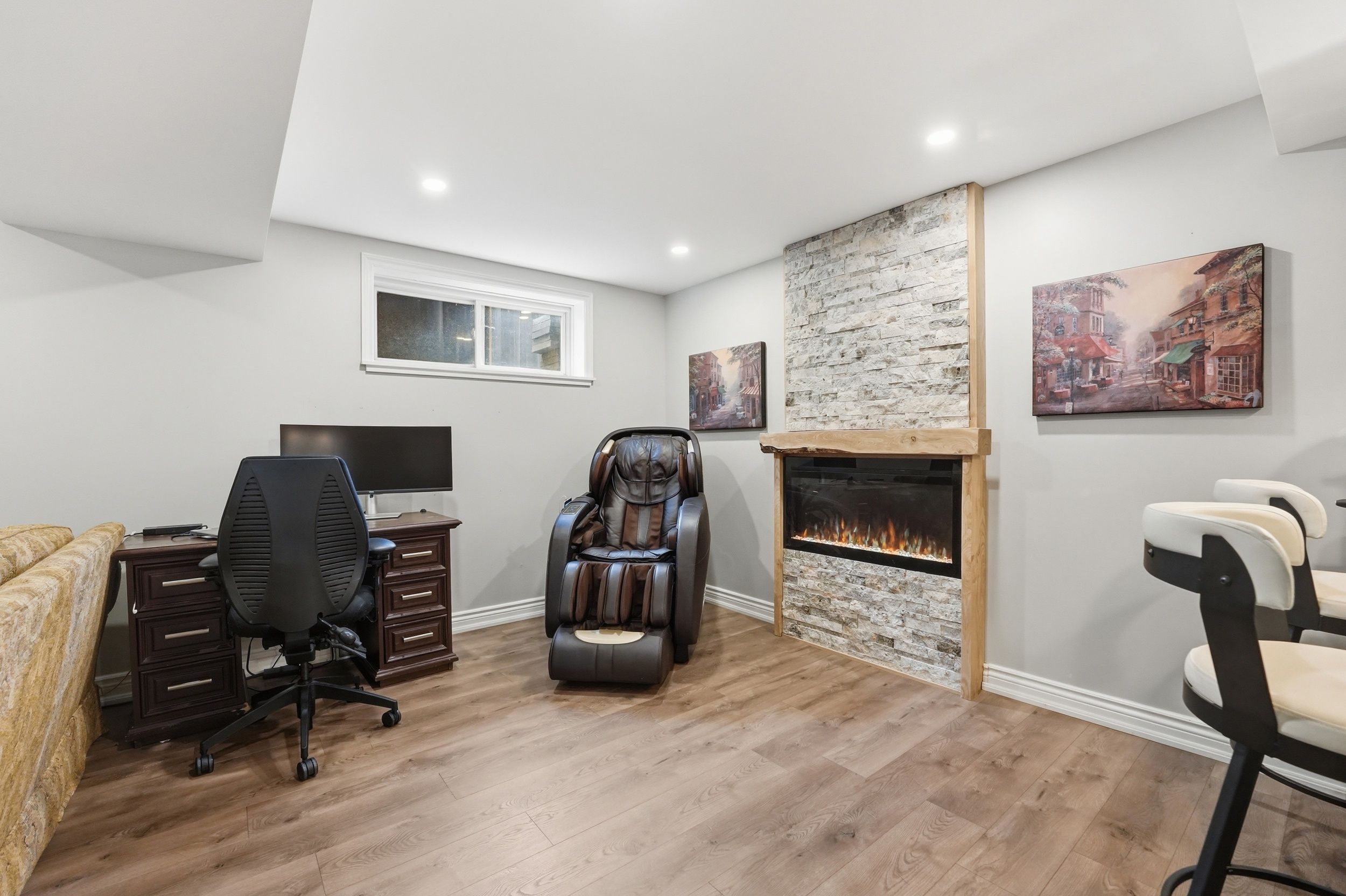 • Fully finished basement with versatile spaces including a great room and exercise room.
