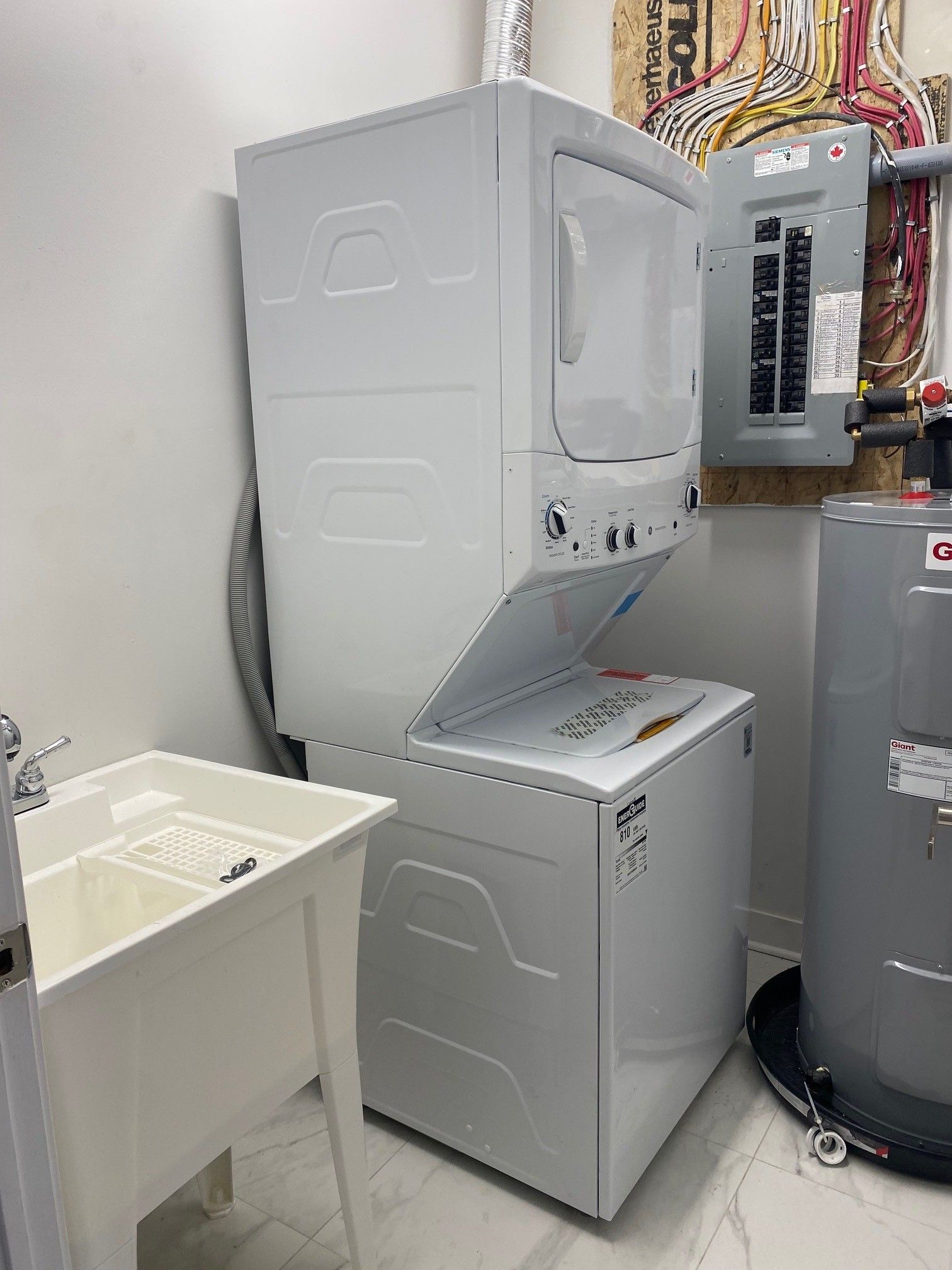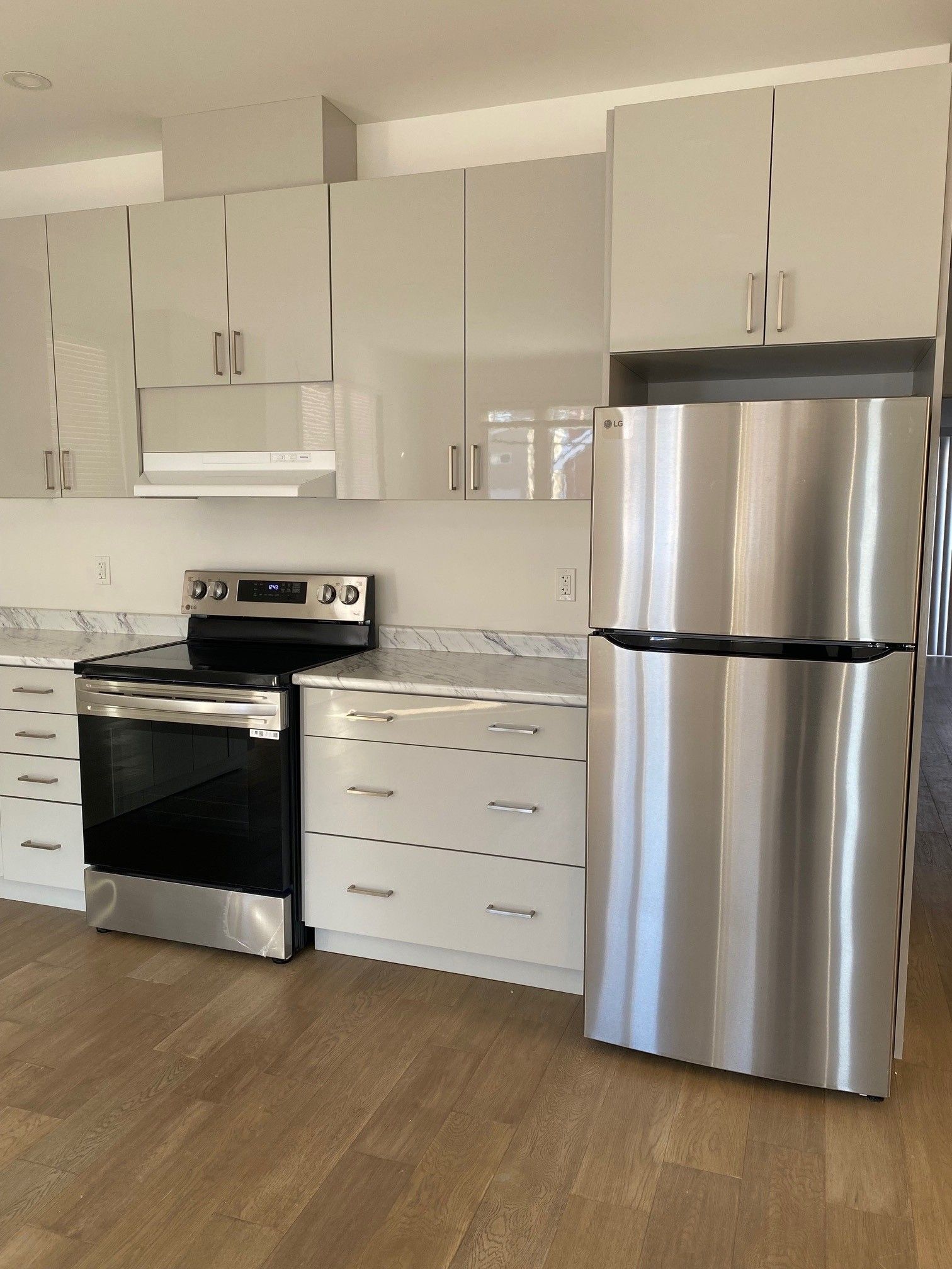 Stunning brand-new 2 bedroom lease - bright, modern & centrally located! Be the first to call this brand-new, carpet-free unit home! Featuring a stylish open-concept floor plan, this 2-bedroom, 2-bath gem is filled with natural light thanks to its abundance of windows. The spacious primary bedroom offers the convenience of a private ensuite, while the second bedroom is perfect for guests, a home office, or a cozy retreat. You'll love the modern finishes throughout, along with the included fridge, stove, washer, and dryer-everything you need for easy, comfortable living. Located in a fantastic central location, you're close to everything-shopping, dining, transit, and everyday essentials. A beautiful home in a prime spot-this one won't last long!