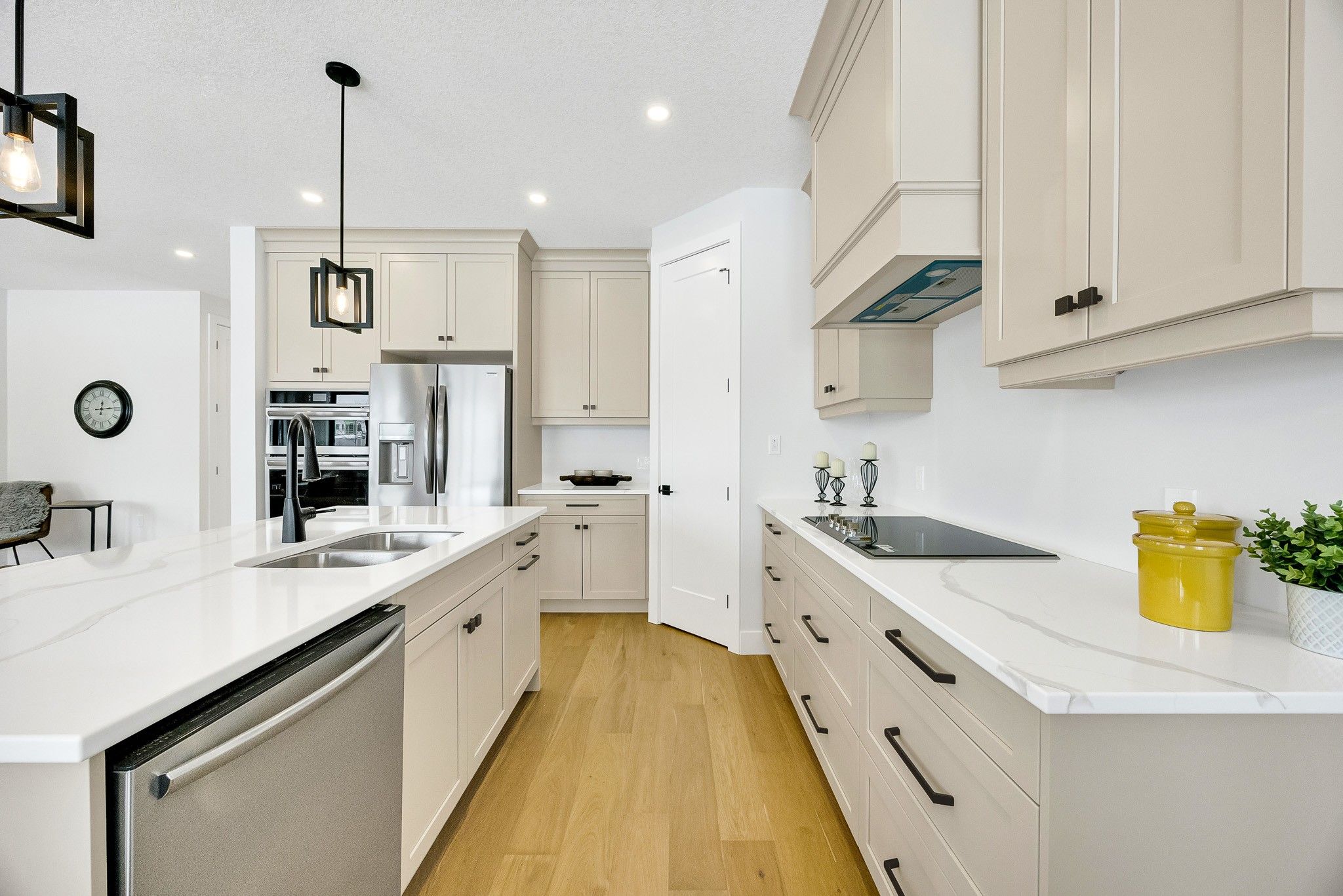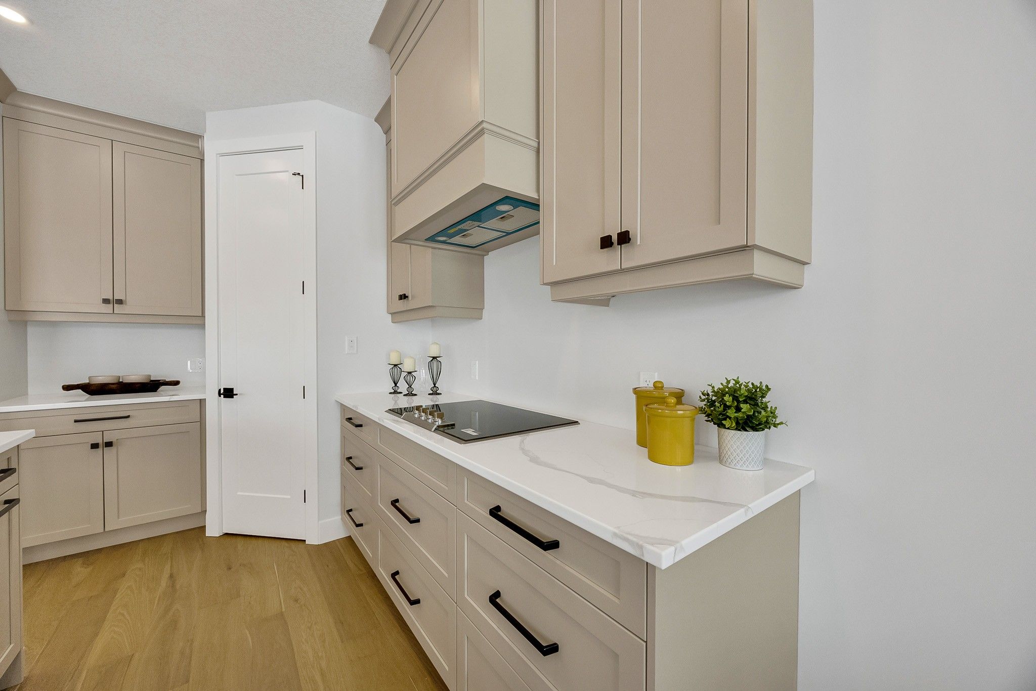• Stylish kitchen with quartz countertops and walk-in pantry.