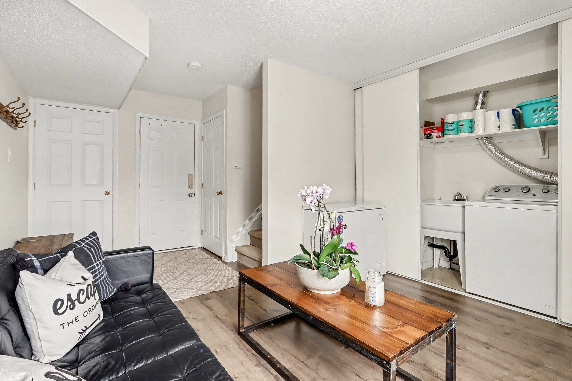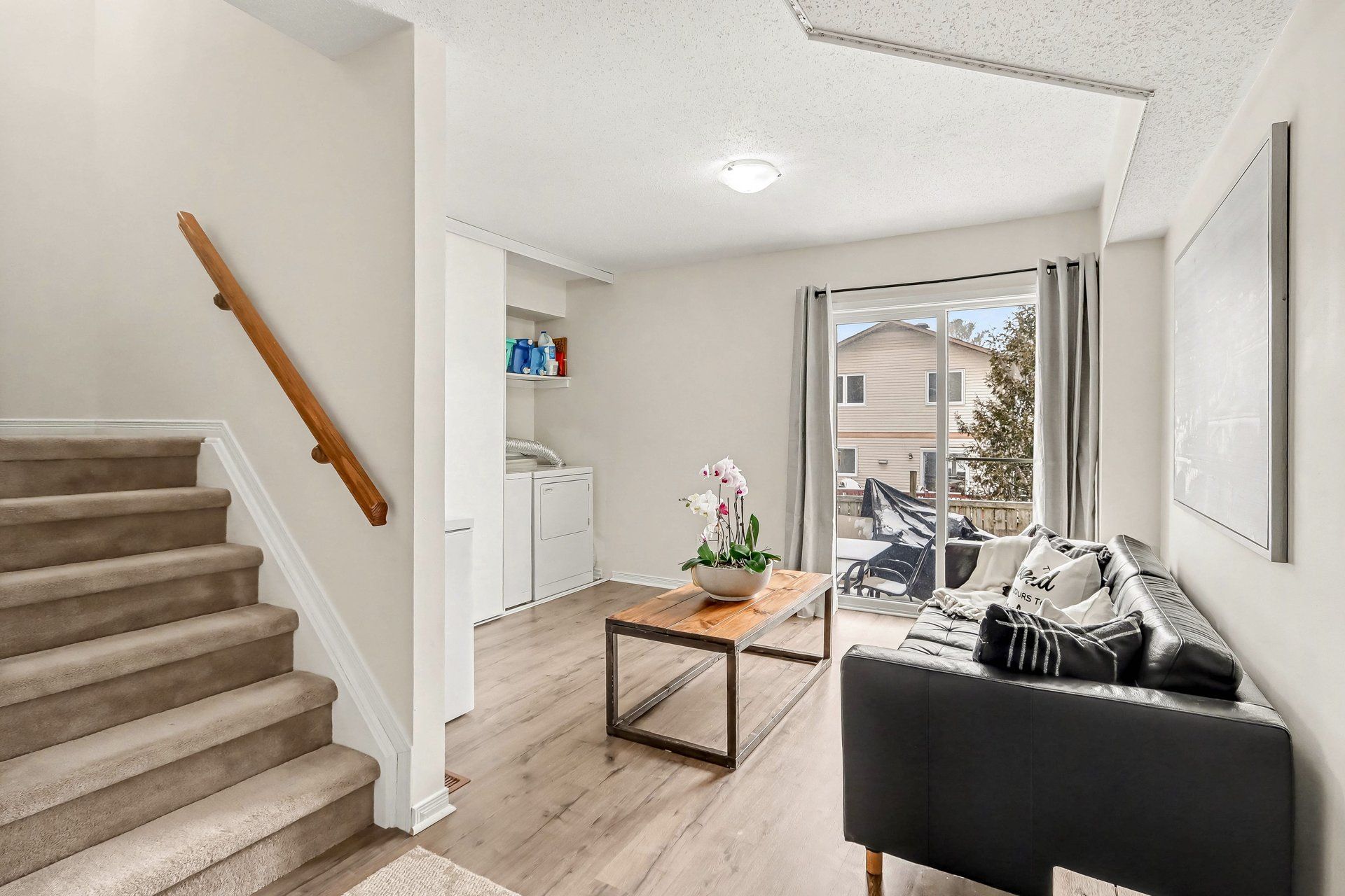 • Versatile main level space great for home office or gym and includes laundry.