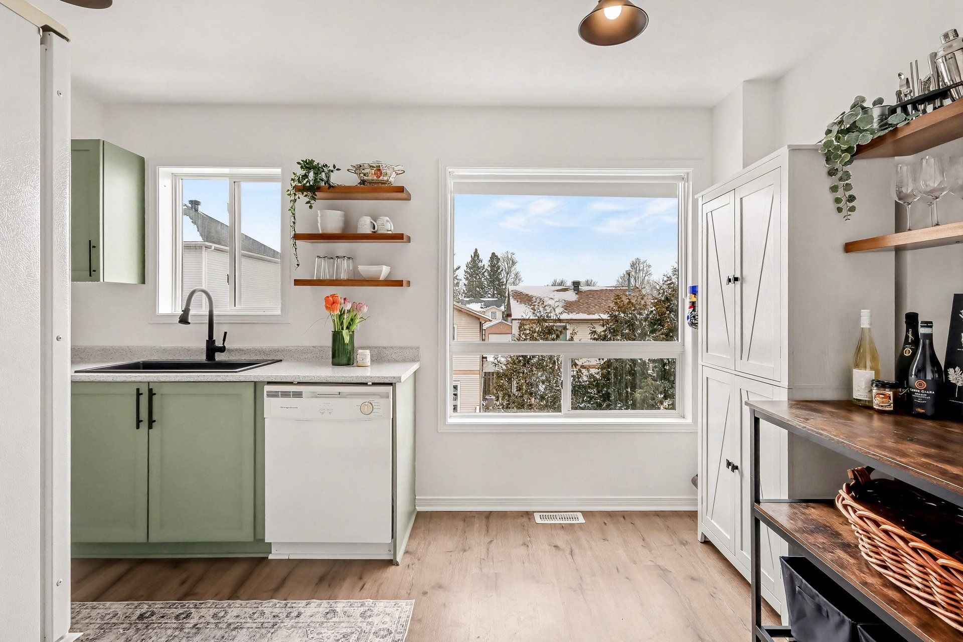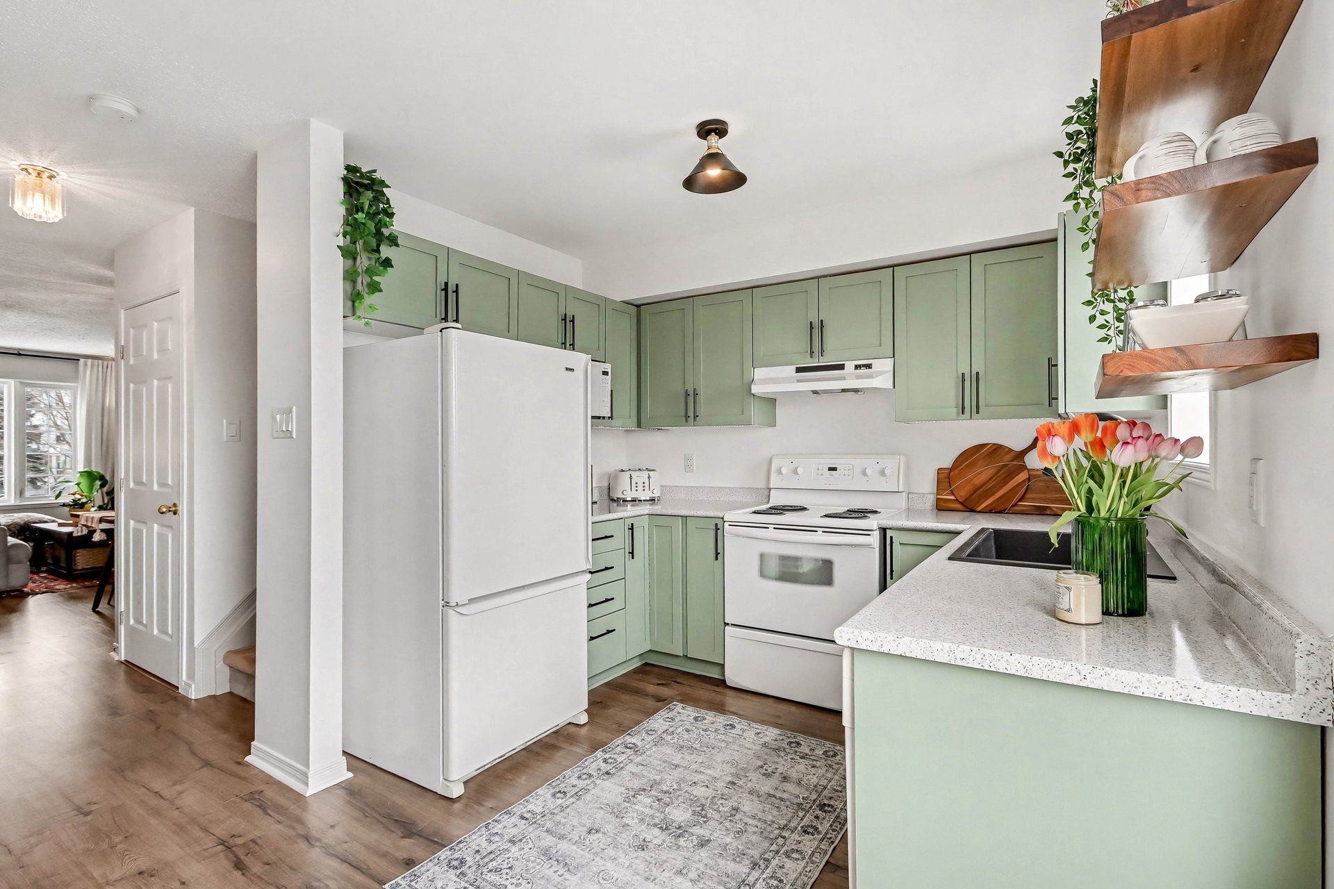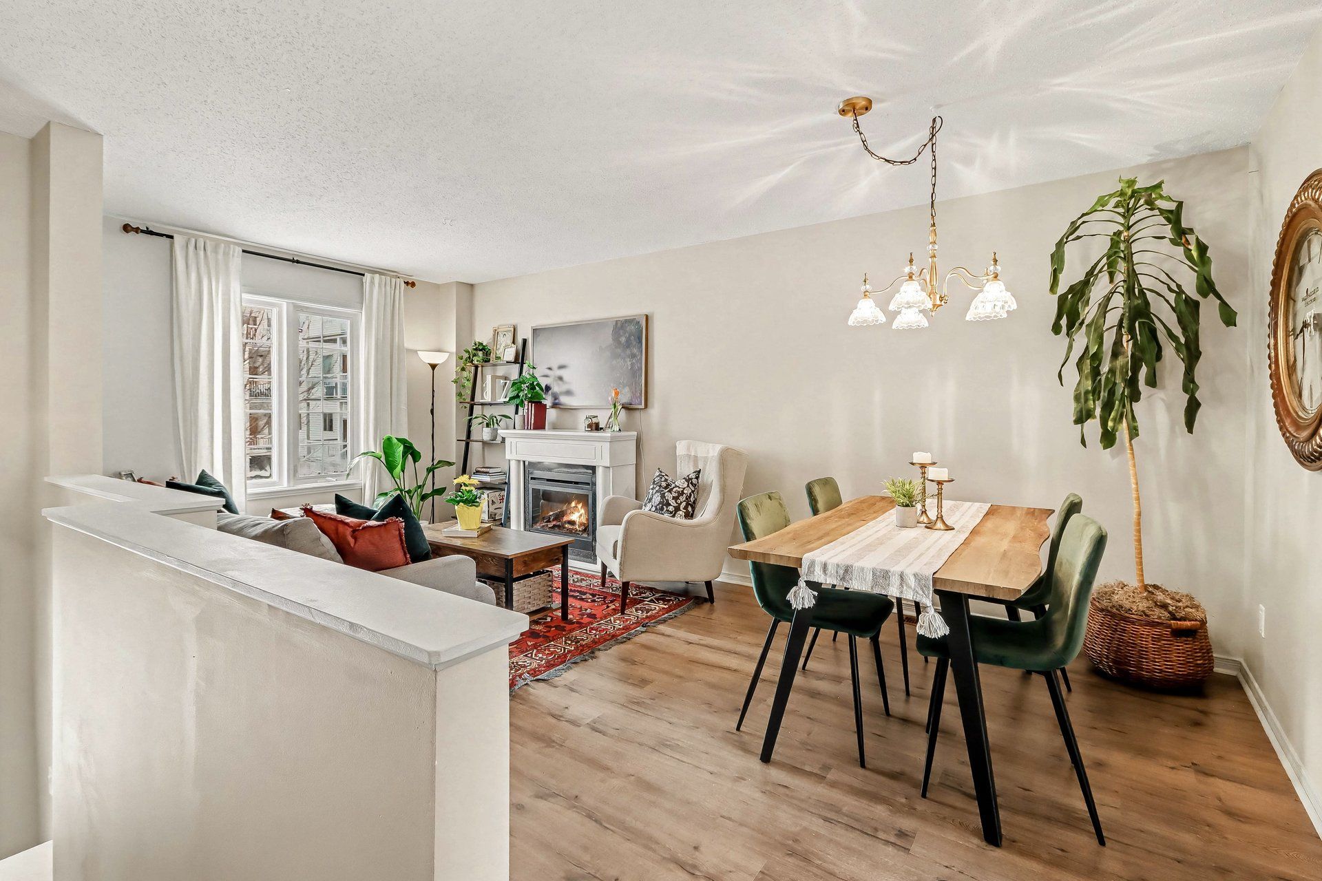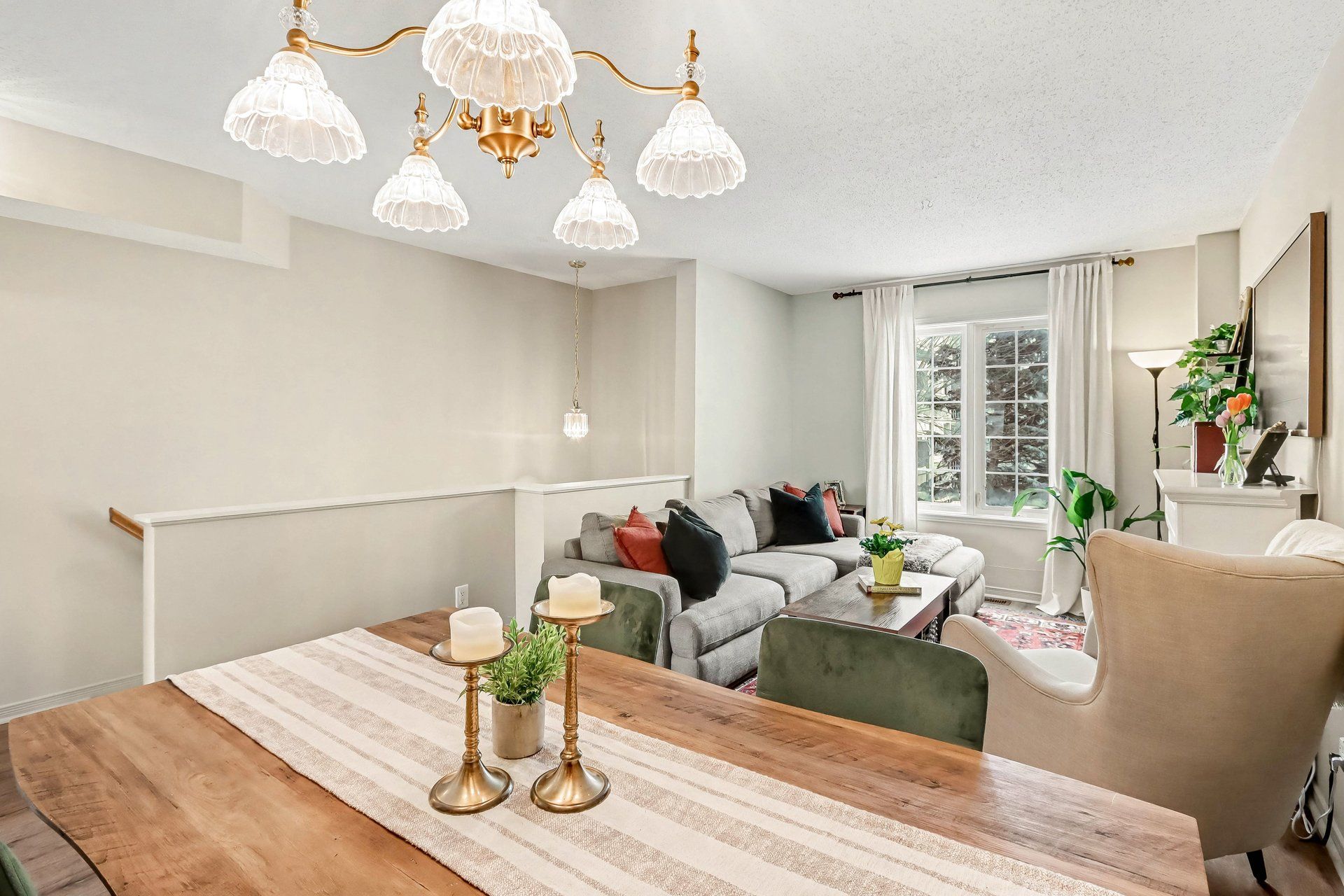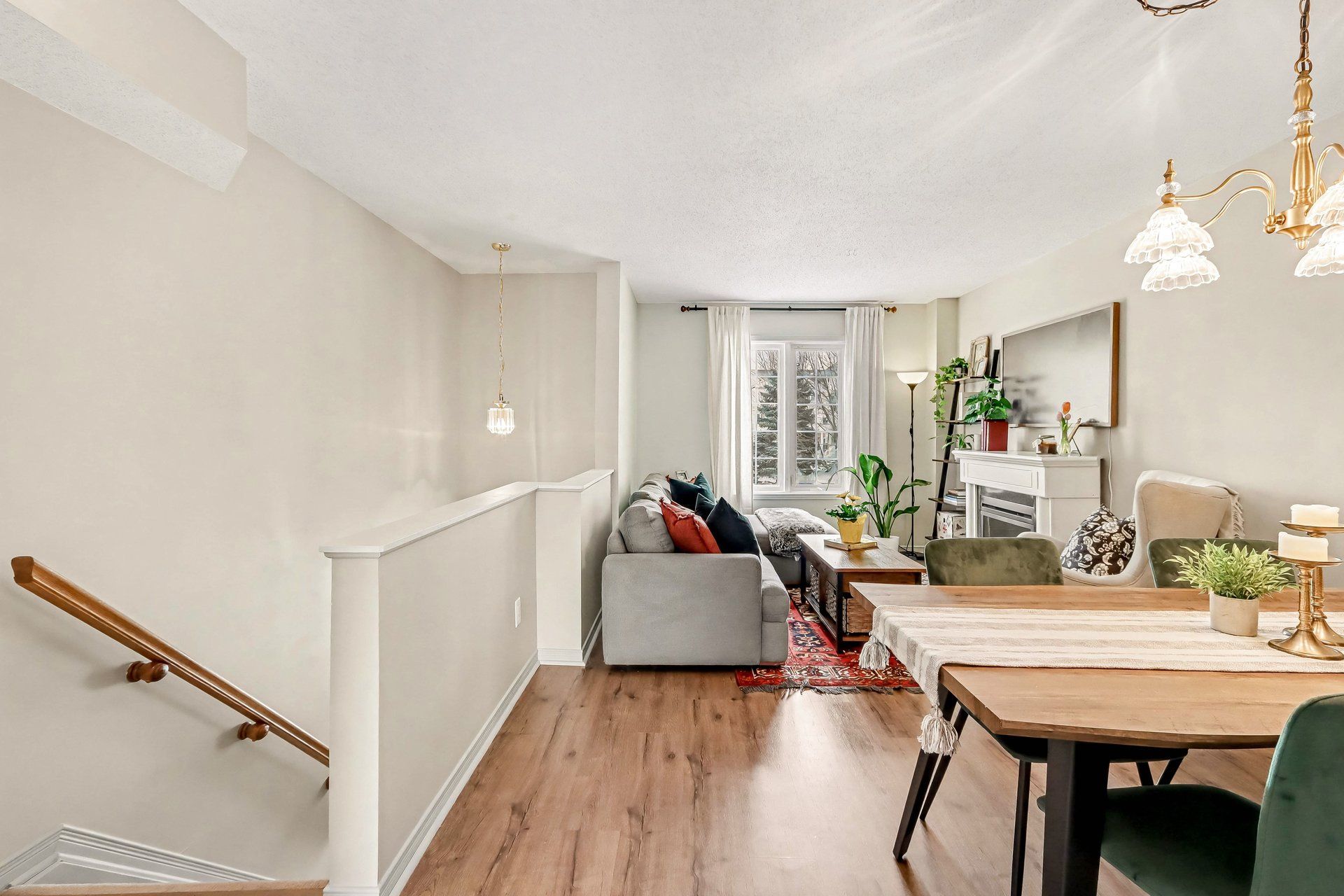 • Bright open concept living and dining area overlooking a greenspace.