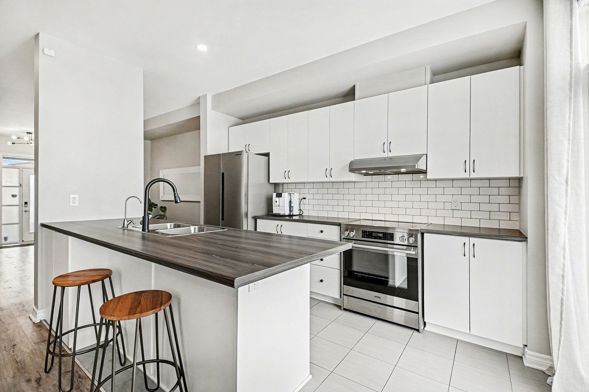 Welcome to this beautifully maintained townhome in the heart of orléans, offering an ideal blend of comfort, style, and everyday convenience. Perfectly situated in a highly desirable neighbourhood close to top-rated schools, parks, public transit, and all essential amenities, this home truly checks all the boxes. Step inside to a bright, open-concept main level featuring a spacious living and dining area, ideal for both entertaining and relaxing. Large windows fill the space with natural light, enhanced by custom blinds in the living room for added style and privacy. The modern kitchen is a standout, complete with a central island, ample cabinetry, and patio doors leading to the fully fenced, fully interlocked backyard-a low-maintenance outdoor space perfect for summer bbqs, morning coffee, or evening gatherings. A convenient main-floor powder room and inside access to the garage add to the home's everyday functionality. The second level offers three generously sized bedrooms and two full bathrooms, including a spacious primary retreat with its own ensuite. Custom blinds in all three upstairs bedrooms provide a polished finish while enhancing comfort and privacy. The fully finished lower level adds valuable living space, ideal for a rec room, home office, or gym. Meticulously cared for and move-in ready, this exceptional townhome delivers comfort, versatility, and an unbeatable location in one of orléans' most sought-after communities. A fantastic opportunity not to be missed.