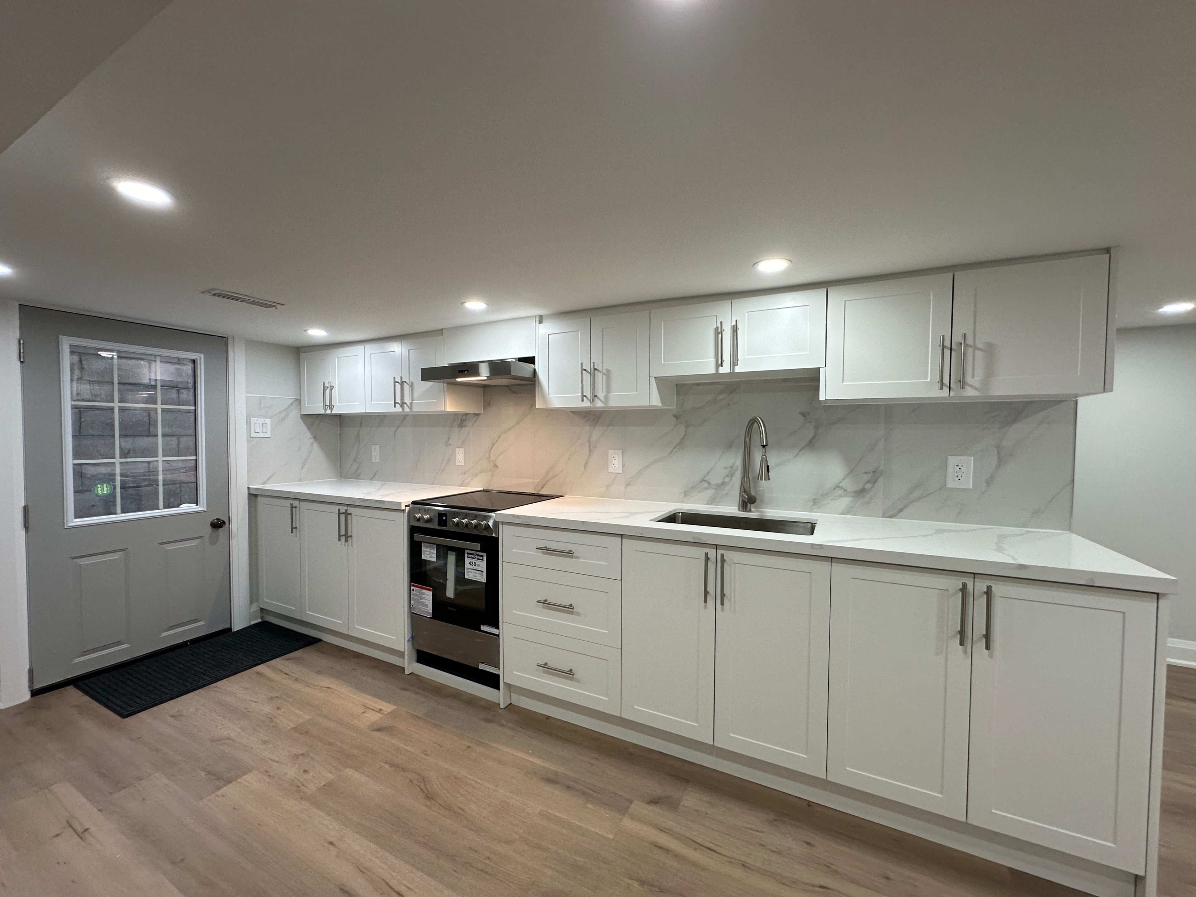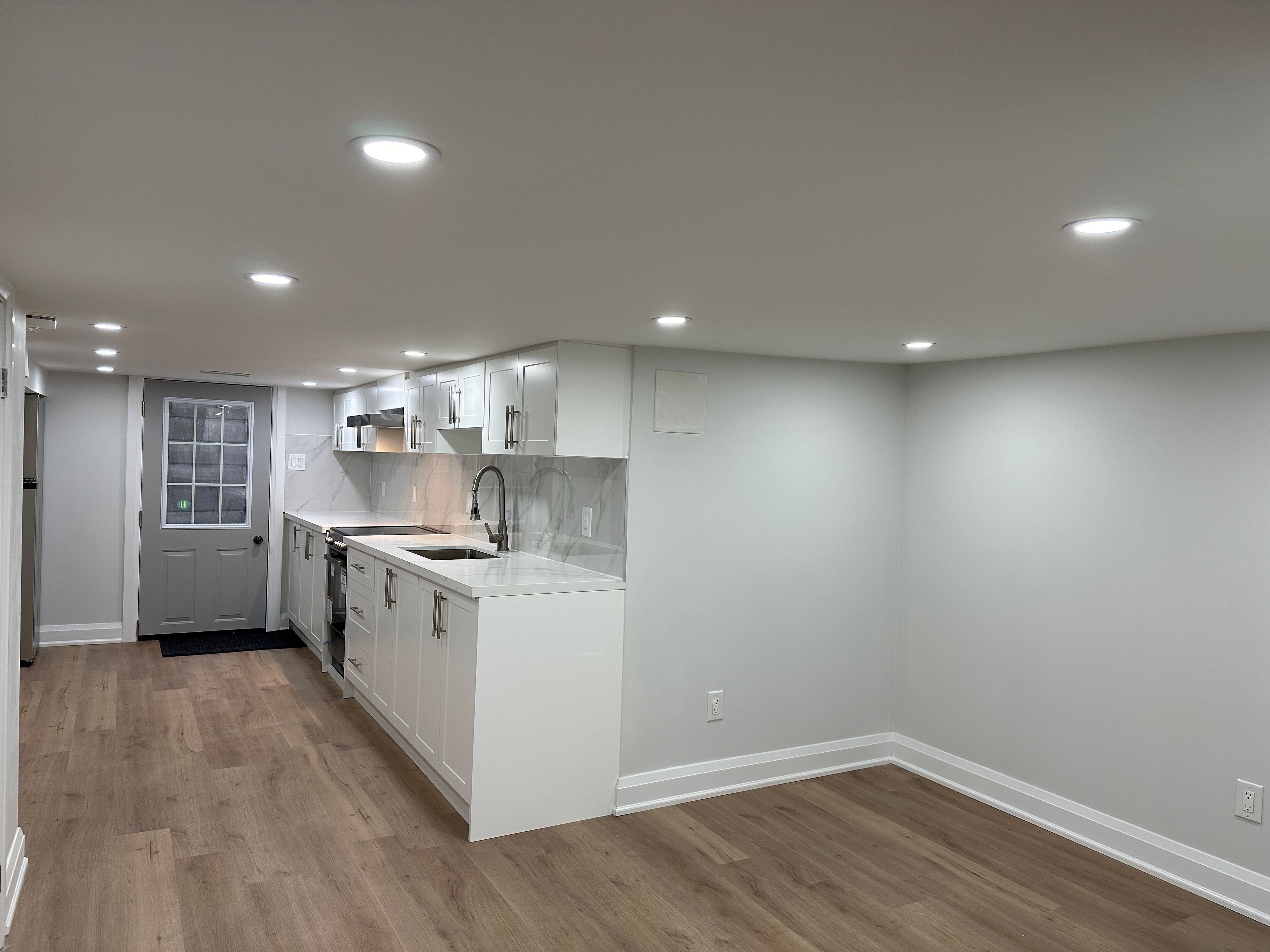 Beautiful and full renovation bright lower unit in charming carlton village. Brand new kitchen with stainless steel appliances and granite counter top. One bedroom, one bathrooms with large living room and laundry ensuite. Private separate entrance with large and professional interlocking back yard. Fenced end unit town home. Professional 3 in 1 alarm system will keep you safe. Triple window and professional insulation will keep your living environment comfortable. Must see.