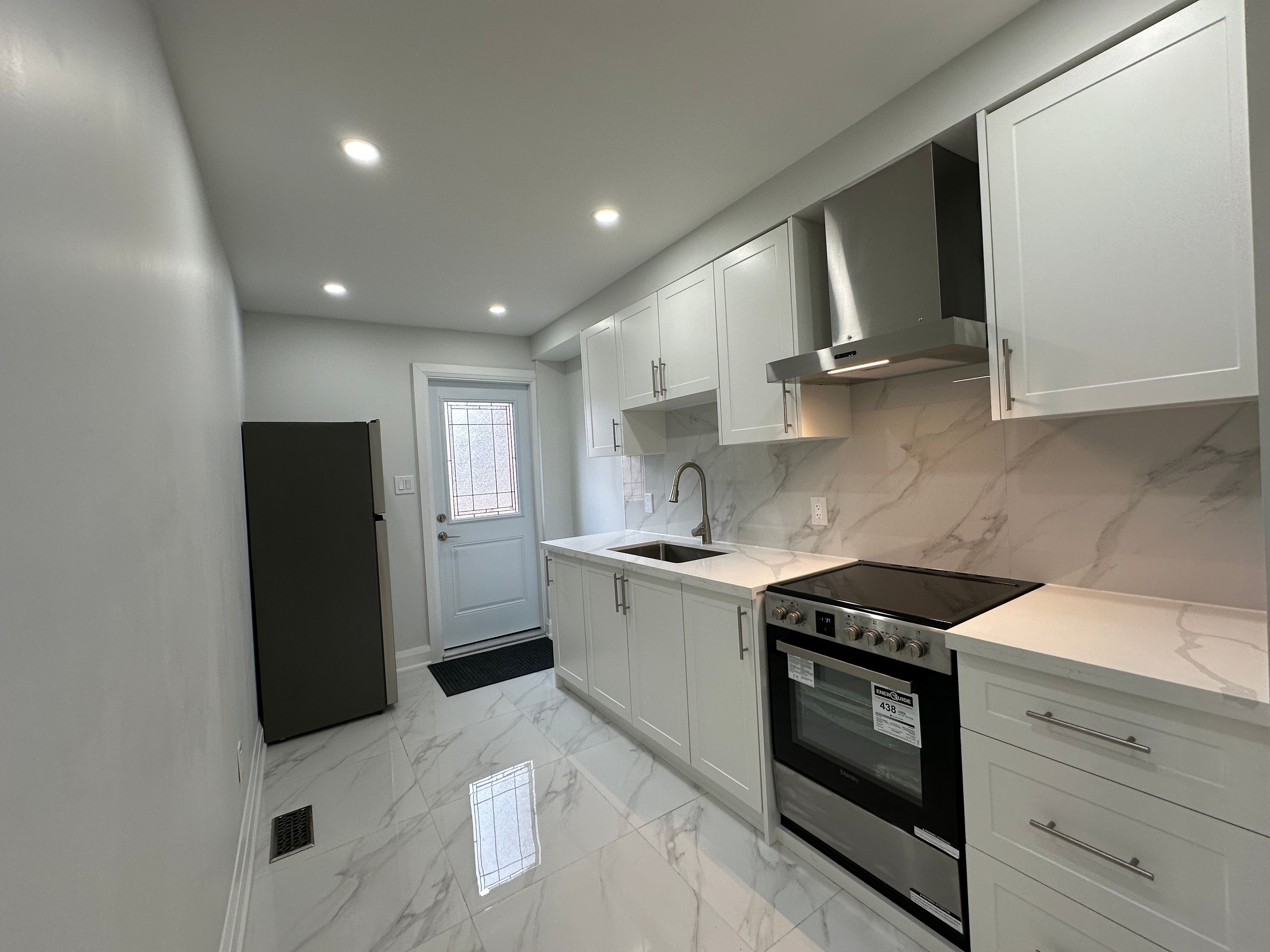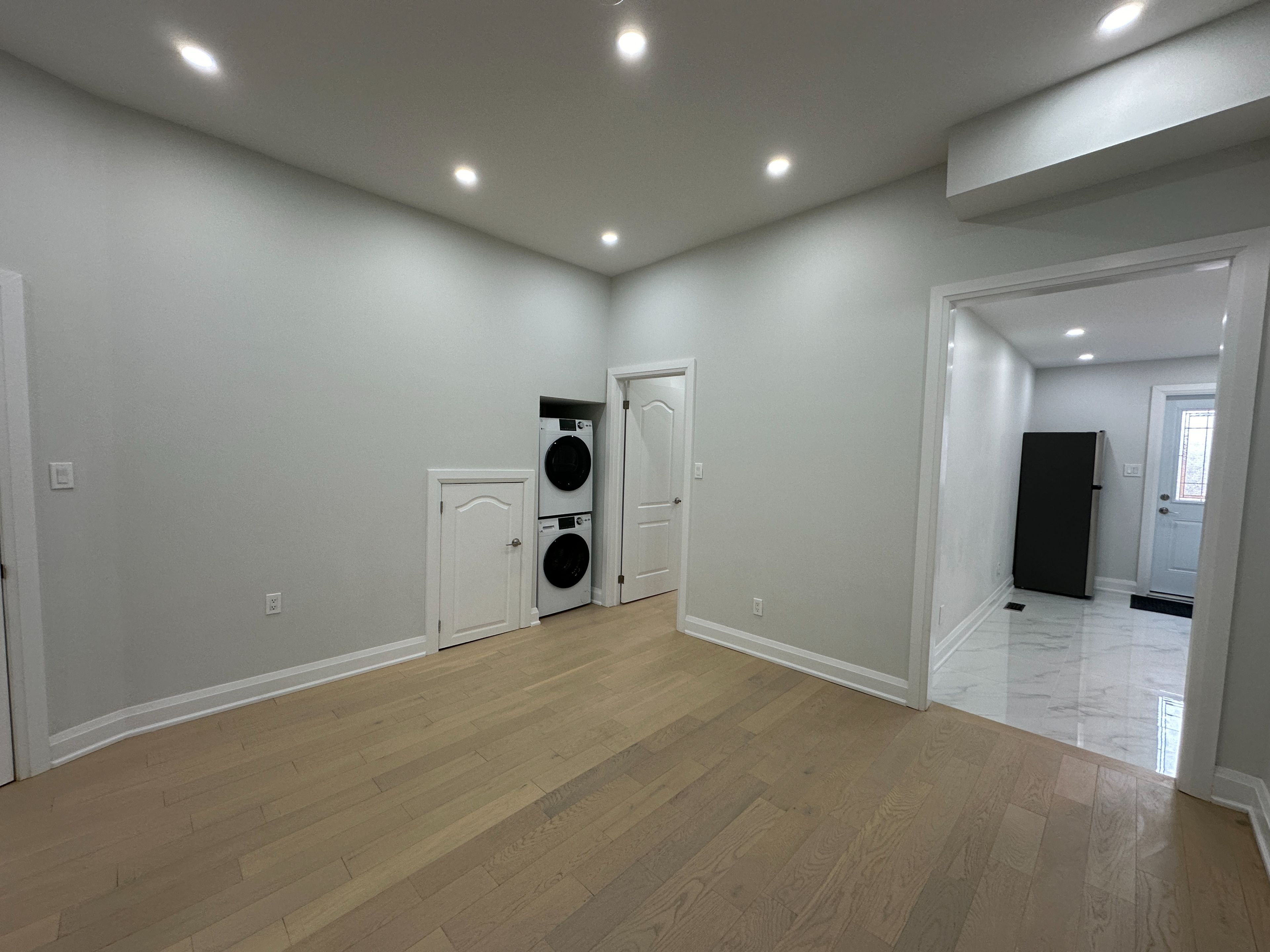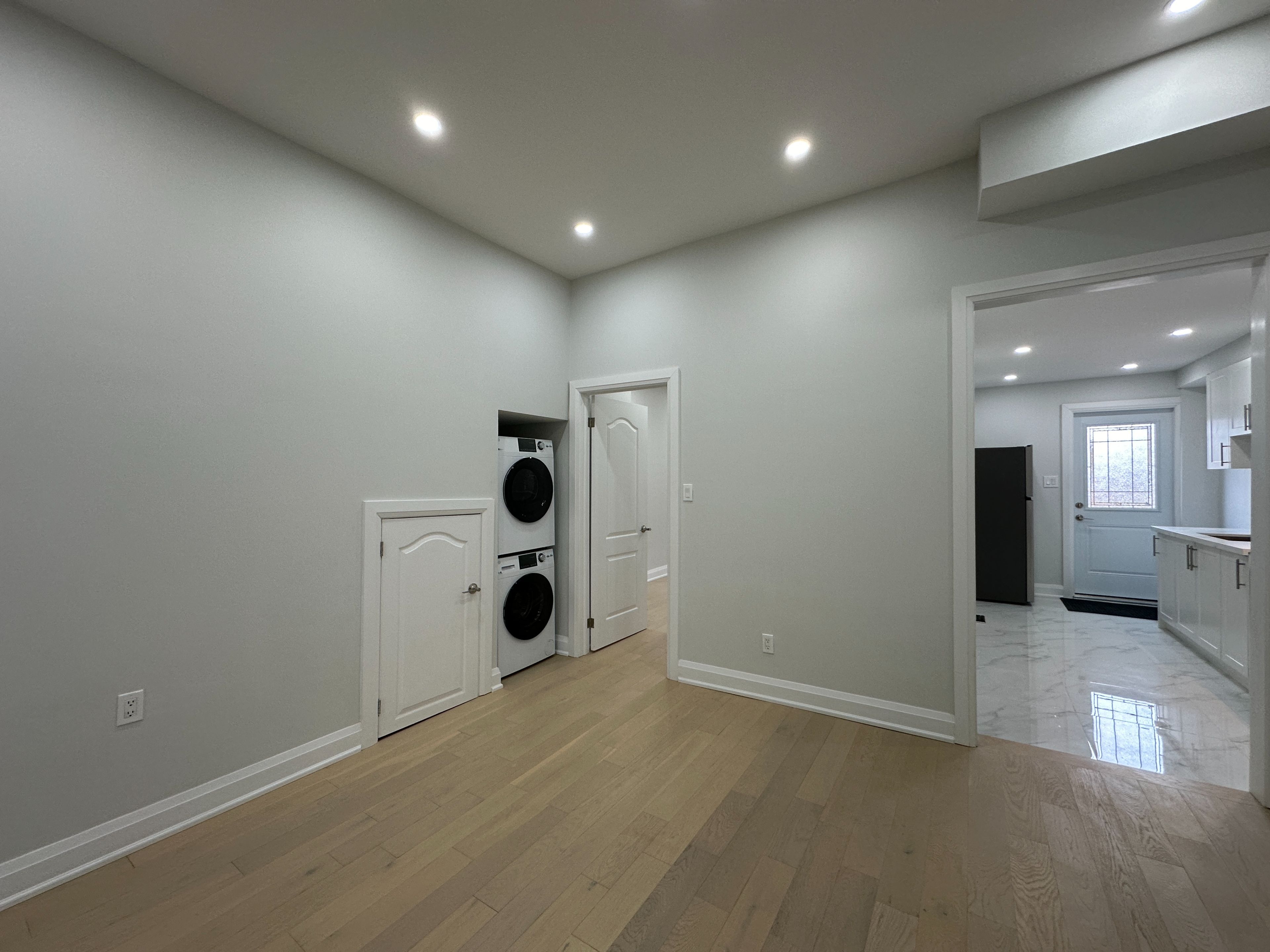 Rare find! Bright and modern end-unit townhome main floor at 211 osler st, featuring 11-ft ceilings, hardwood flooring throughout, and large windows that flood the space with natural light. Functional layout with 2 bedrooms & 2 full bathrooms, a separate kitchen with granite countertops, and ensuite laundry for ultimate convenience. Built with triple-pane windows and professional insulation for superior comfort and quiet living, plus a professional 3-in-1 alarm system for added security. Enjoy a huge fenced backyard with lock, offering excellent privacy-perfect for relaxing or entertaining. Bonus: 1 lane parking space that fits 2 cars for only $100/month-a rare find in the city! Prime location close to transit, shops, and everyday amenities. Ideal for professionals or small families. Move-in ready-don't miss it!