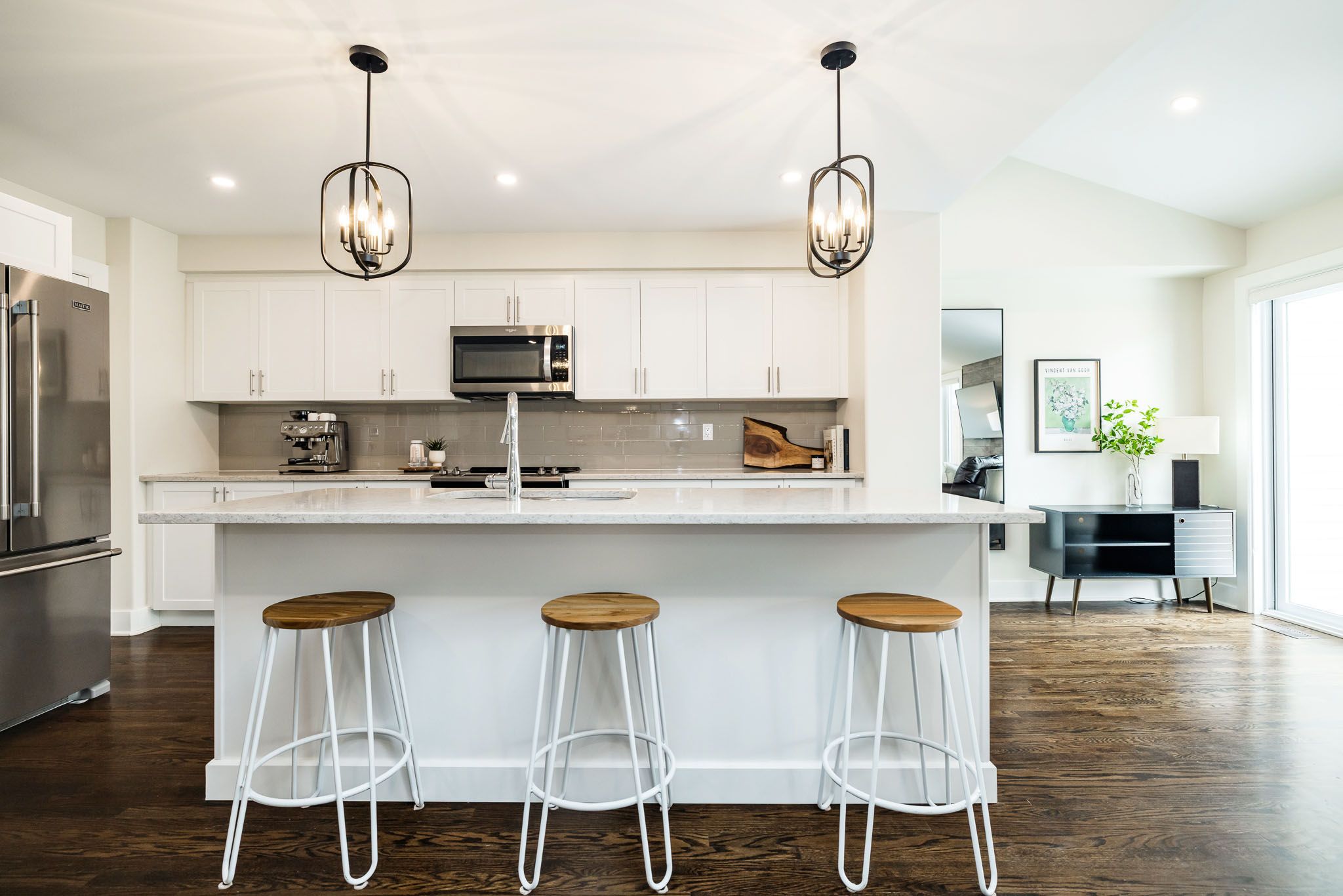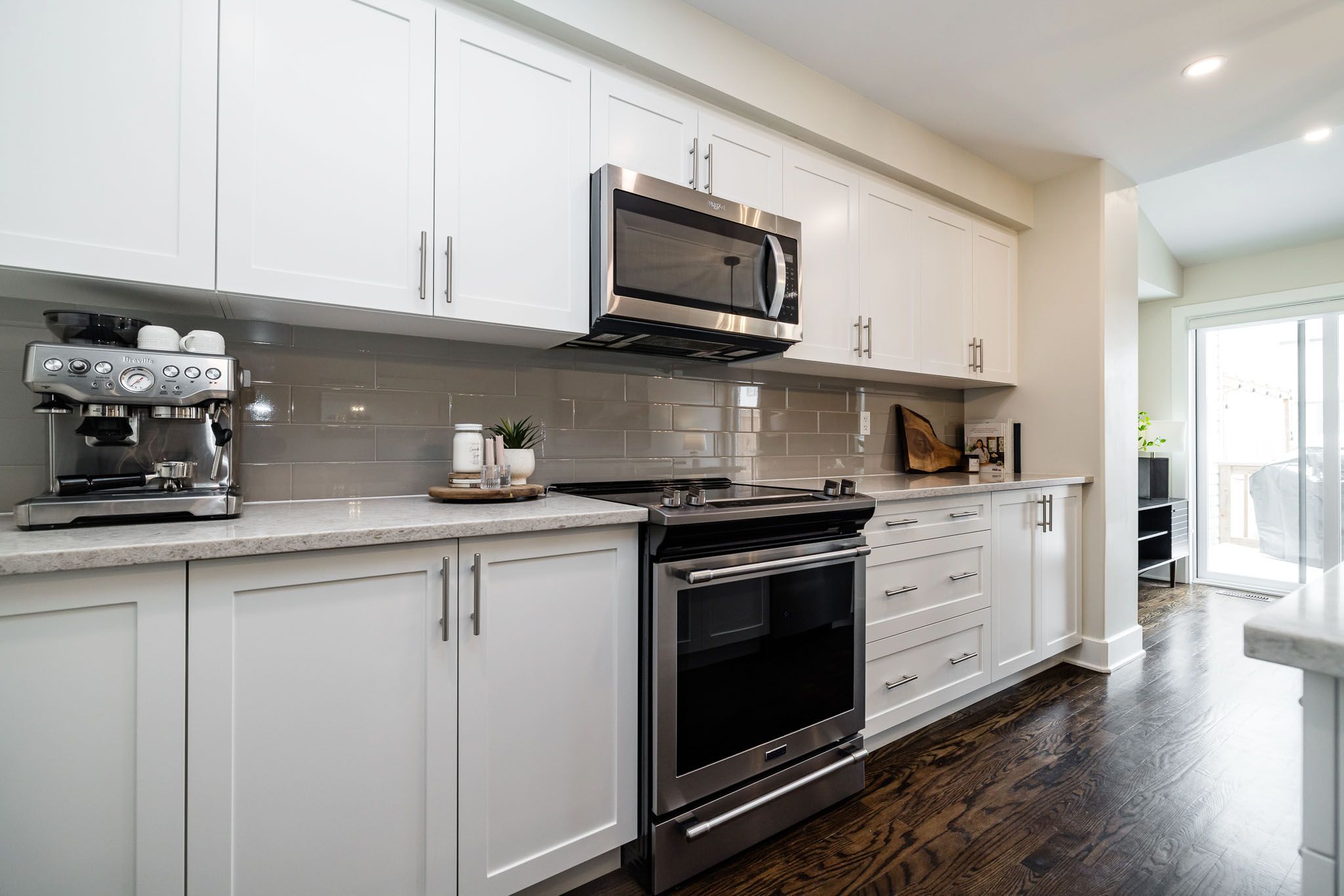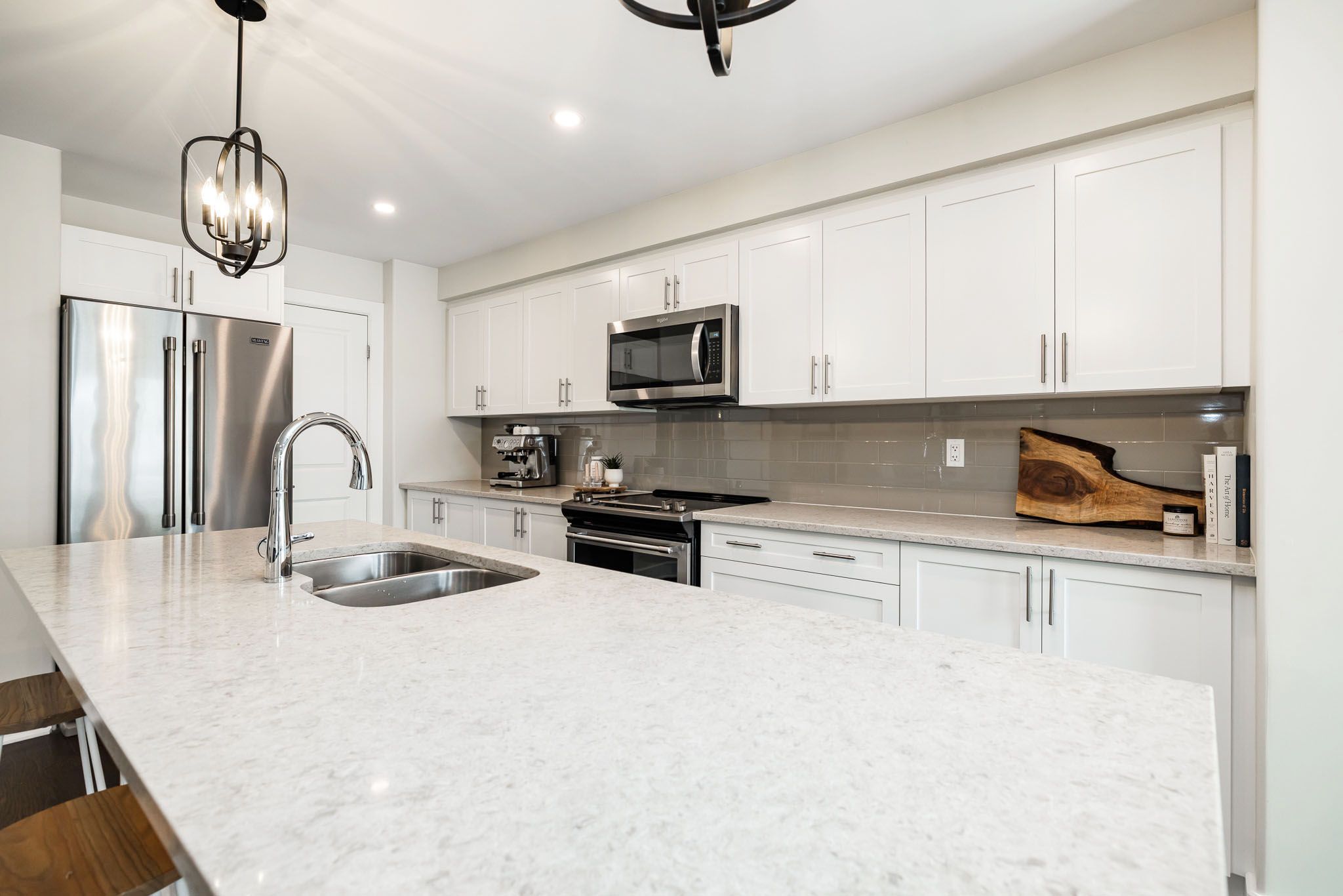 • Gourmet kitchen equipped with stainless steel appliances and quartz countertops.