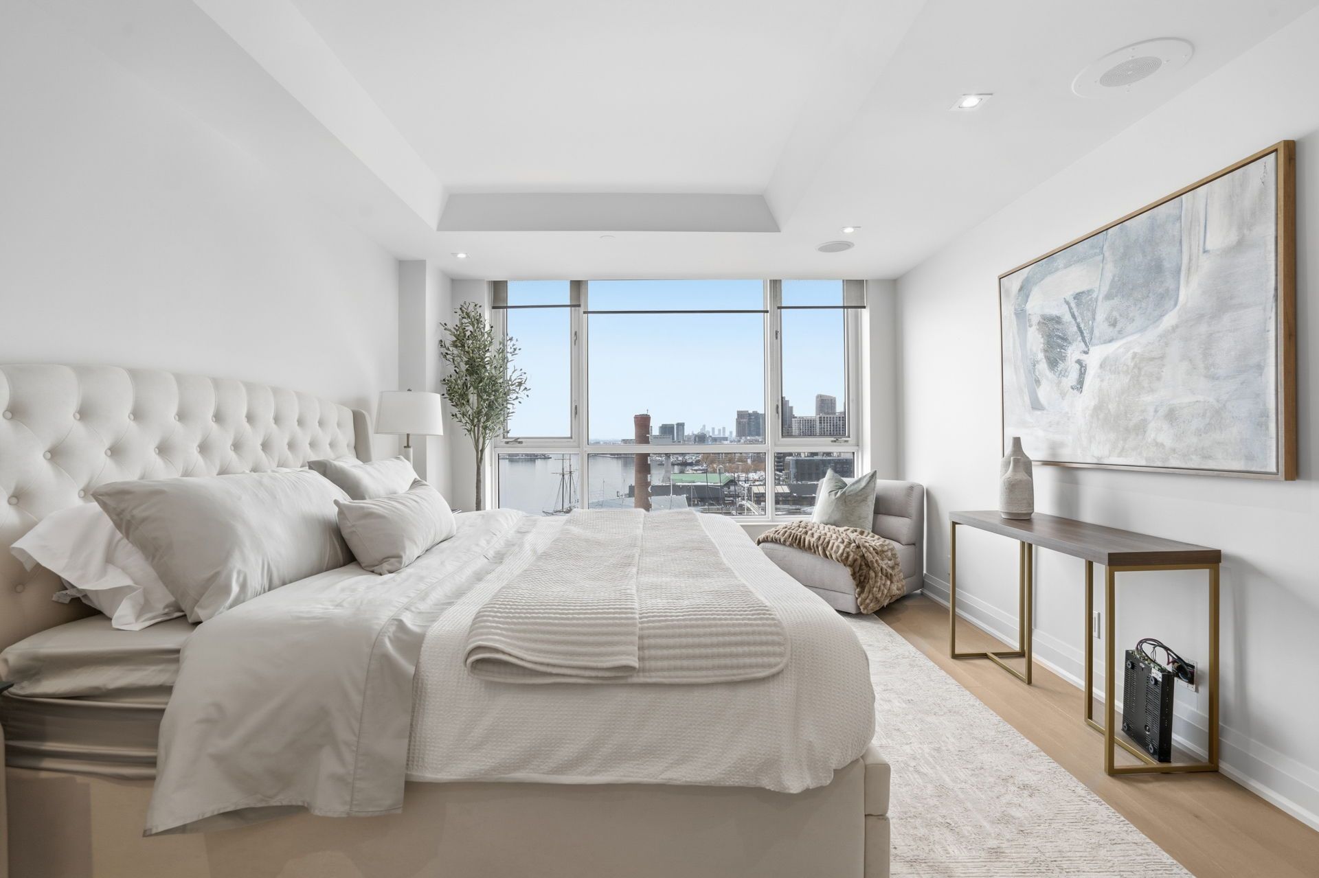 Welcome to the historic terminal building at 211 queens quay w unit 1005. With amazing south west views looking out onto lake ontario and billy bishop airport you can relax on your private terrace watching the sunset! This spacious 1500+ sq ft renovated 2 bed/2 bath luxury boutique condo has a beautiful updated chefs kitchen featuring premium appliances with marble tile flooring that extends through the kitchen and foyer with ample storage. Large primary bedroom with tray ceiling, walk in closet and a fully renovated spa inspired 5-piece ensuite bathroom. Engineered hardwood floors flow seamlessly throughout the main living areas, adding warmth and elegance to the brightly lite space. Set in the premier harbourfront location, steps to the lake, transit, dining, and the financial district with an unbeatable downtown lifestyle. Residents enjoy 24-hour concierge, indoor pool and gardens.