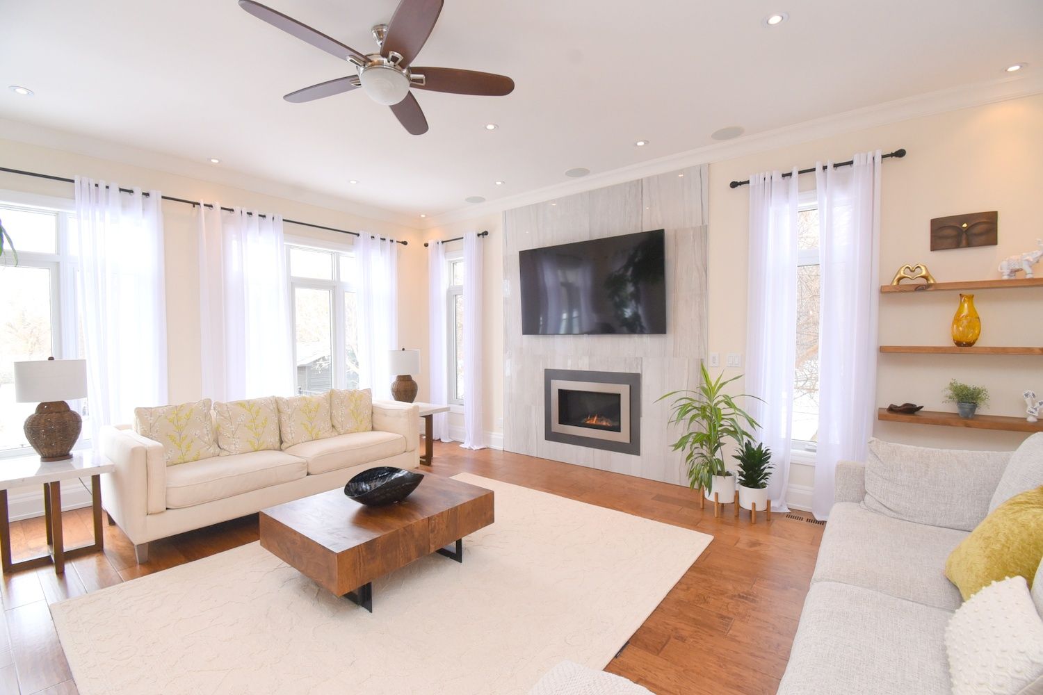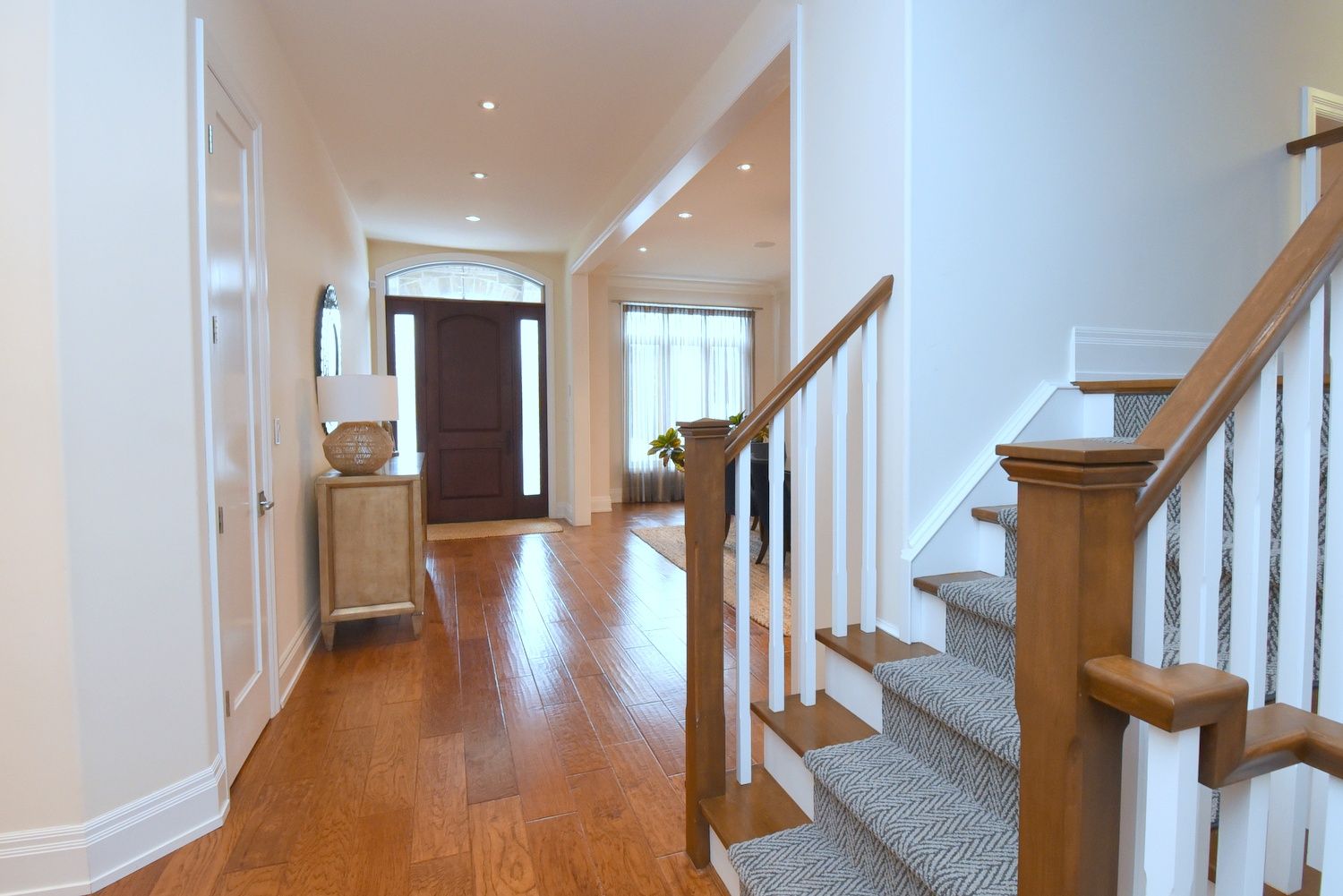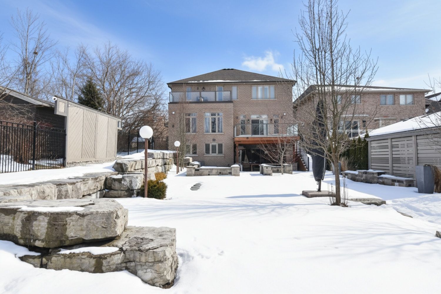 Welcome to this exceptional luxury residence nestled on a quiet, prestigious cul-de-sac in ancaster. Situated on a rare 50' x 200' treed ravine lot, this home offers approximately 6,000 sq. Ft. Of total living space and a private, resort-style backyard backing onto forested greenspace. Featuring 4+1 bedrooms and 4+1 bathrooms, the home boasts 10' ceilings on the main level, engineered hardwood throughout, an open oak staircase, and an abundance of natural light. Smart-home equipped with whole-home sono's audio, cat5e wiring, wi-fi extenders, security cameras, alarm system, and video doorbell. The chef's kitchen offers a 4x8 quartz island, gas stove with pot filler, built-in appliances, walk-in pantry, butler's pantry, and wet bar. Spacious family room with gas fireplace and built-in surround sound. Main floor office/den ideal for work-from-home or in-law/nanny suite. The primary retreat features a private balcony, two walk-in closets, and a luxurious 5-piece ensuite with soaker tub, oversized shower, heat lamps, and bidet toilet. Convenient second-floor laundry and generously sized secondary bedrooms with walk-in closets. Fully finished walk-out basement with 9' ceilings include a bedroom, gym, second laundry, bar with quartz waterfall island, rec room with fireplace, and separate garage entrance-ideal for extended family or entertaining. A rare offering combining luxury, technology, and natural surroundings. Resort-style backyard highlights a 16x28 inground pool with waterfall, stone patios, outdoor gas fireplace and tv area, speakers, sprinkler system, smart lighting, and mature trees for ultimate privacy. Natural gas backup generator, ev rough-in, epoxy garage floors, and extensive landscaping complete this remarkable property. A rare offering combining luxury, and natural surroundings.