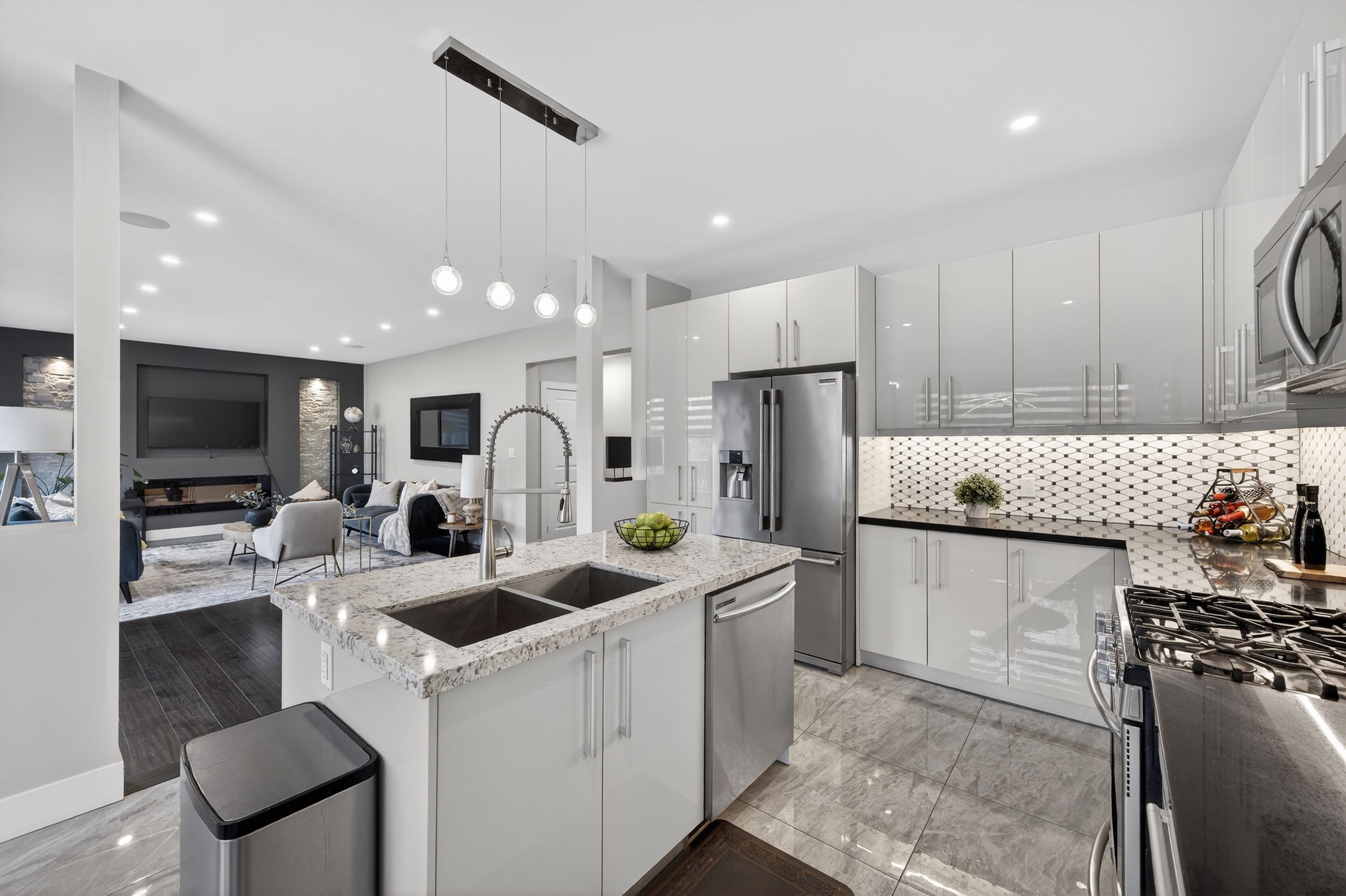 • Spacious main floor with office, living area, and chef's kitchen.