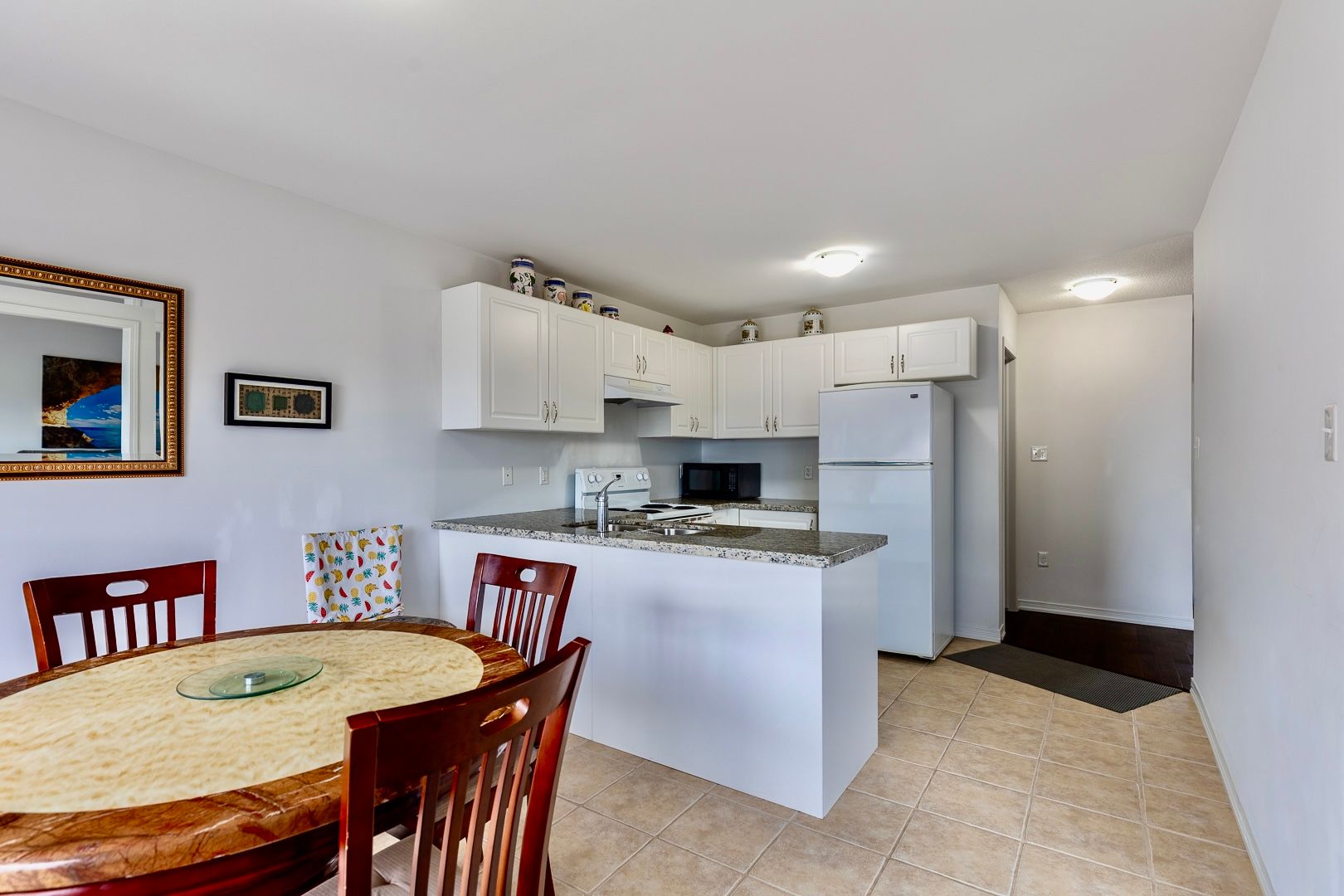 • Bright carpet-free interior with open-concept layout and cathedral ceilings.