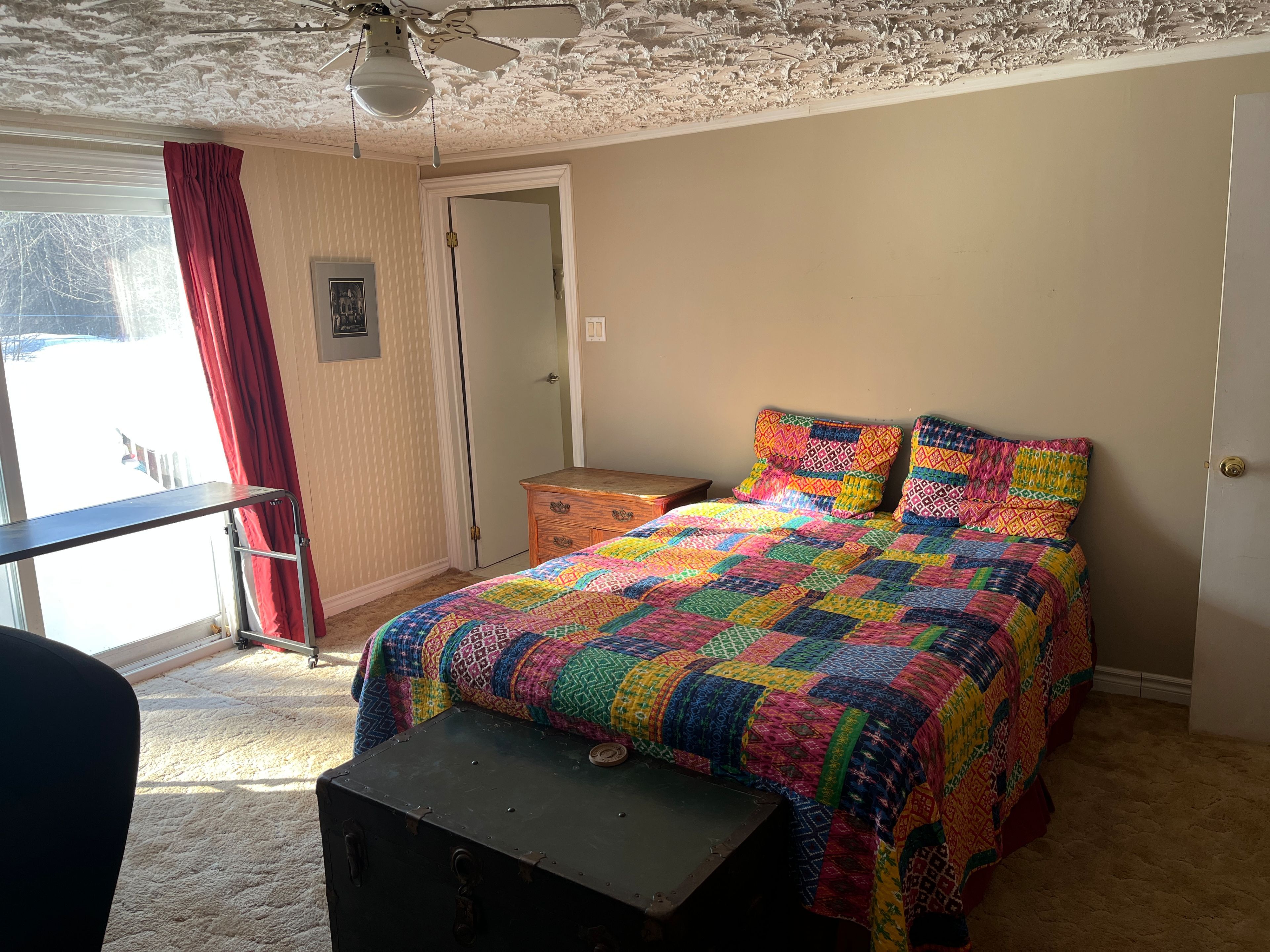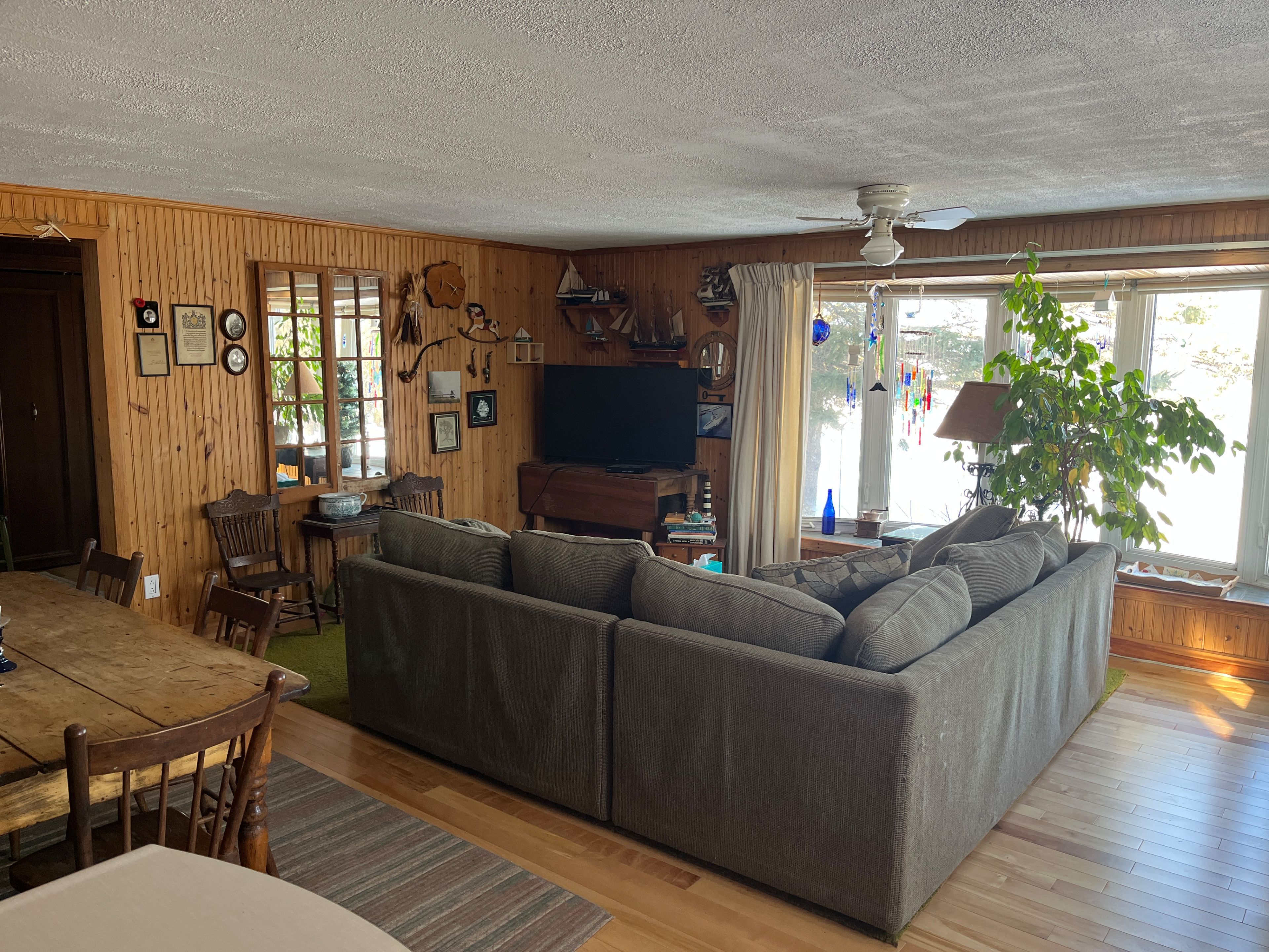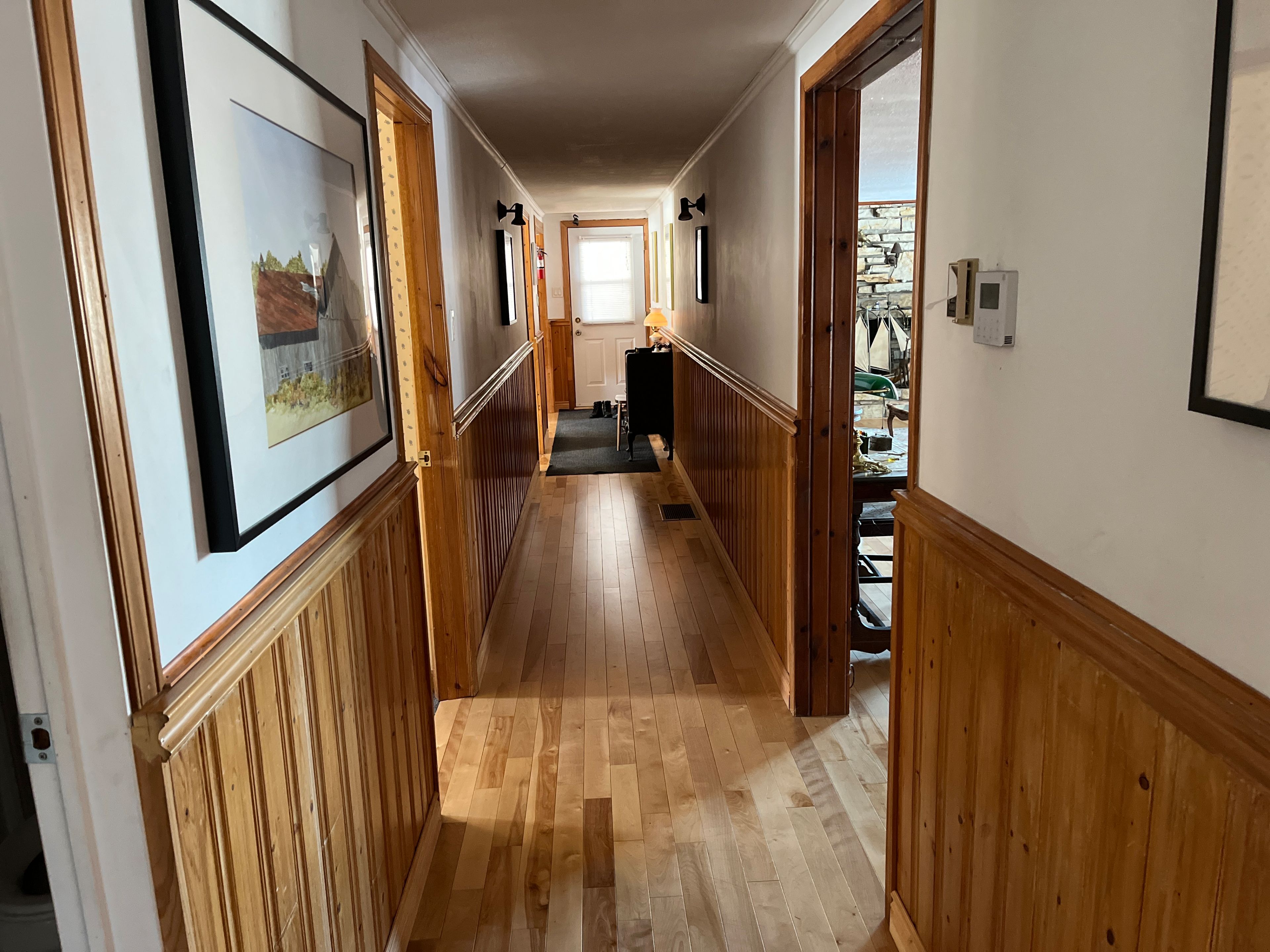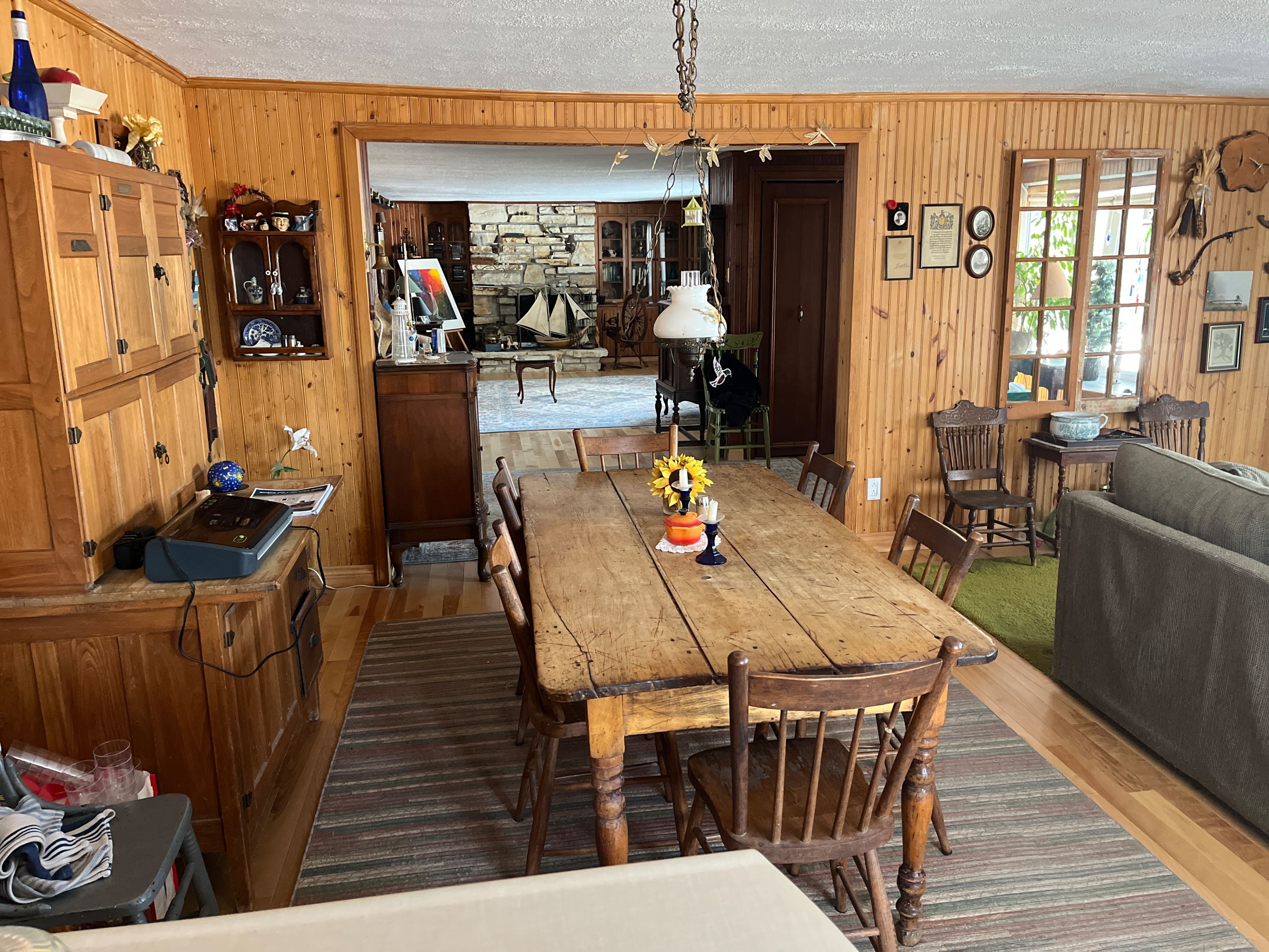 Charming 3-bedroom stone bungalow with 2 covered carport spaces nestled on a spacious lot of 200' x 400' in a peaceful country setting with mature trees and no rear neighbors. As you walk through the front door you will find a lovely foyer with closet space. Off to the left is an oversize open kitchen which is combine with the dining area that displays plenty of cabinets with some appliances which are included and a beautiful bow window projecting sunshine within the room. The cozy living room also has a very large window and a wood burning fireplace. The primary bedroom has its own 5 pcs ensuite and patio door leading to a very spacious concrete deck. A 3 pcs bathroom is practically located in the hallway. Laundry area is also conveniently located on the main level and has plenty of cupboard space, double laundry tubs and includes the washer & dryer. Hardwood and ceramic flooring throughout main level except for the 3 bedrooms (carpet). The lower level offers a full unfinished basement with so much potential, opportunities and endless possibilities to add more living space to your home. Force air heat pump with electric backup (2023). There is also a forced air wood furnace as a backup. Electric 40-gallon hot water heater owned (2023). Electrical panel 200 amps replaced in 2024. Roof shingles replace in 2023. Private gravel driveway, plenty of parking, even a perfect fit for your rv. 24 hours irrevocable on all offers. Enjoy the tranquility of country living with easy access to nearby amenities and major highways! Don't just drive by, call for a visit!!